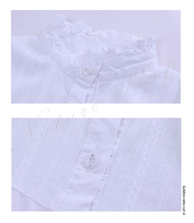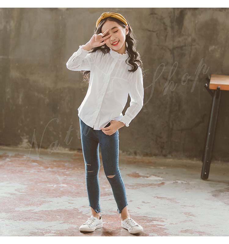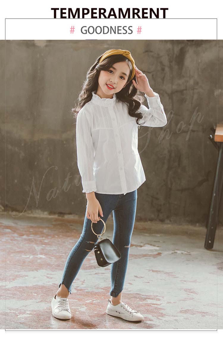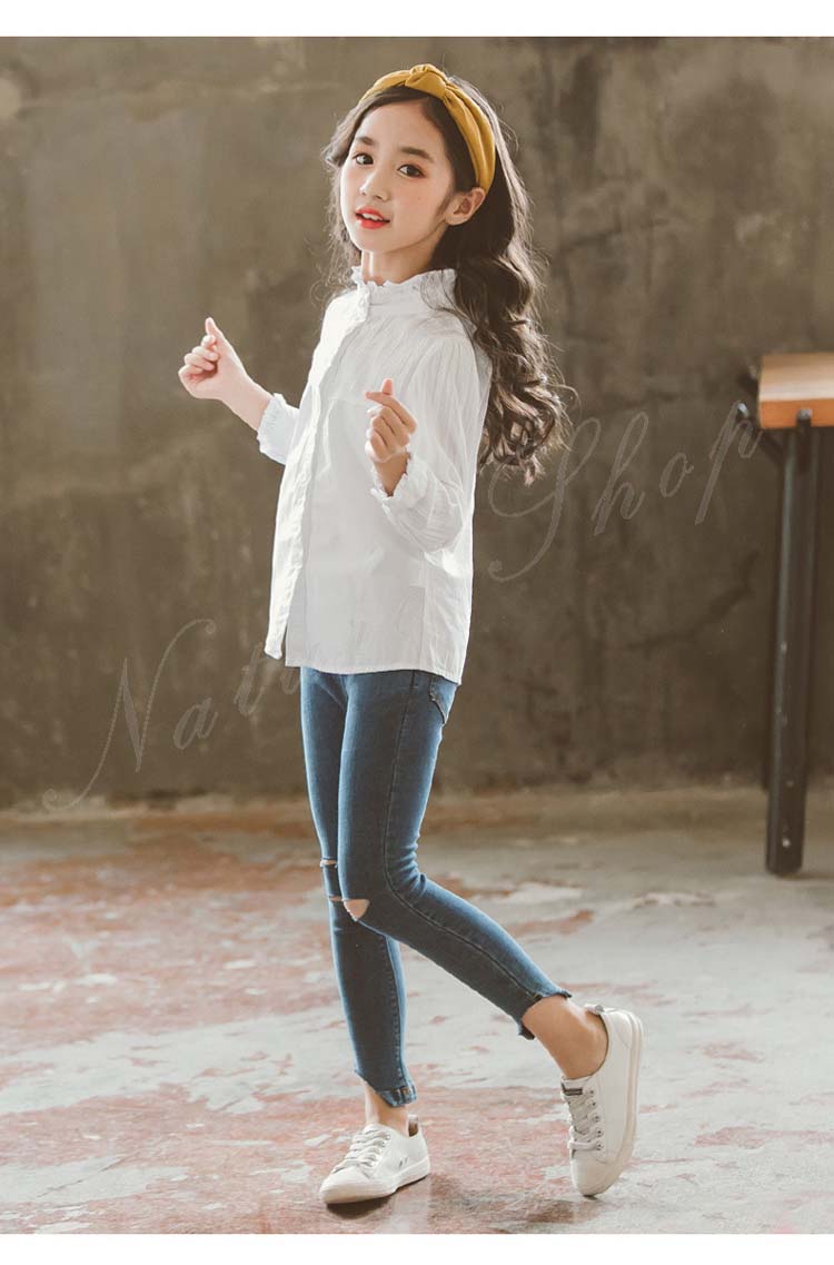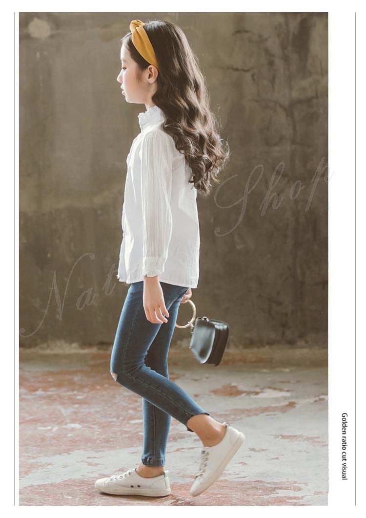フリル 襟 ブラウス 子供服 長袖シャッツ スタンドカラー 綿 柔らかい フリルデザイン Tシャツ 前ボタン 無地 前開 春秋 女の子 カジュアル 韓国風