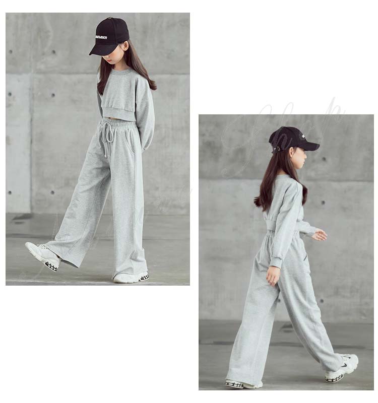 韓国子供服 女の子 ジャージセット キッズ セットアップ 長袖 2点セット ダンス衣装 ヒップホップ セットアップ パンツ トップス ロングパンツ ワイドパンツ
