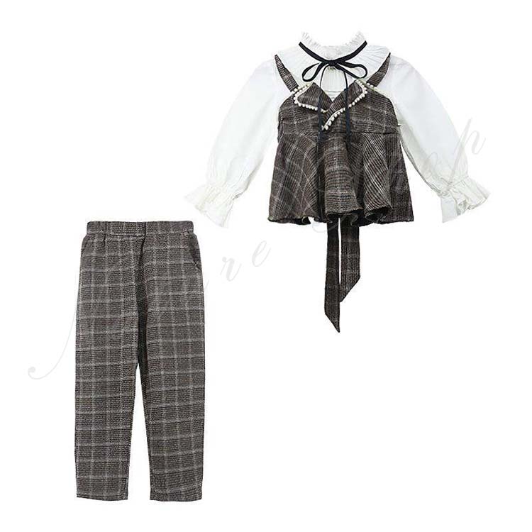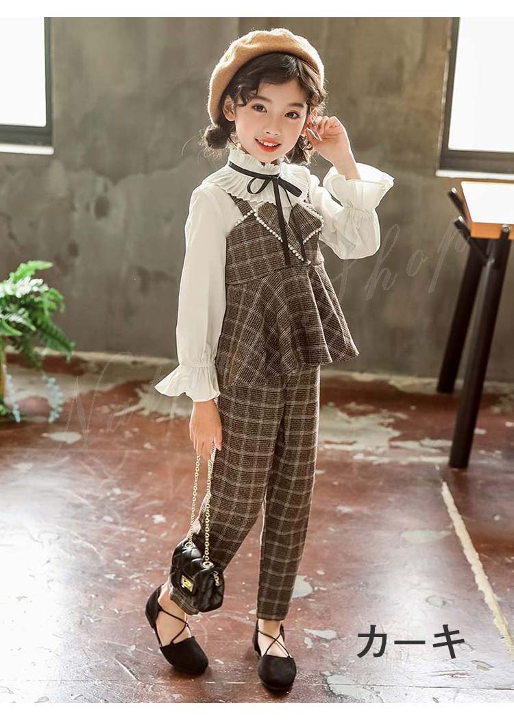 子供服 フォーマルスーツ パンツセット セットアップ スーツ 入学式 女の子 トップス+パンツ 2点セット チェック柄 ジュニア キッズ ジャケット カジュアル