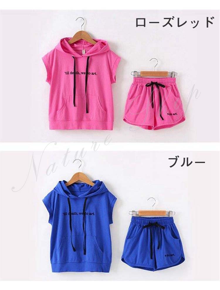 子供服 セットアップ ジャージ キッズ 女子 パーカー 可愛い ショートパンツ 上下セット 半袖 春夏 親子ペア 2点セット 新品 Tシャツ スポーツウェア 運動着 おしゃれ
