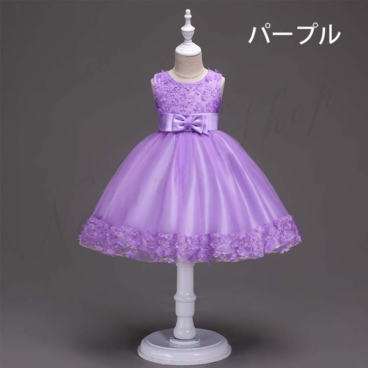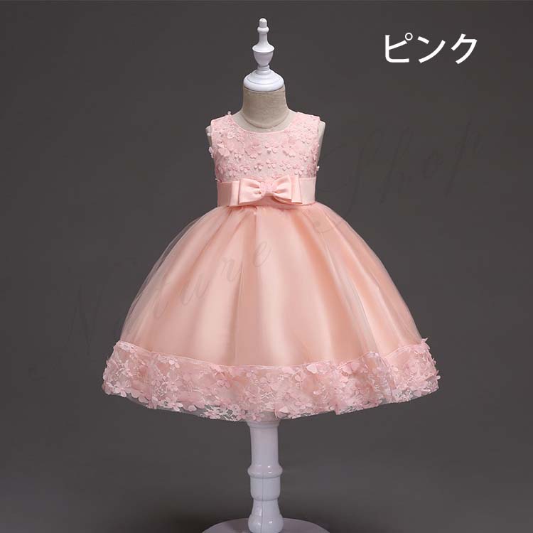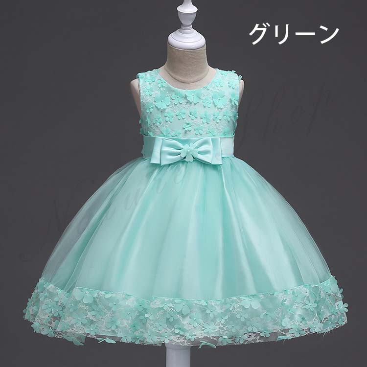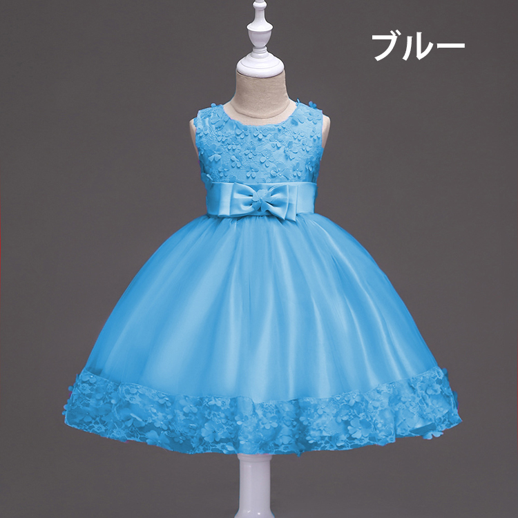 チュールスカート キッズ チュール ワンピース 花飾り リボン ジュニアドレス 150 160 無地 子供 ドレス 発表会 ロング 5色選べる レース ドレス 子供 ピアノ 発表会