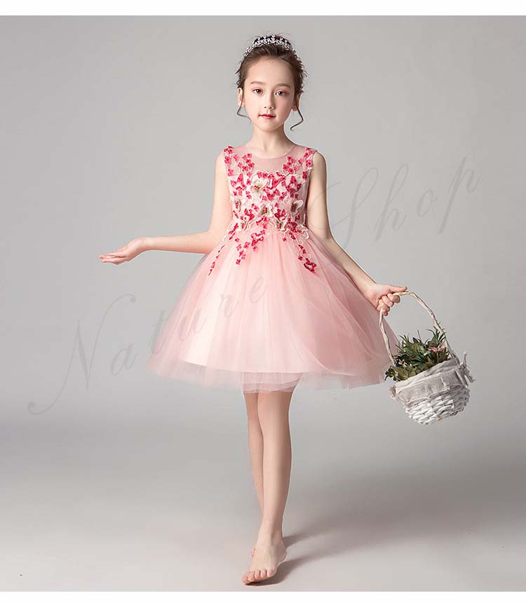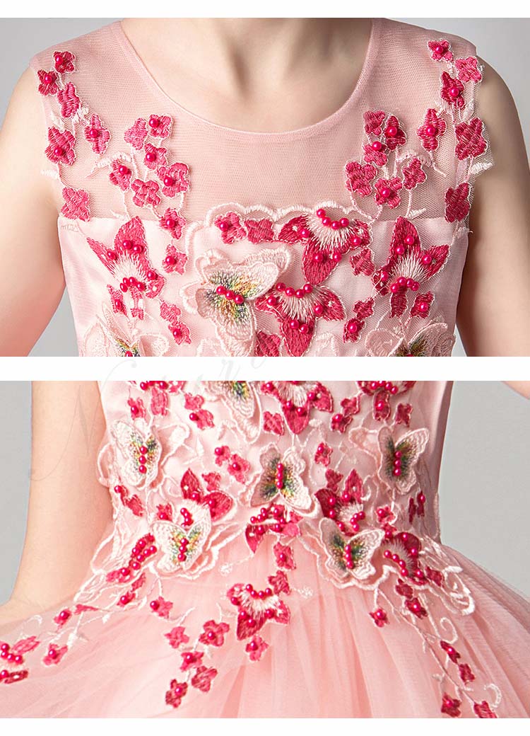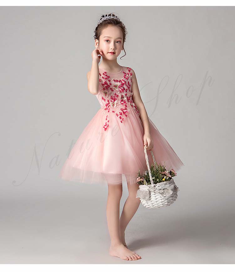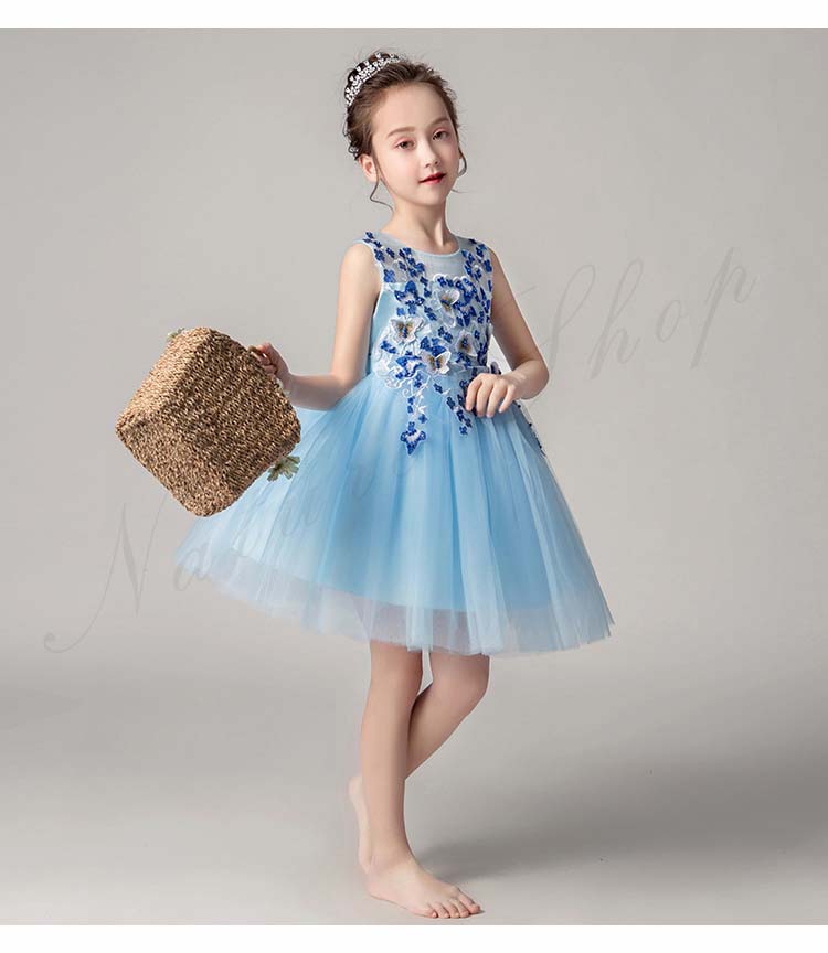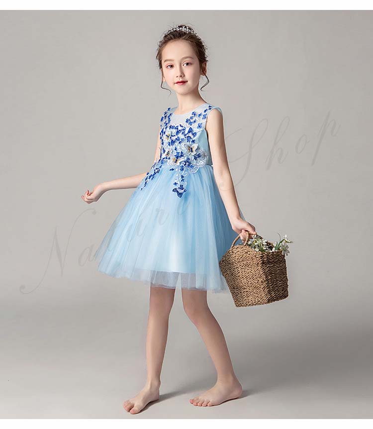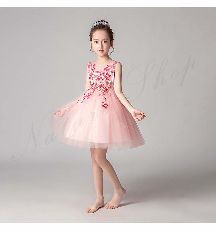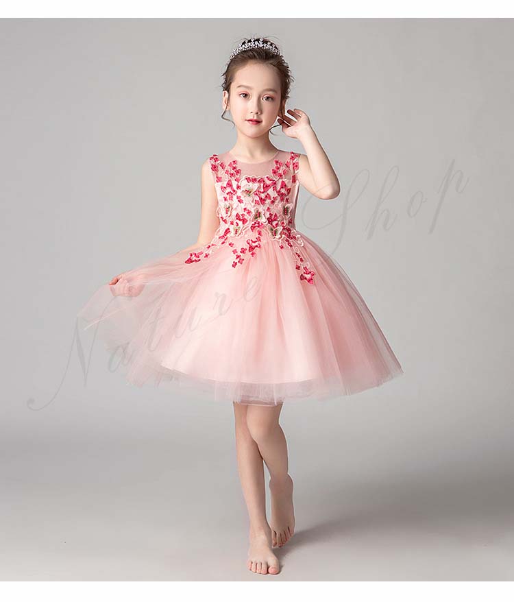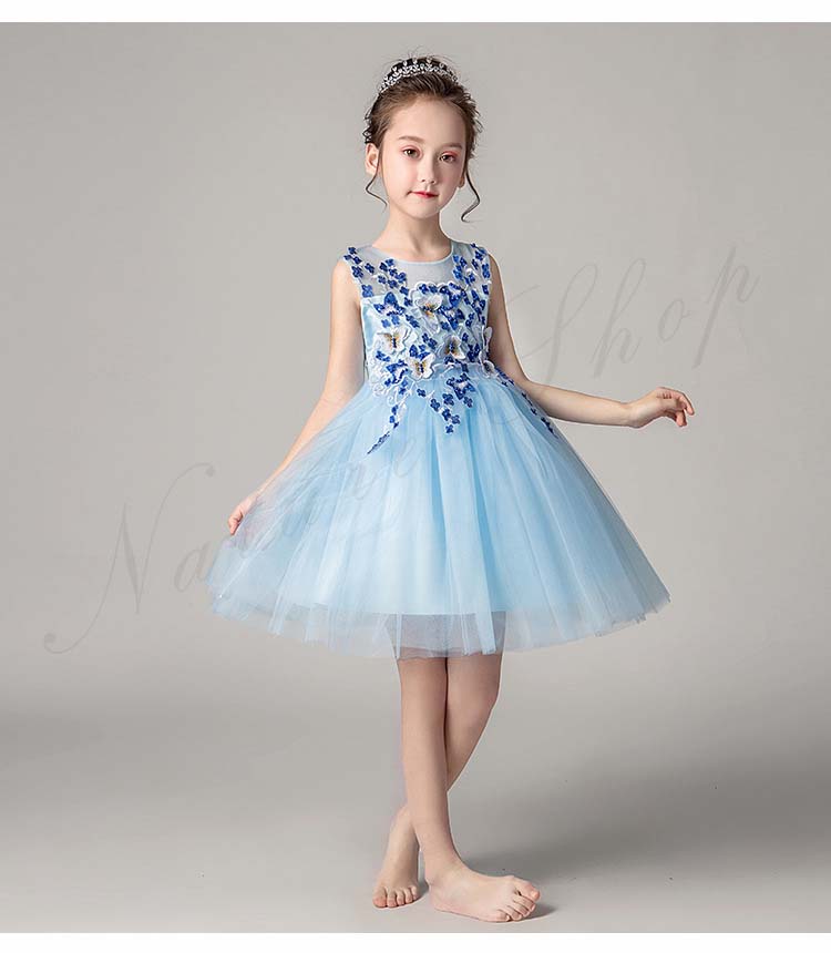 チュールスカート キッズ チュール ワンピース 夏 レディース 背出し スパンコール 花 蝶 飾り 刺繍 後ろボタン 袖なし ノースリーブ 子供 ドレス 発表会 ロング 膝丈