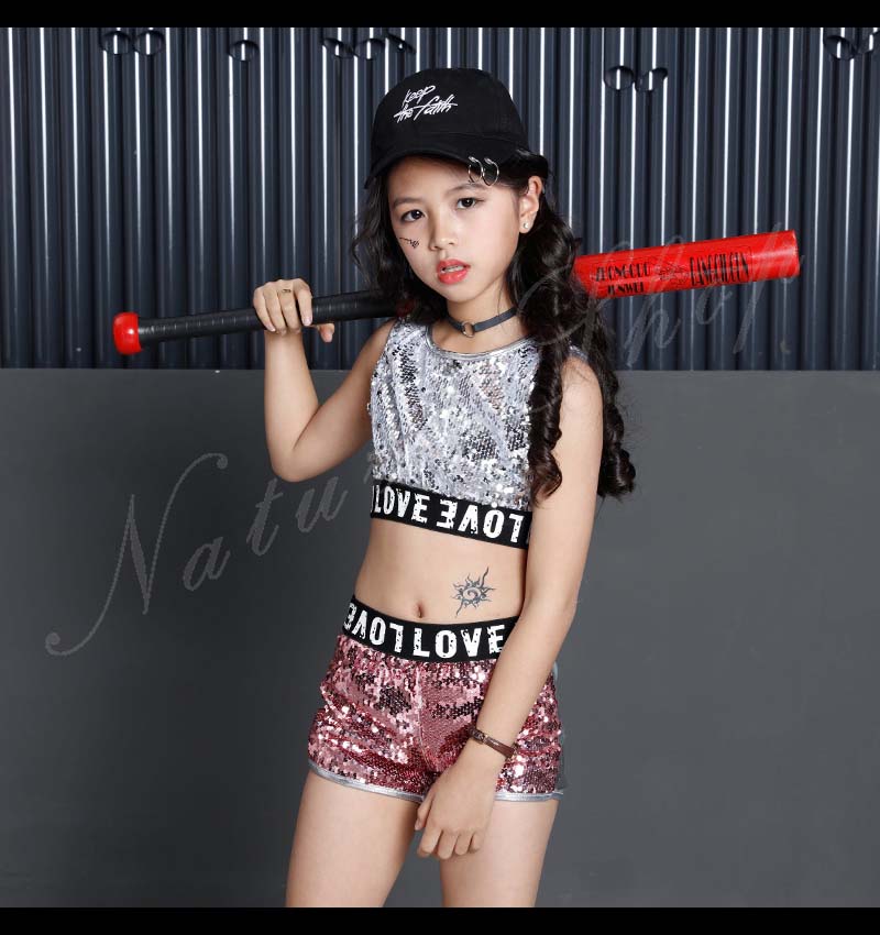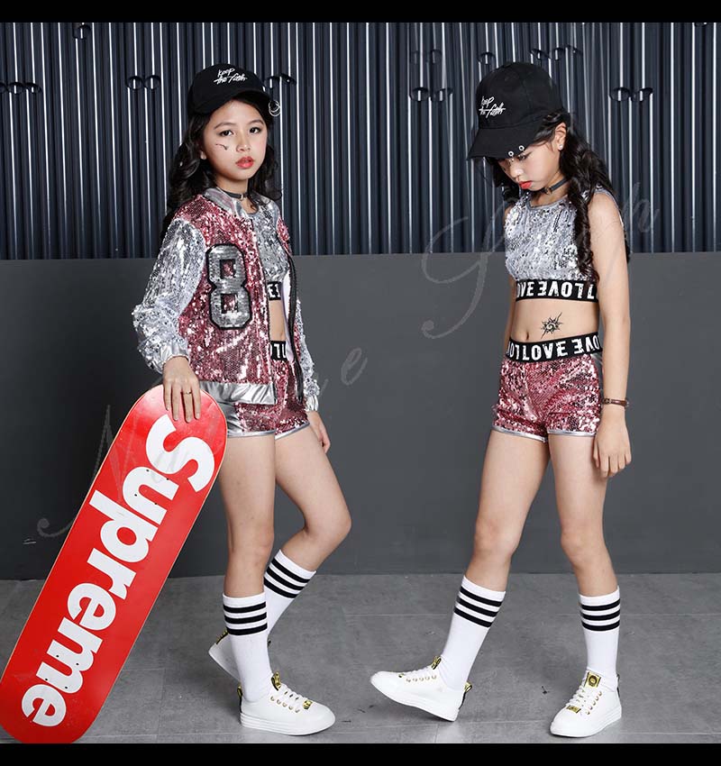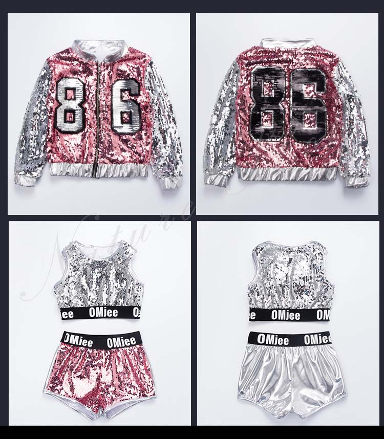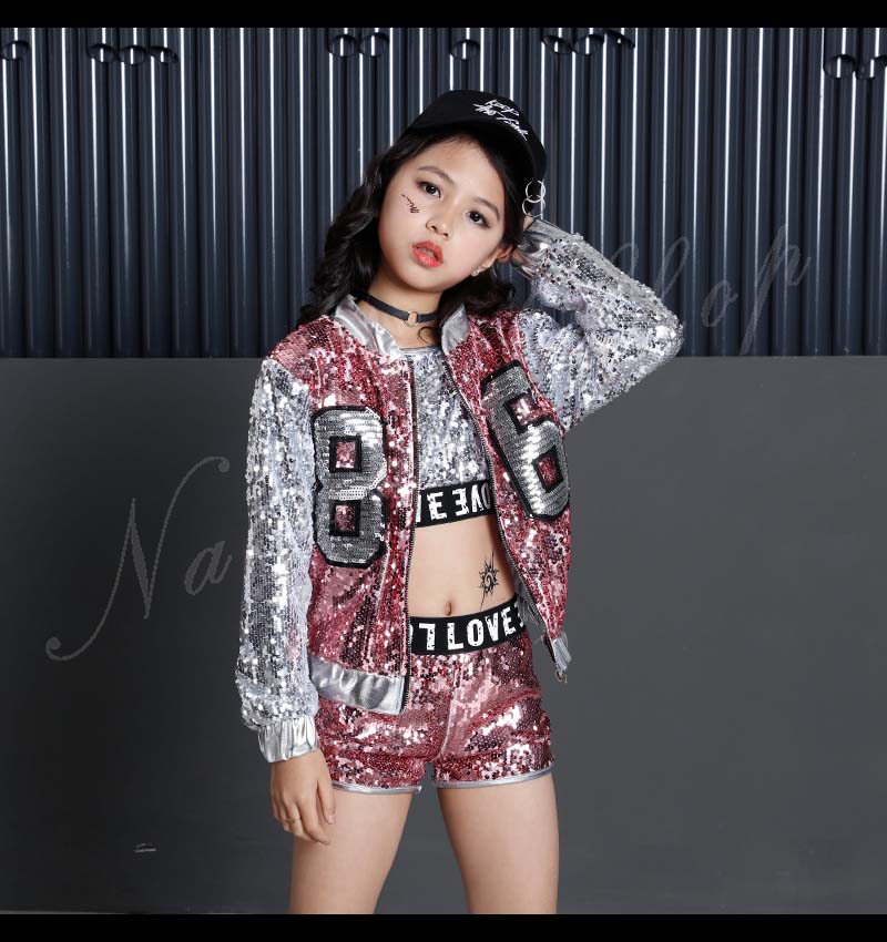キッズダンス衣装 ダンス衣装 キッズ セットアップ 長袖 ジャケット ベスト 短パン スパンコールセット チア衣装 ダンスウェア レディース おしゃれ ジュニア キッズ 舞台 演出