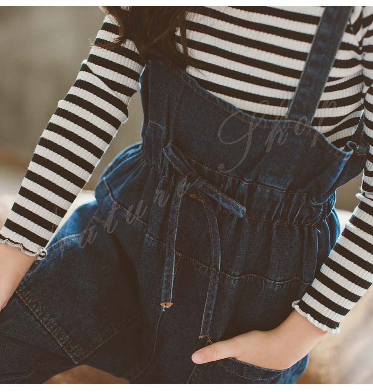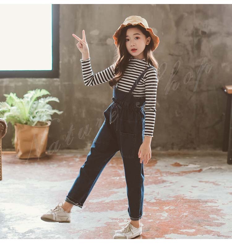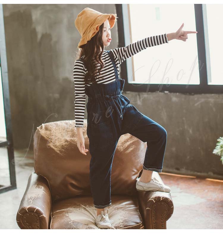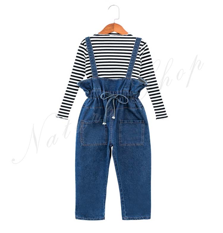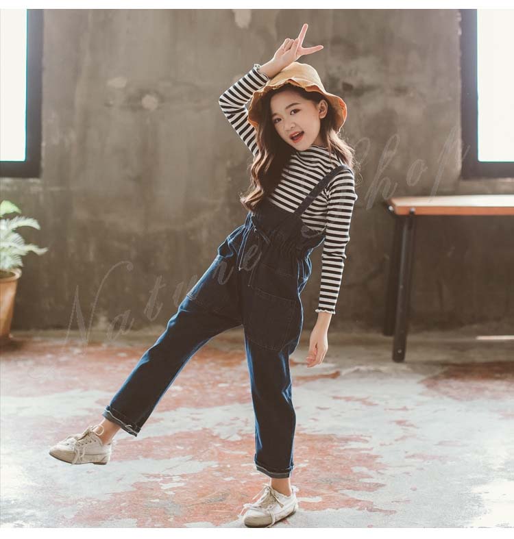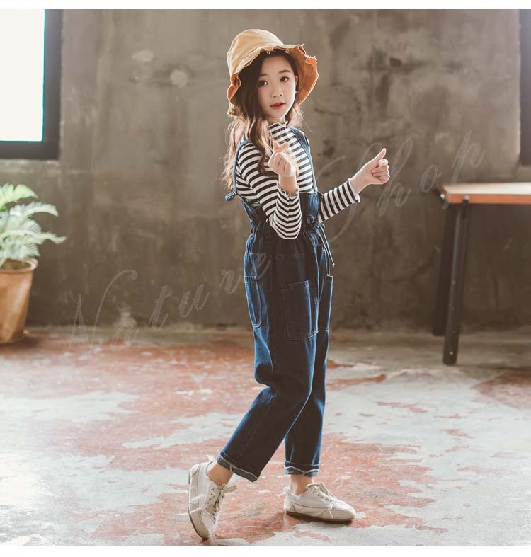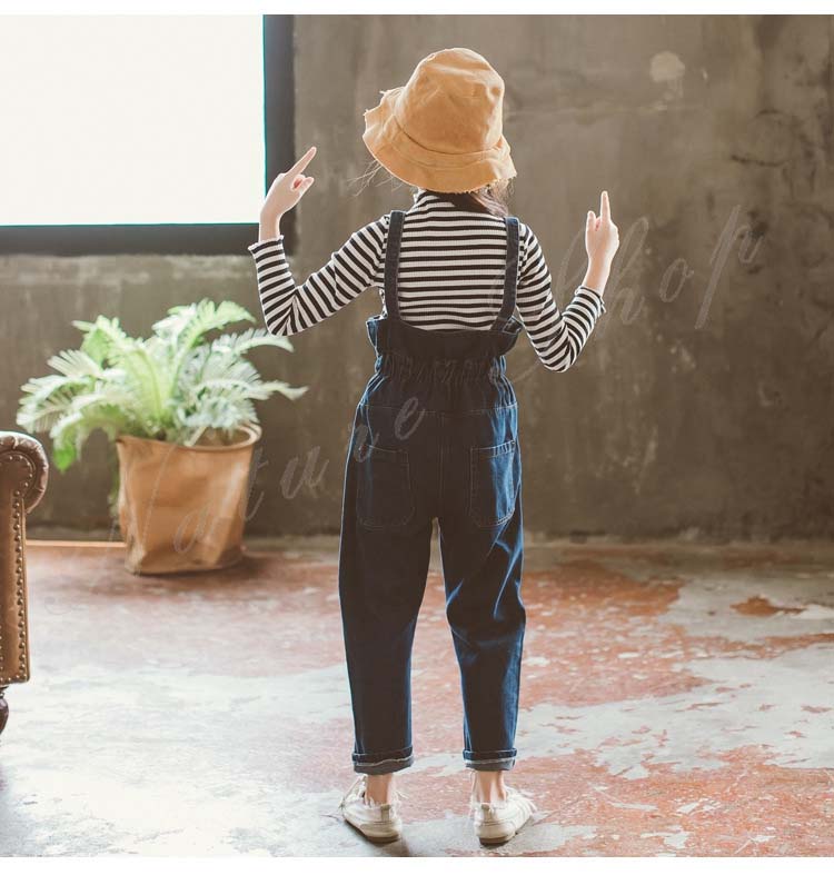 子ども服 子供服 女の子 カジュアル ナチュラル 長袖 Tシャツ ストライプ柄 オーバーオール ロング丈 デニム ズボン 可愛い セットアップ レディース キッズ おしゃれ 日常