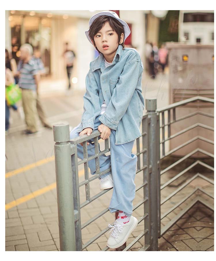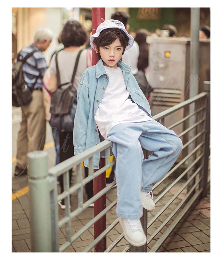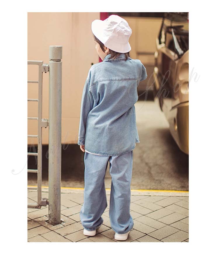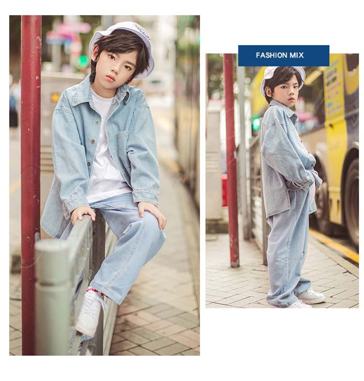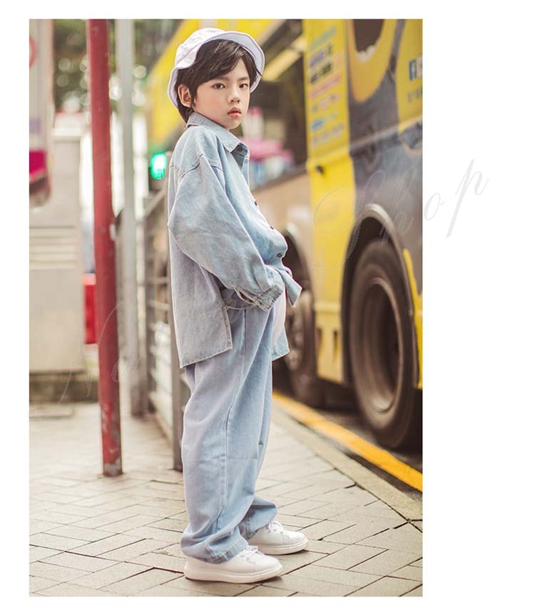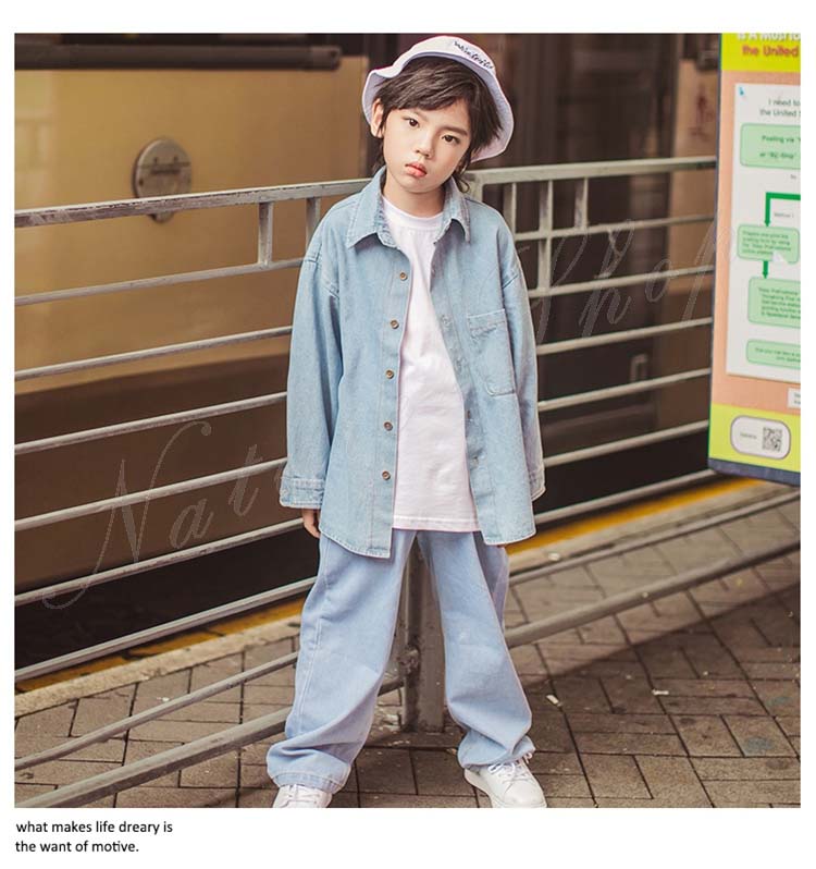 デニム キッズ 男の子 女の子 大きいサイズ 韓国 トップス パンツ 長袖 シャツ ロング丈 ジーンズ キッズダンス衣装 かっこいい ヒップホップ 衣装 ファッション ストリート