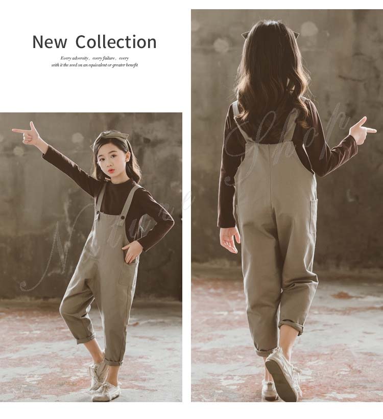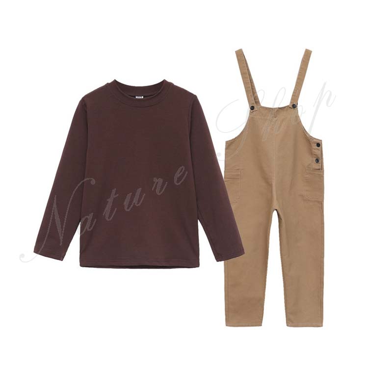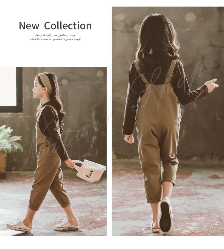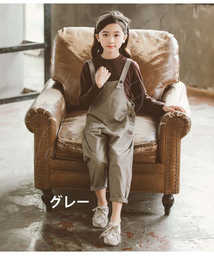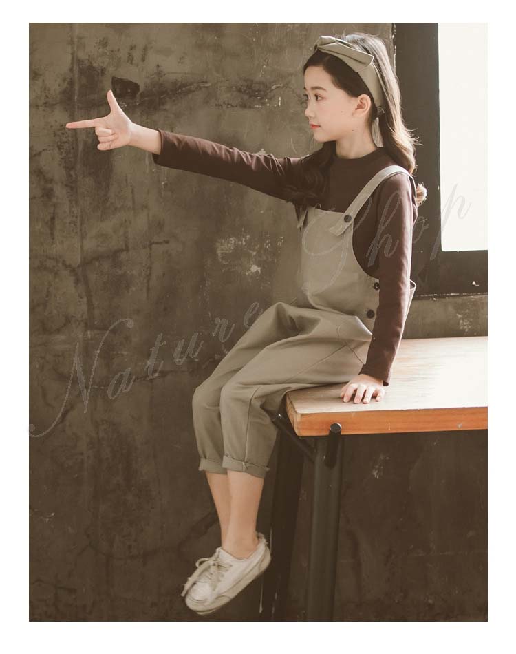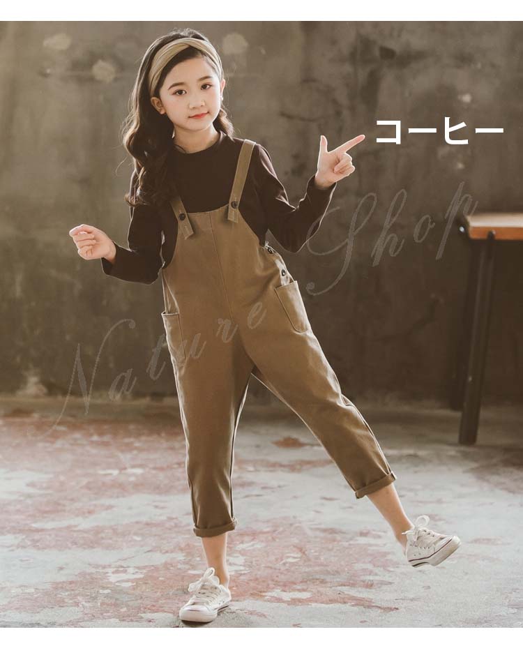 セットアップ レディース キッズ カジュアル おしゃれ 長袖 Tシャツ 七分丈 オーバーオール 上下 2点セット 無地 子ども服 子供服 女の子 カジュアル ナチュラル オールインワン