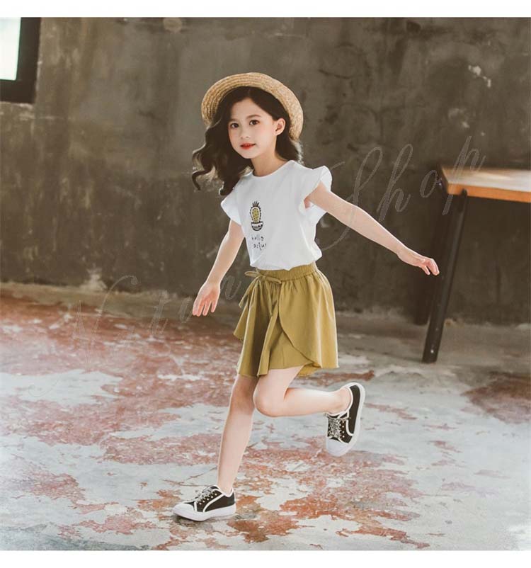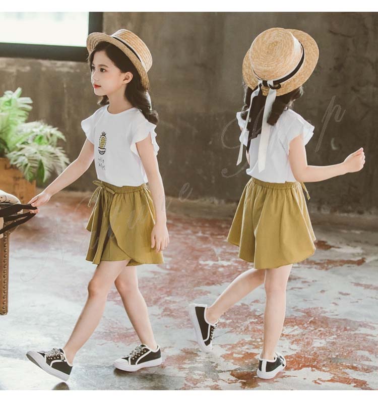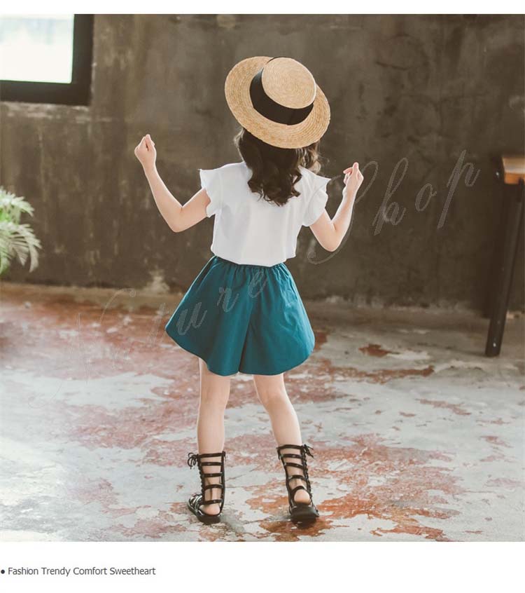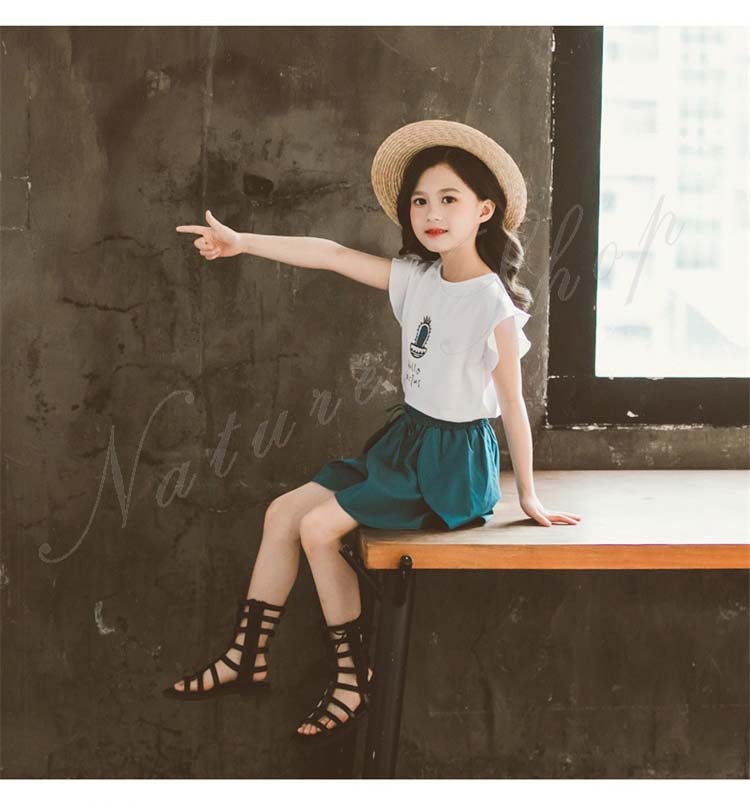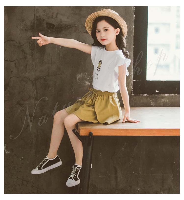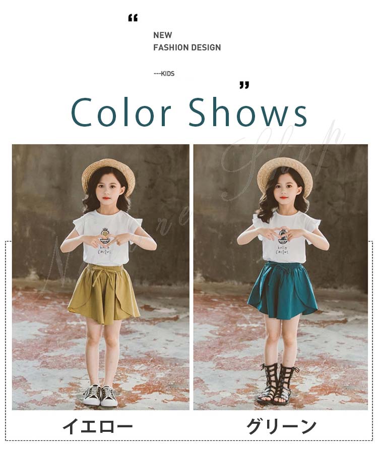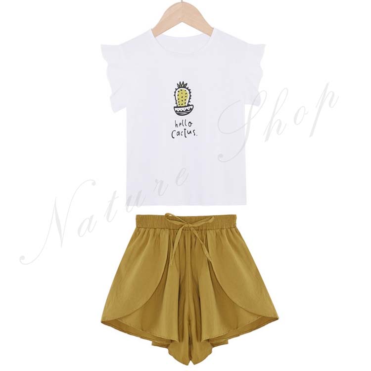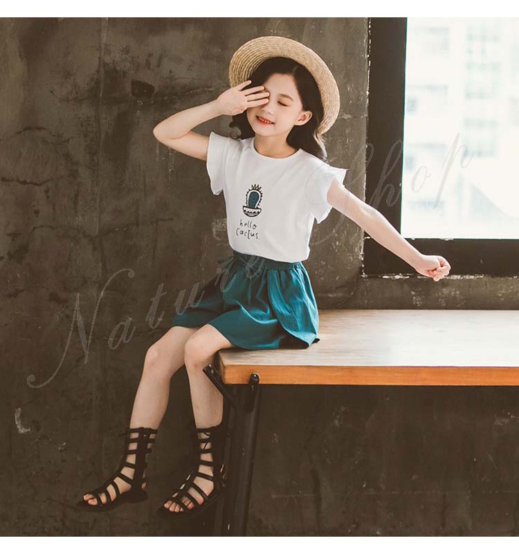 子供服 子ども服 女の子 セットアップ 夏 夏服 カジュアル ナチュラル 半袖 Tシャツ ショートパンツ 無地 個性的 カクタス柄 ジュニア 2colors 可愛い かわいい 普段着 日常