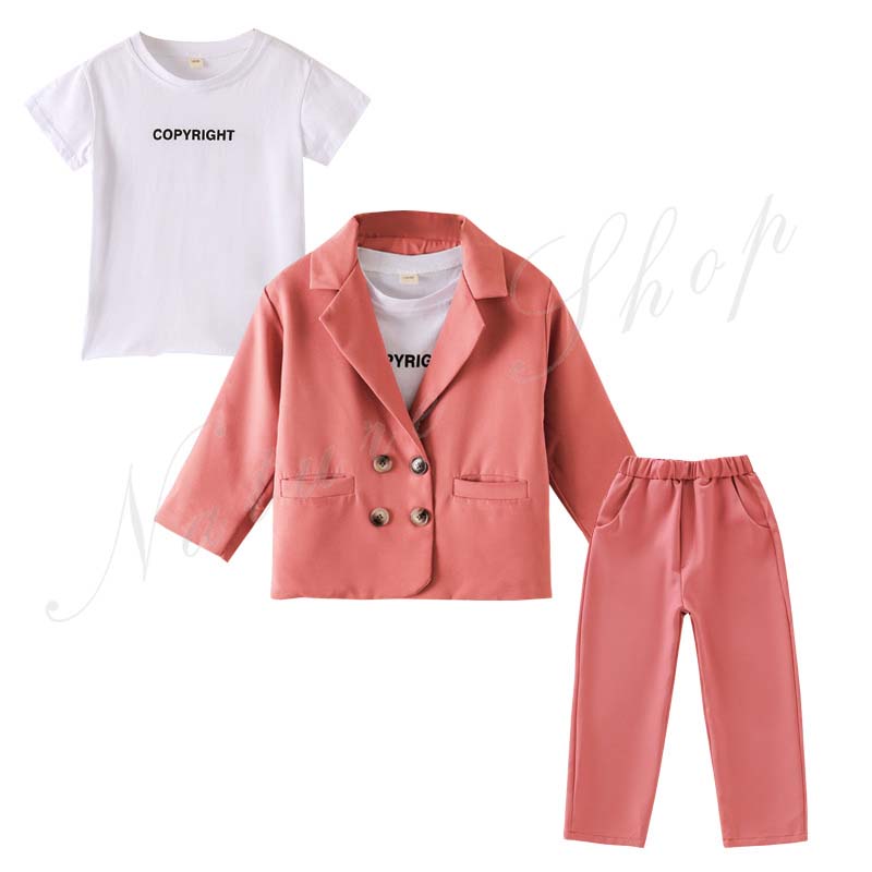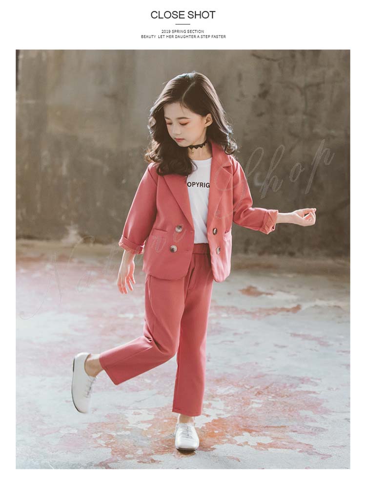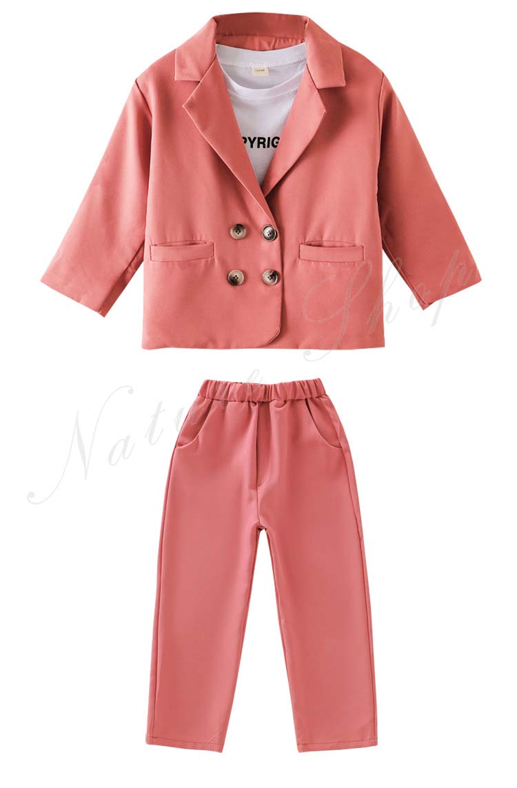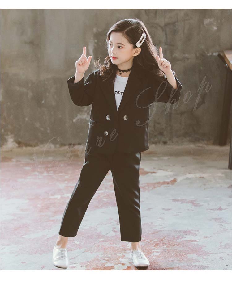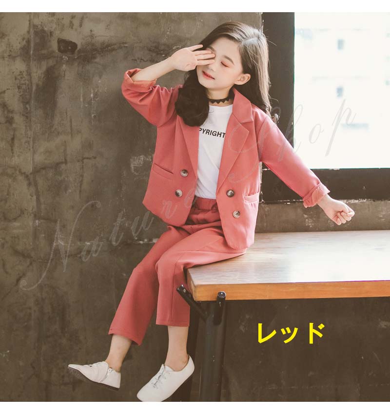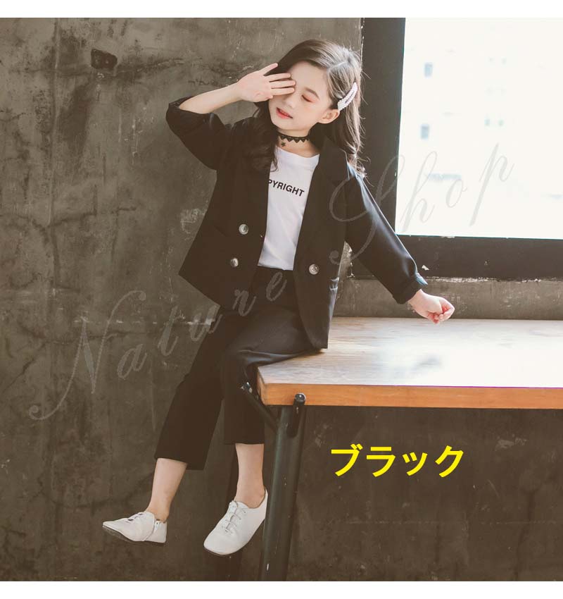 スーツセット 子供スーツ パンツスーツ スーツコート ロング丈 パンツ 半袖 Tシャツ 上下セット 3点セット カジュアル フォーマル パンツセット レディース