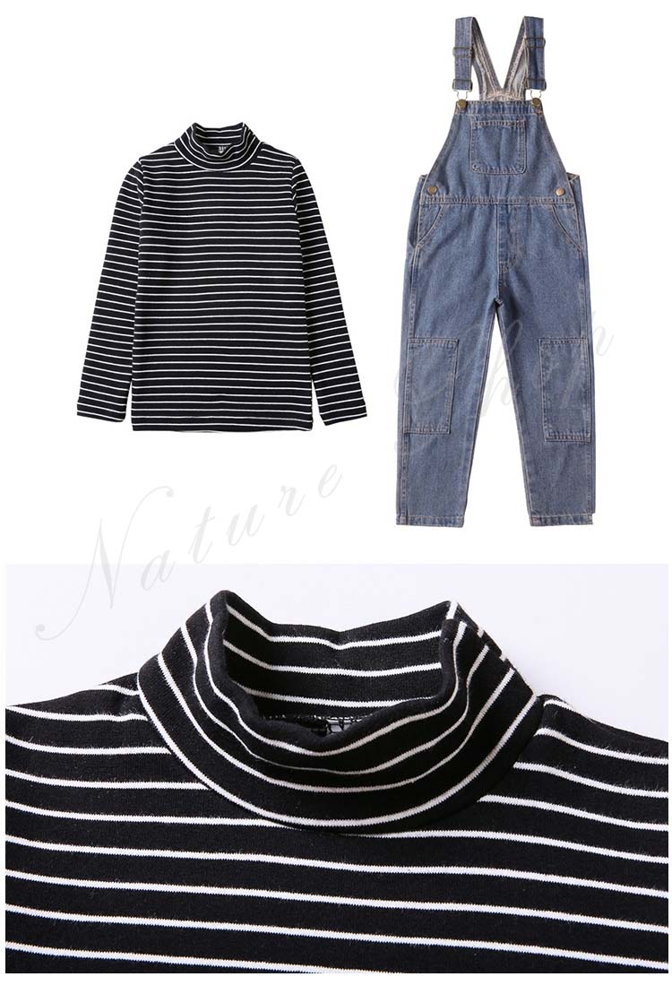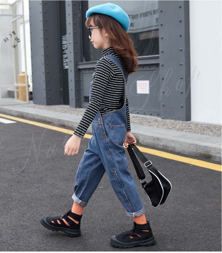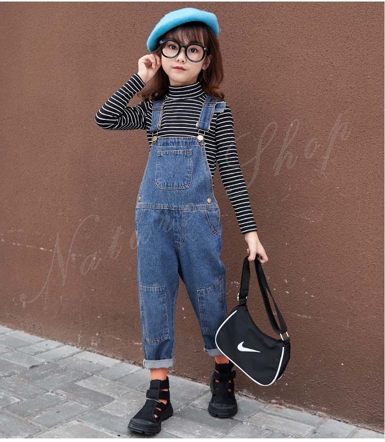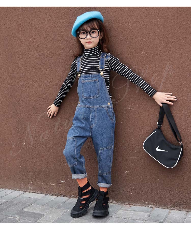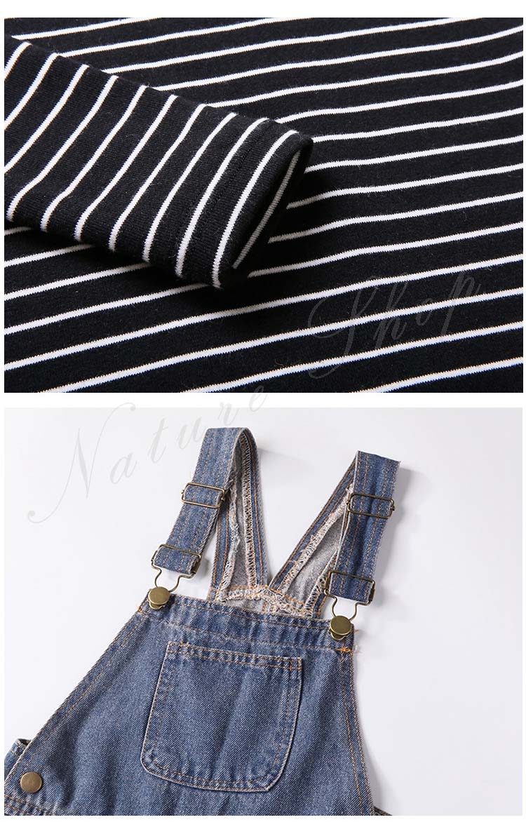 セットアップ レディース キッズ カジュアル 大きいサイズ 長袖インナー タートルネック ストライプ柄 デニム オーバーオール オールインワン 服 サロペット
