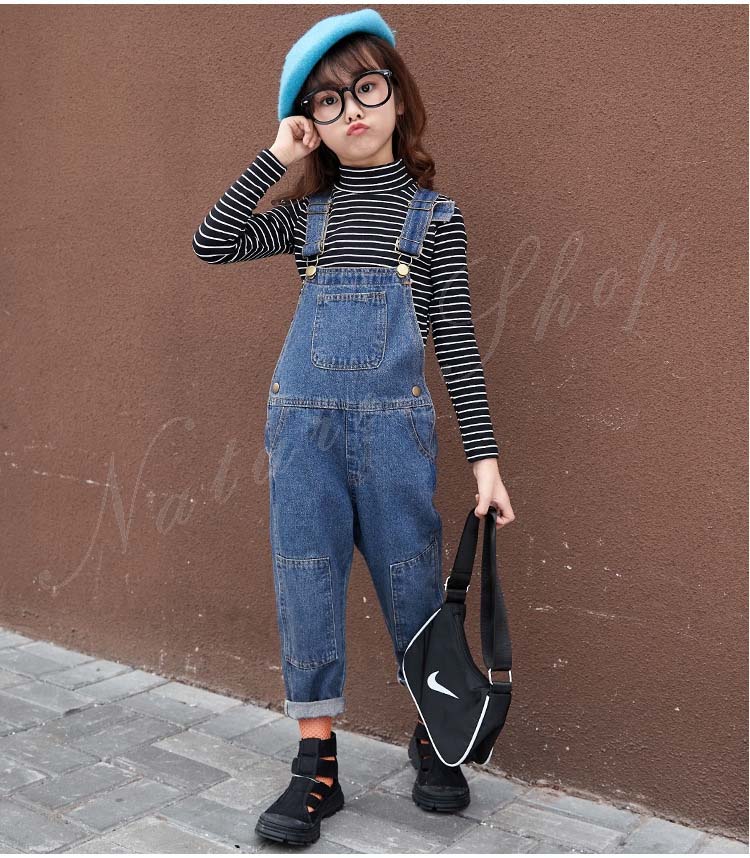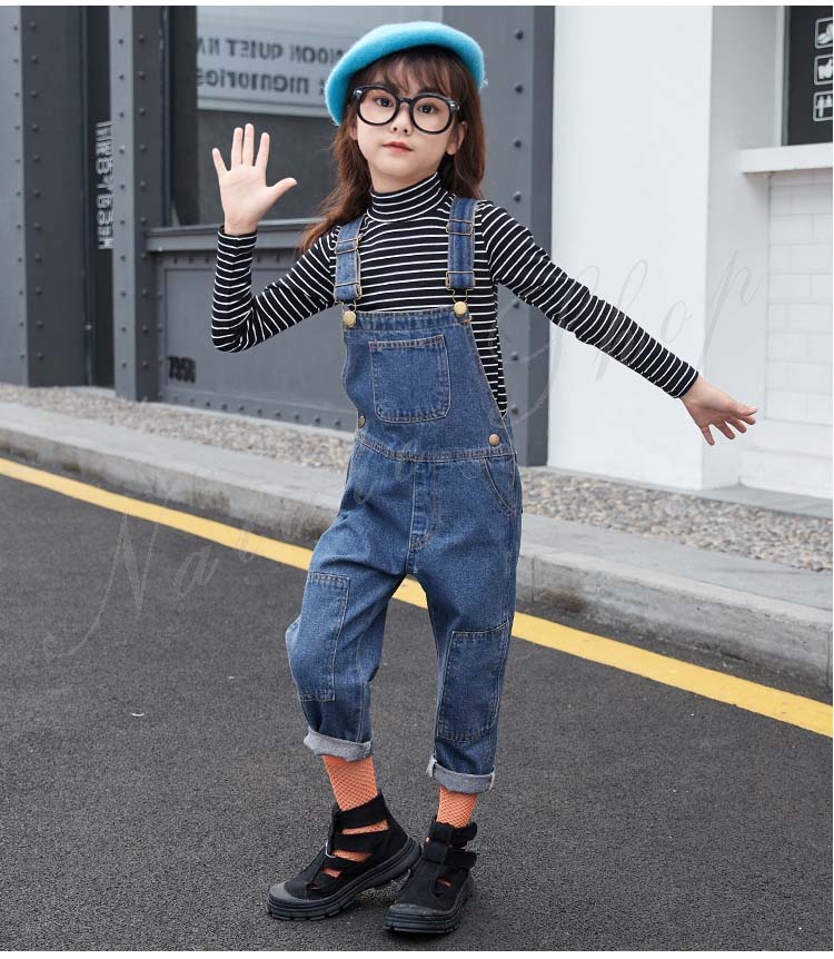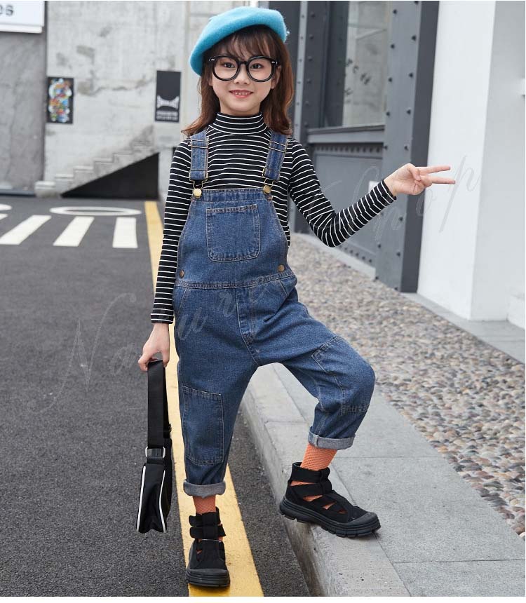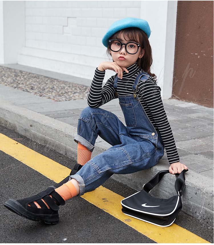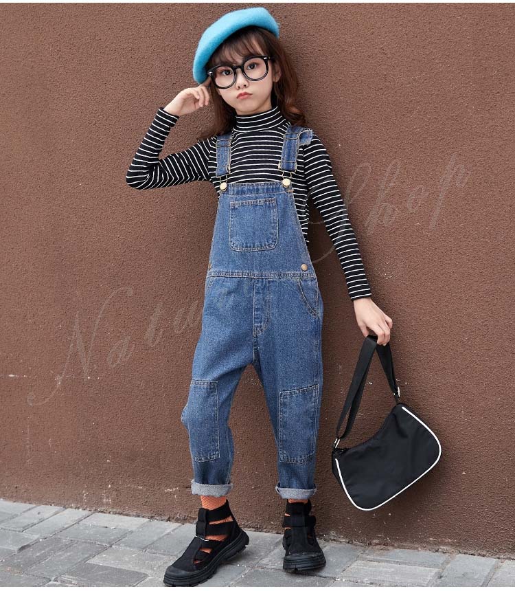 セットアップ レディース キッズ カジュアル 大きいサイズ 長袖インナー タートルネック ストライプ柄 デニム オーバーオール オールインワン 服 サロペット