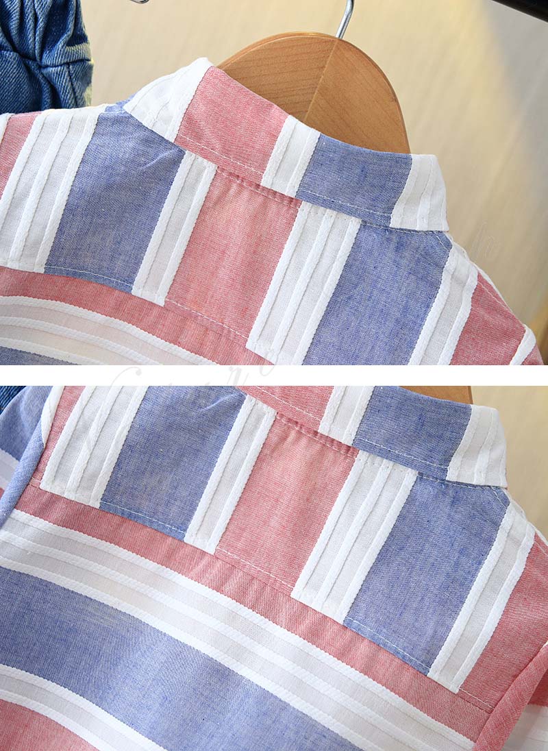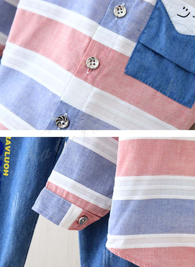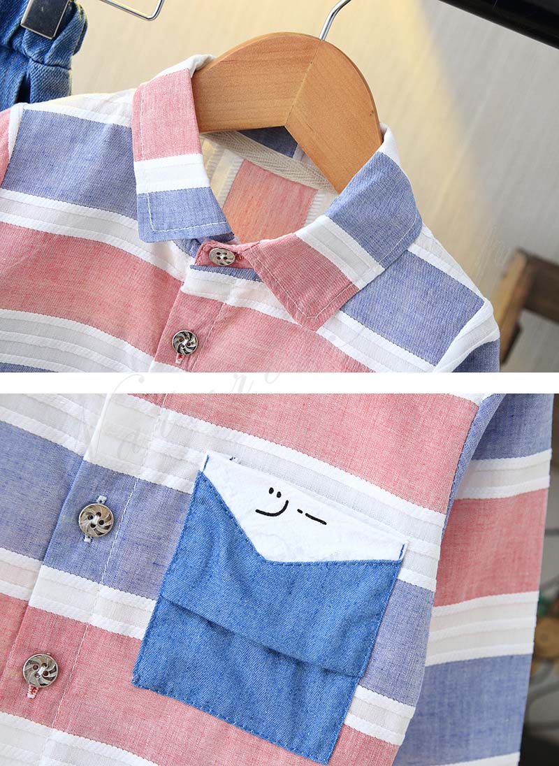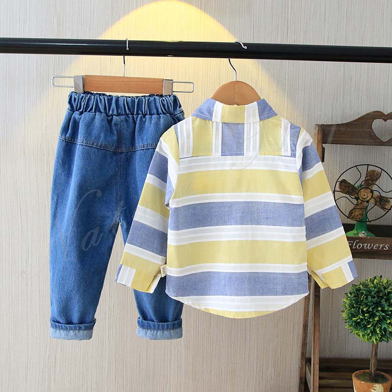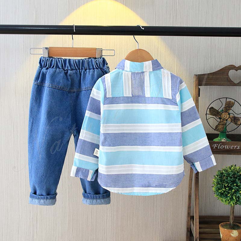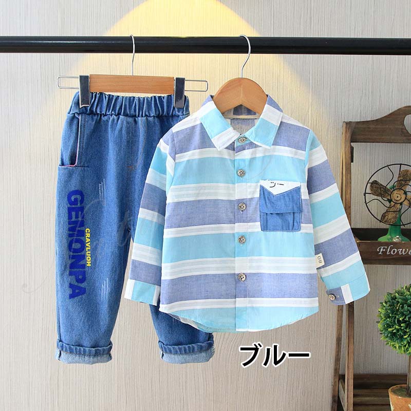 ベビー服 男の子 新生児 80 90 長袖 シャツ 折り襟 ストライプ柄 ジーンズ 子ども服 子供服 男の子 セットアップ デニム ロング丈 ズボン ゴムバンド 日常 普段着 通園