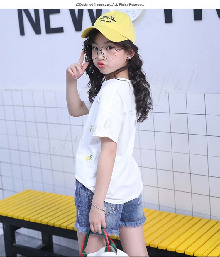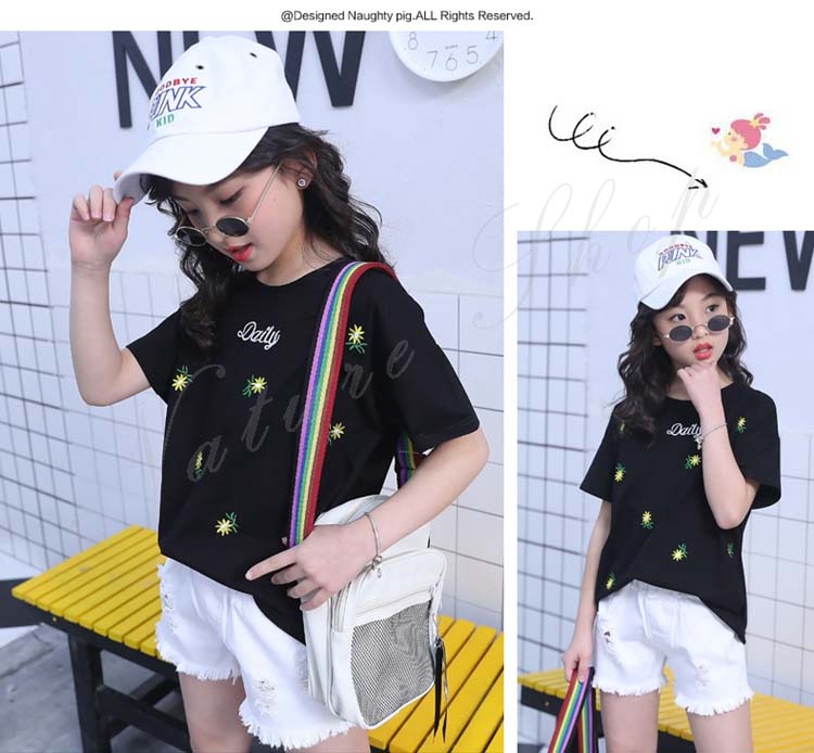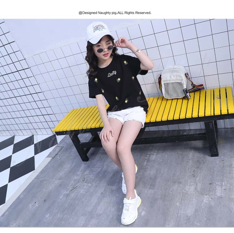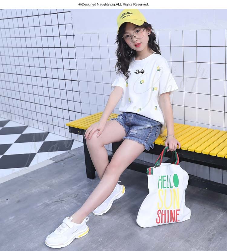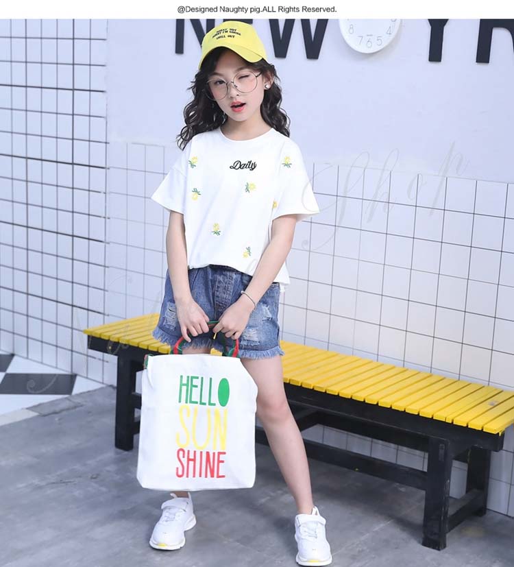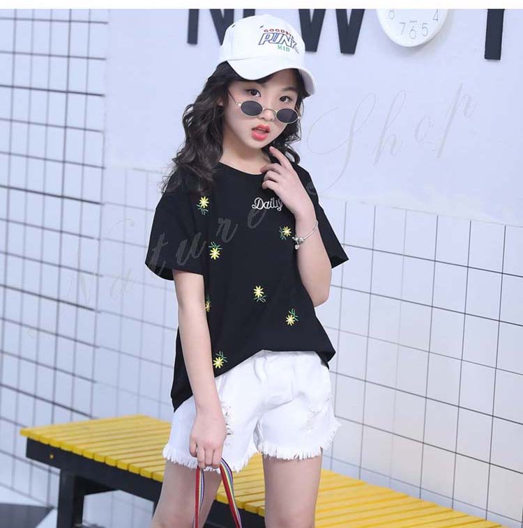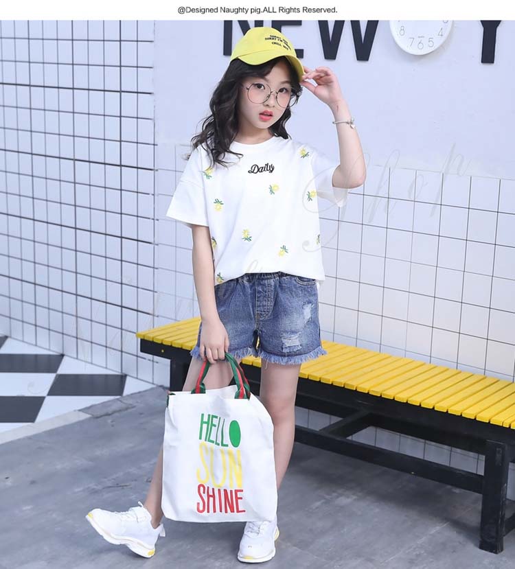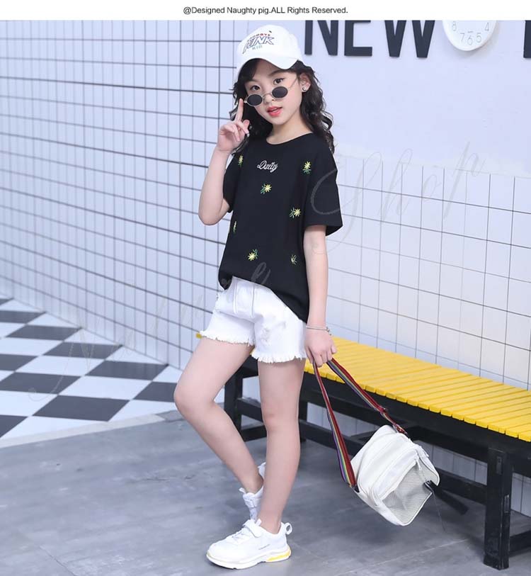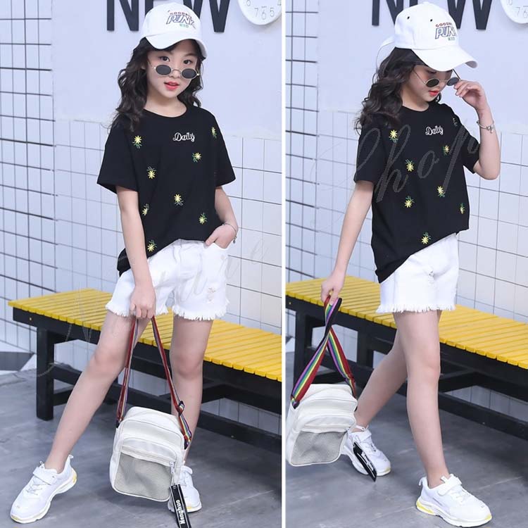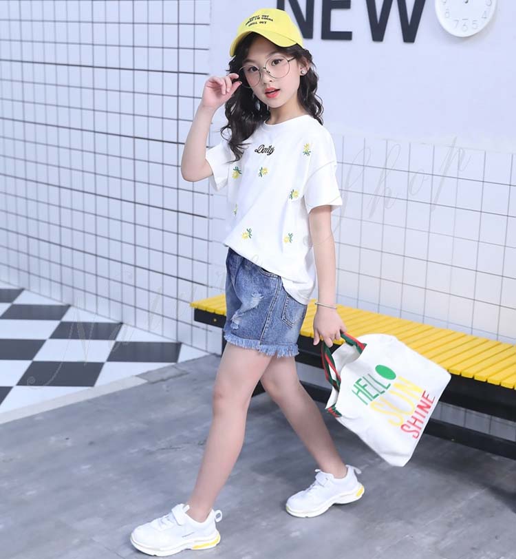 セットアップ キッズ 女の子 レディース カジュアル 夏 韓国 大きいサイズ 半袖 おしゃれ Tシャツ 花柄 総柄 デニム 短パン フリンジ 2点セット 普段着 通学