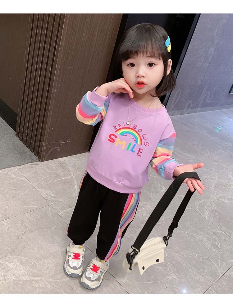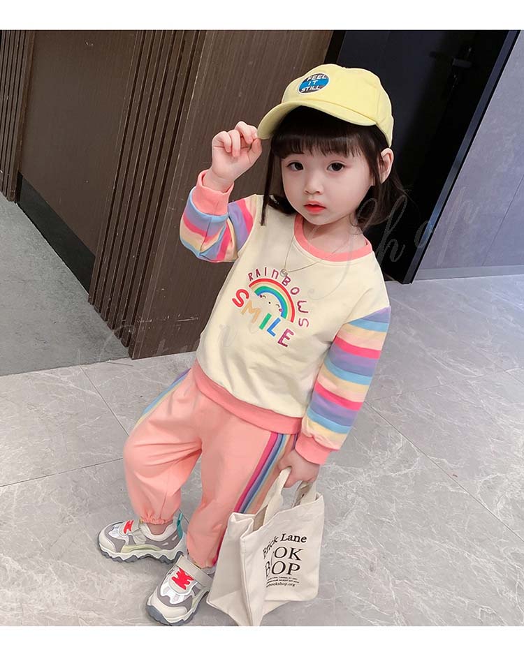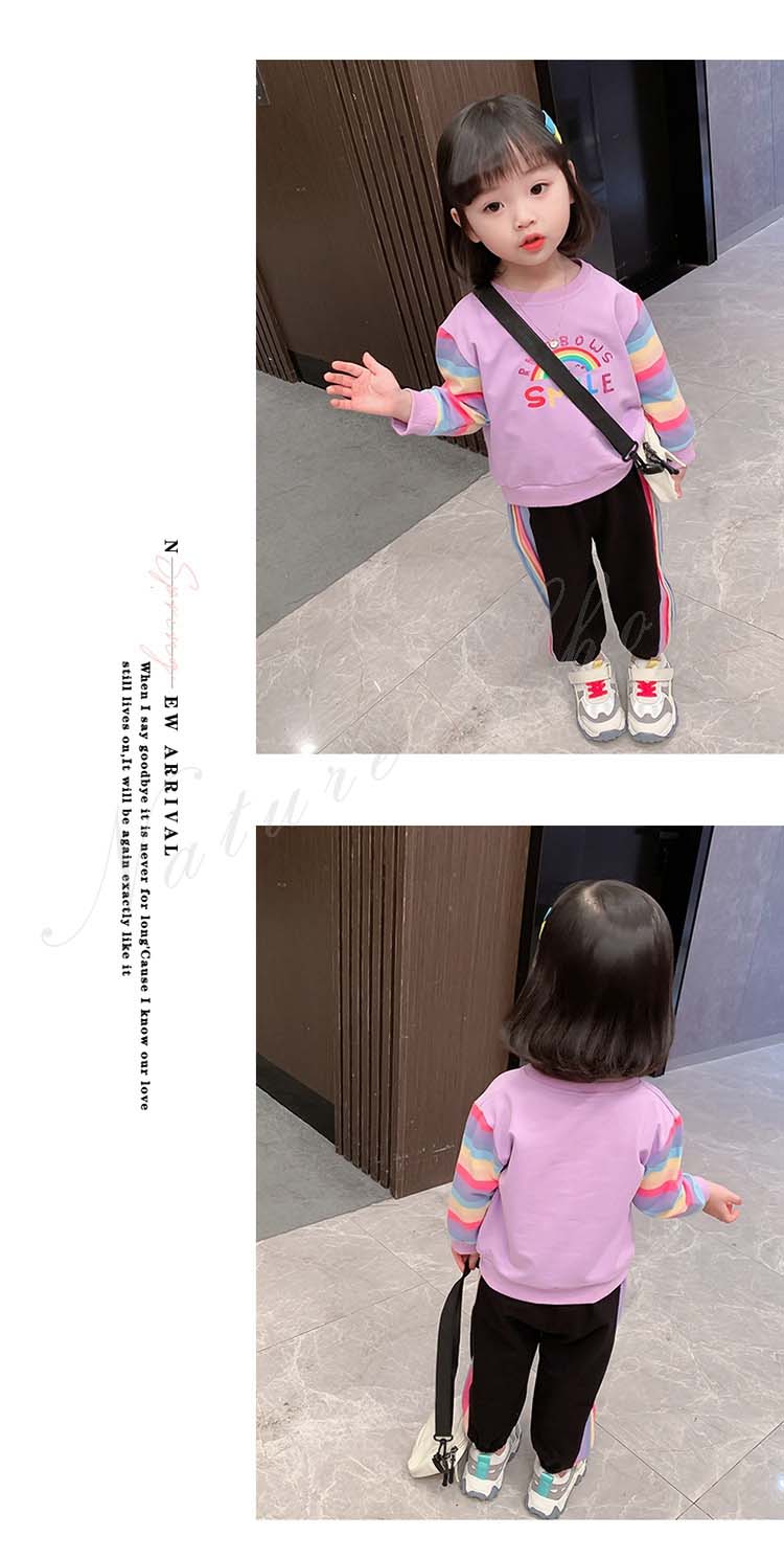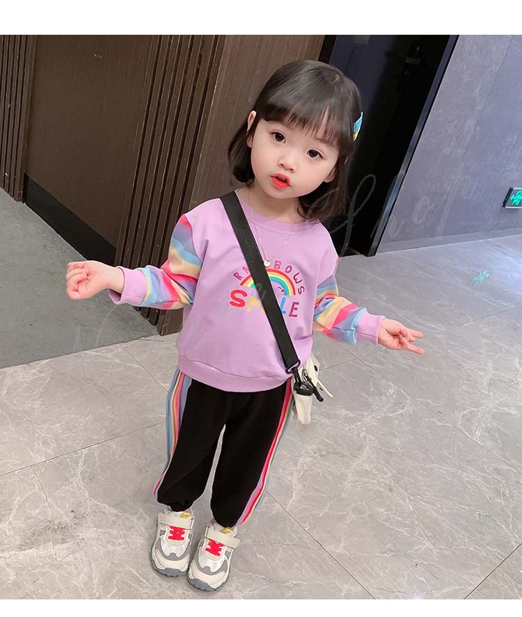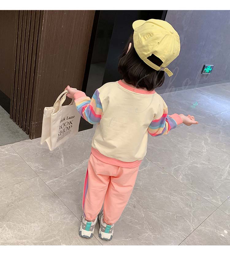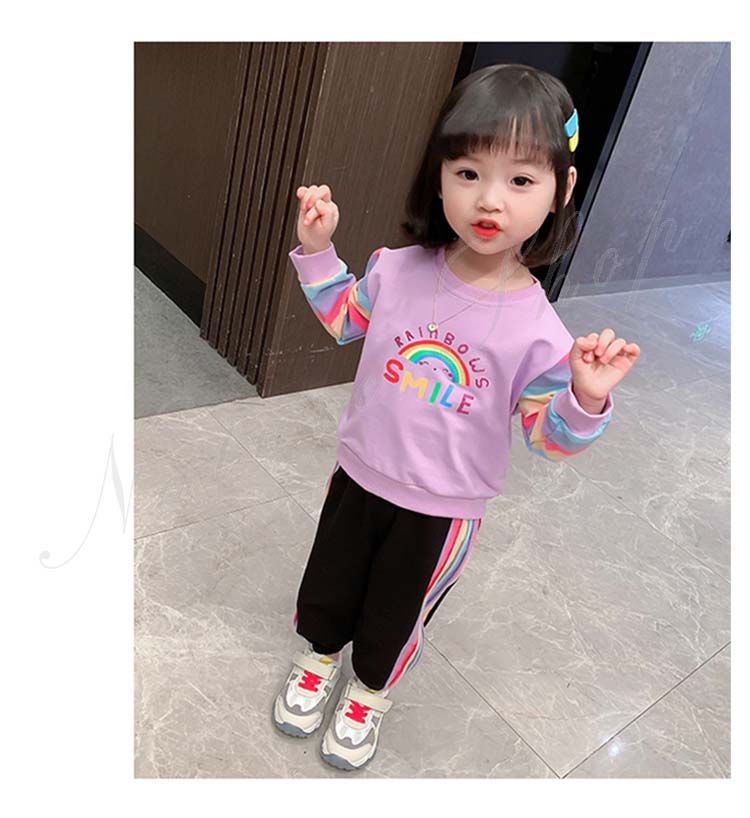 子ども服 子供服 女の子 カジュアル ナチュラル スウェット 長袖 パーカー ロング丈ズボン サルエルパンツ 虹柄袖 スポーツウェア 女の子 キッズ ガール 幼児 乳児 通園