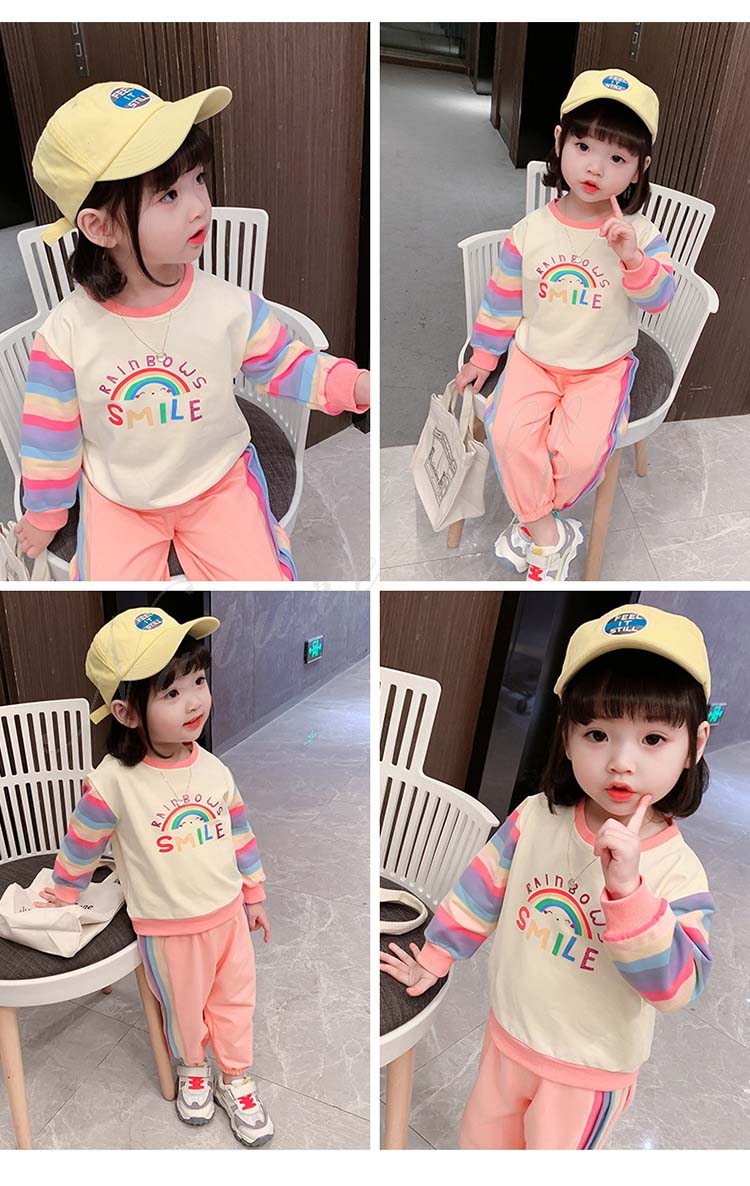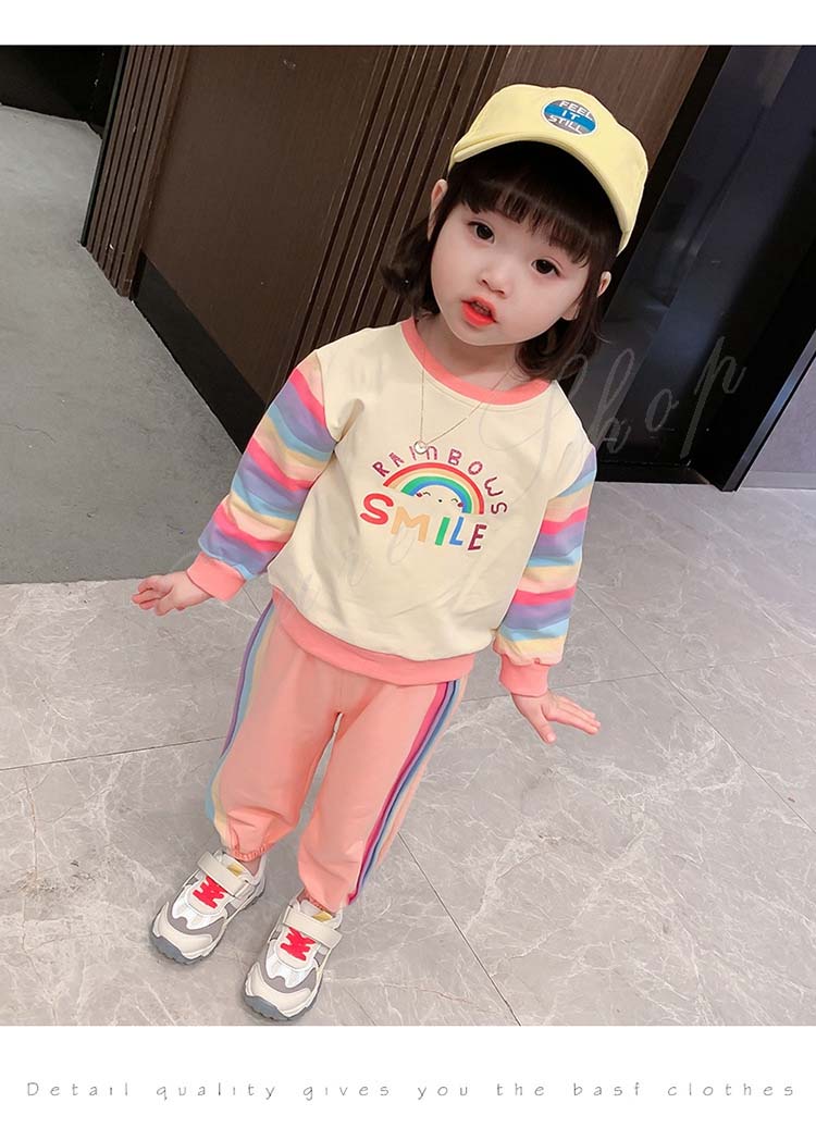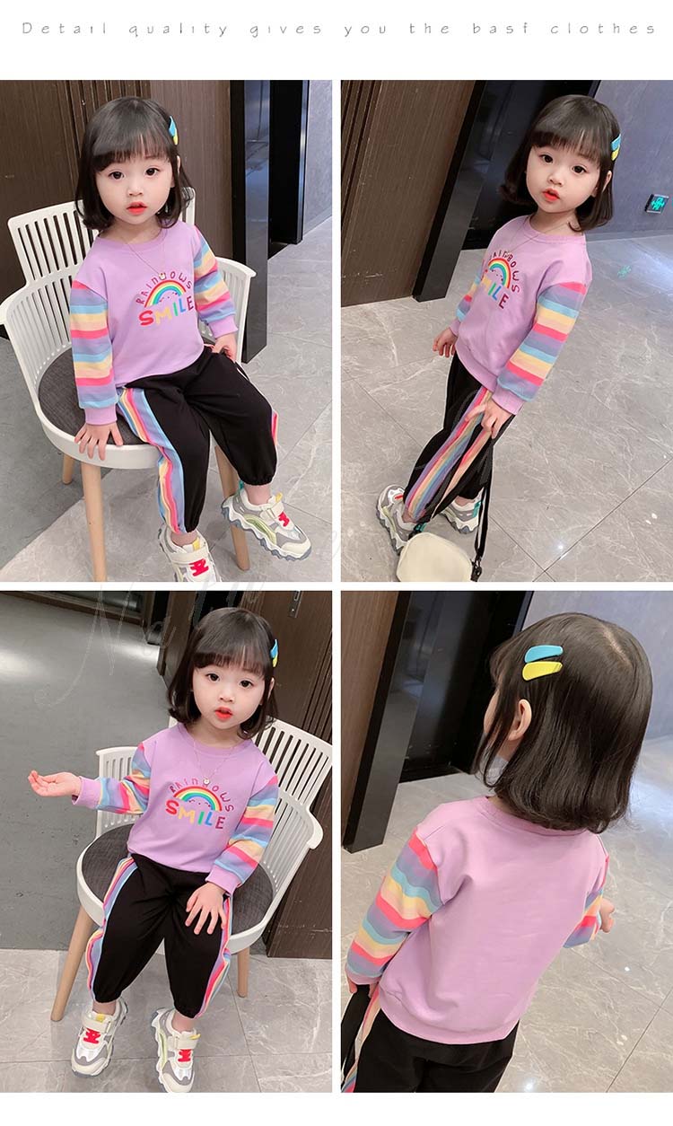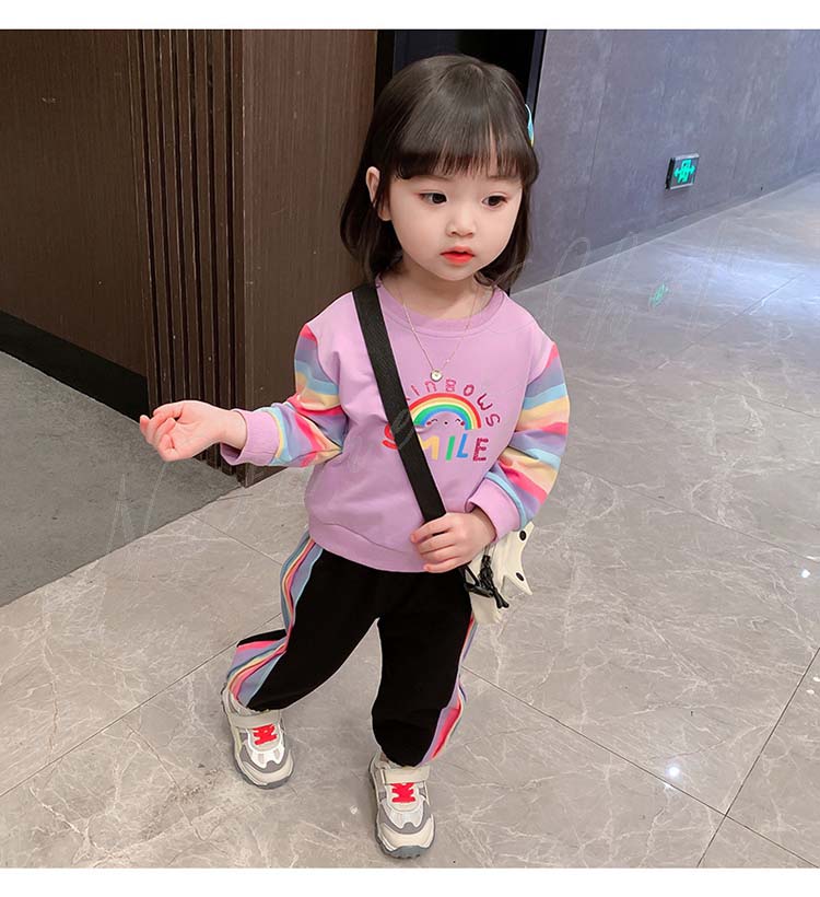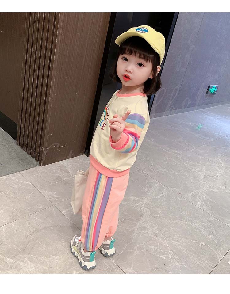 子ども服 子供服 女の子 カジュアル ナチュラル スウェット 長袖 パーカー ロング丈ズボン サルエルパンツ 虹柄袖 スポーツウェア 女の子 キッズ ガール 幼児 乳児 通園
