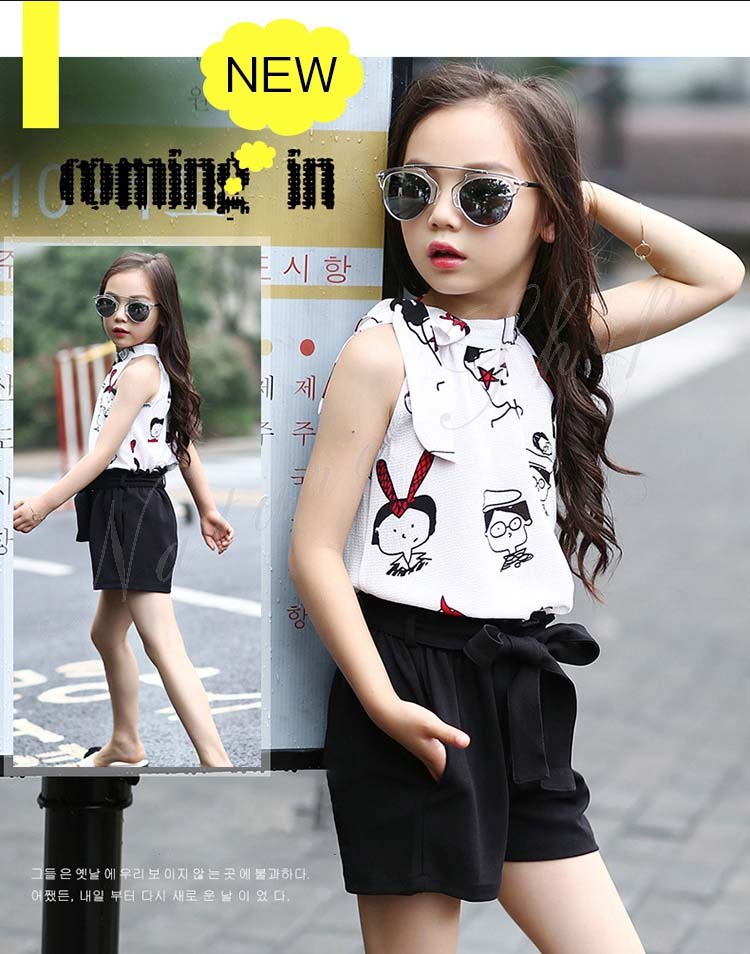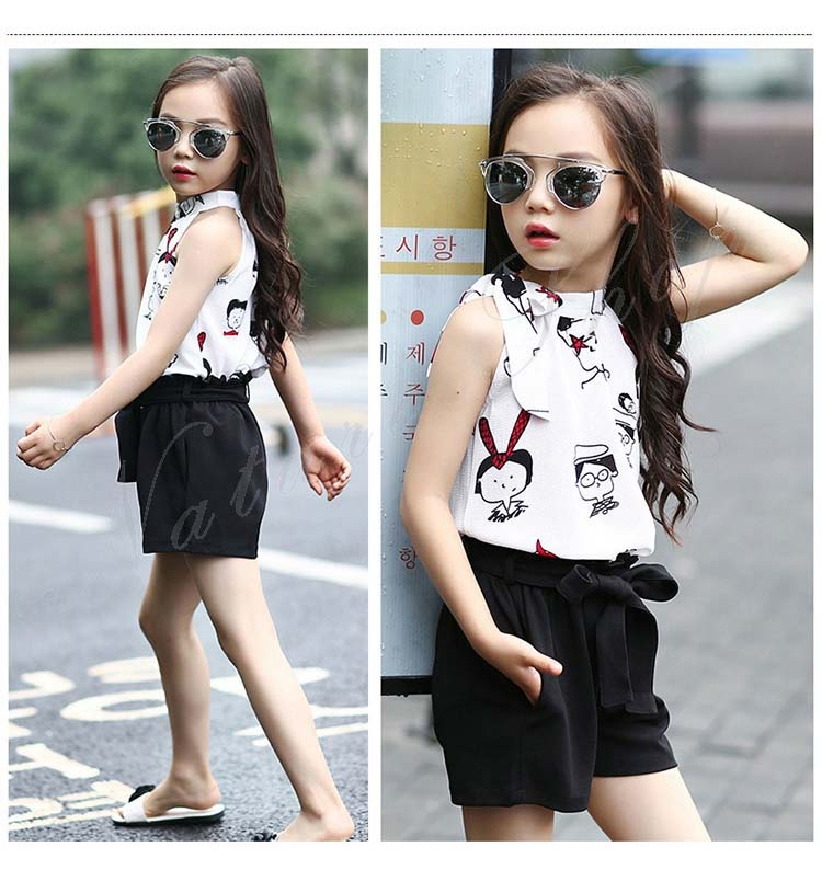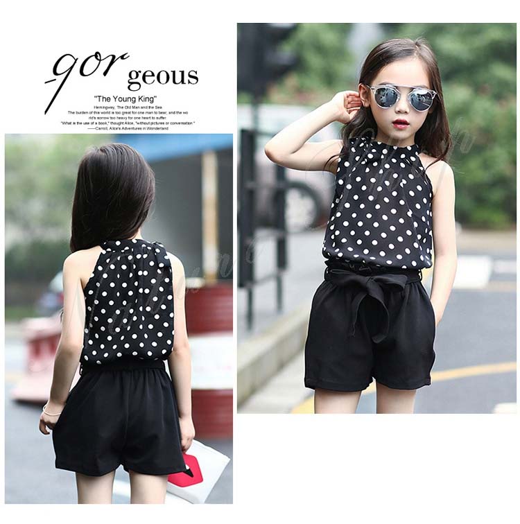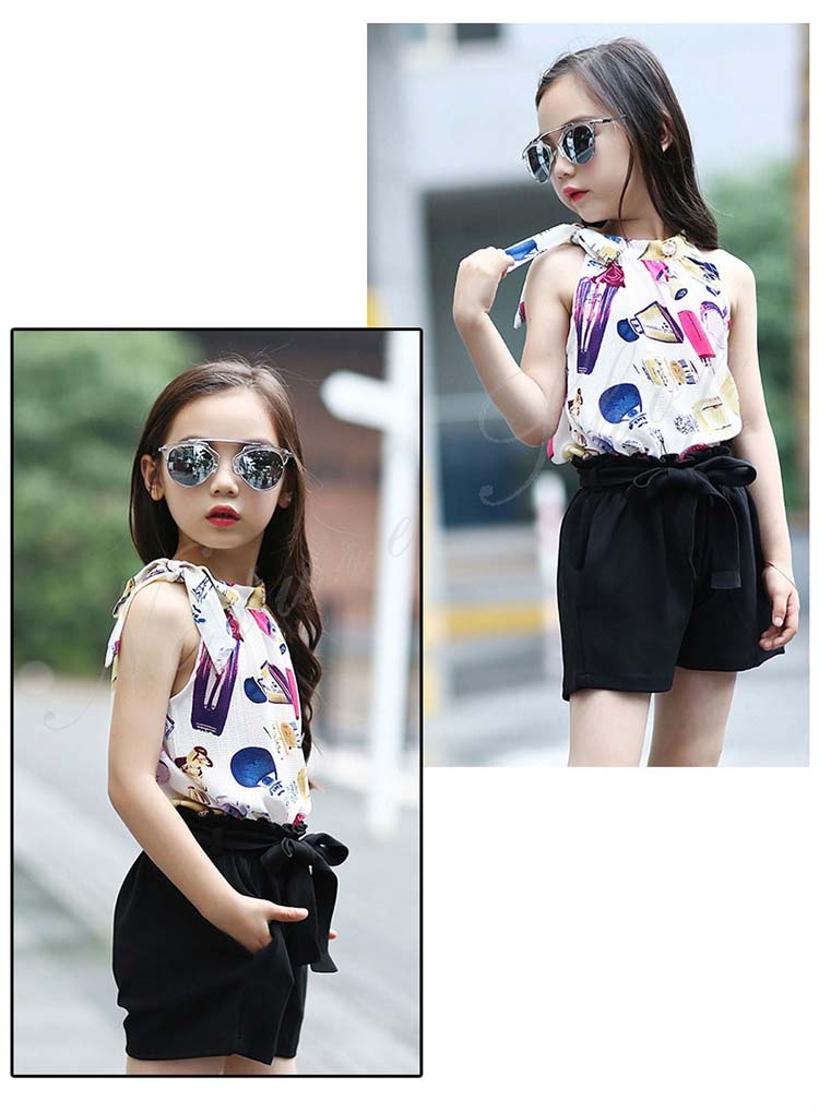 セットアップ レディース ジュニア キッズ 女の子 大きいサイズ カジュアル おしゃれ 夏 ブラウス ノースリーブ 袖なし 柄系 ドット柄 香水柄 総柄 短パン ショートパンツ