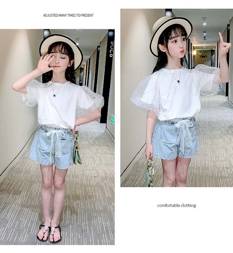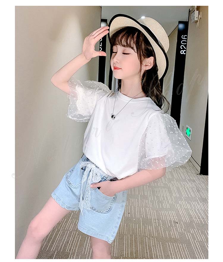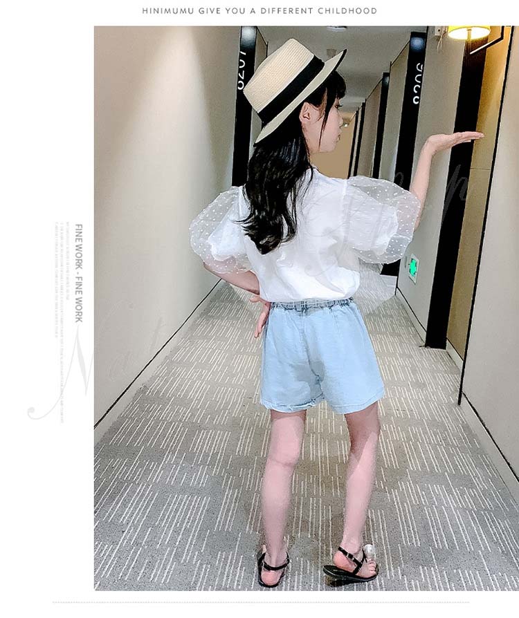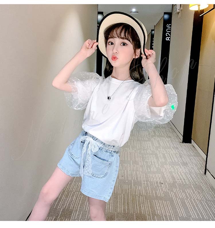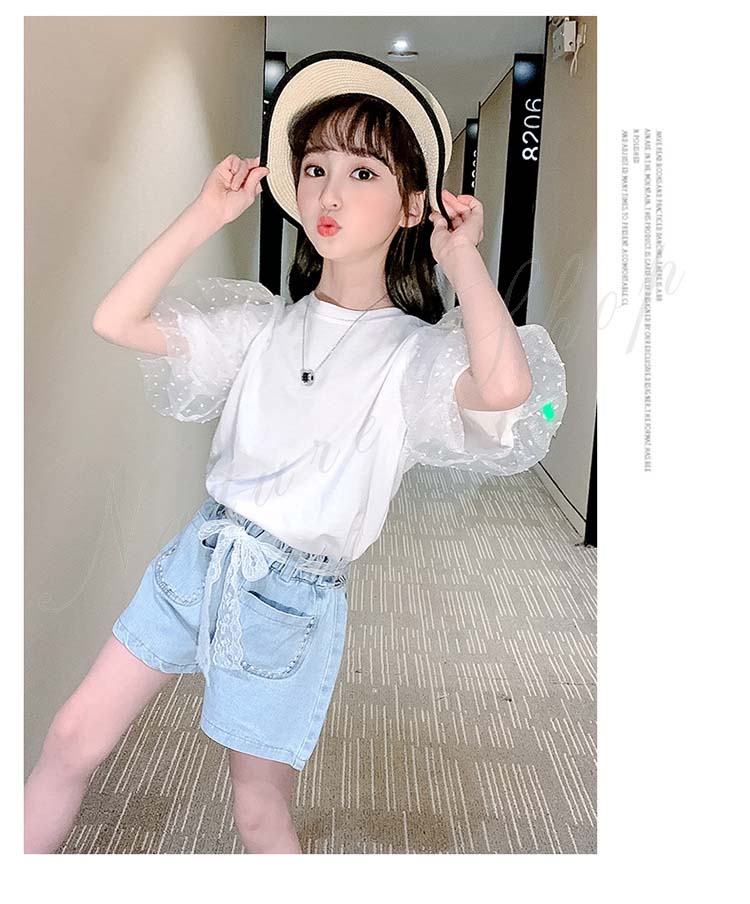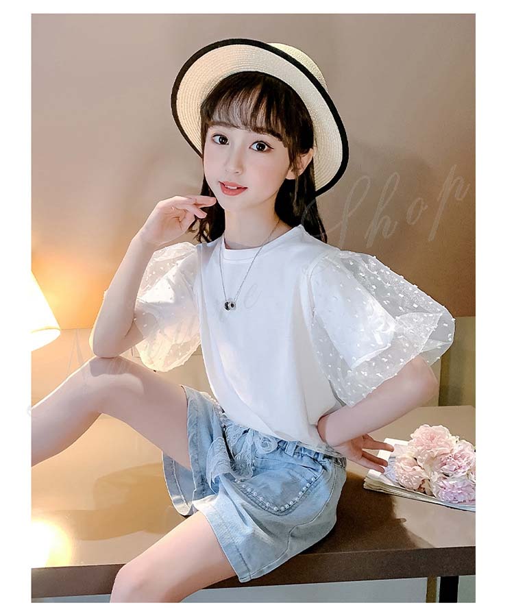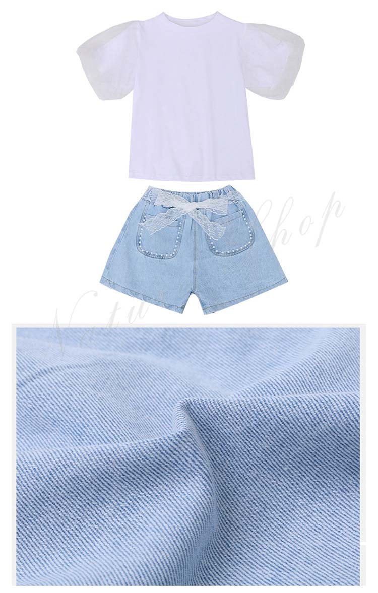 セットアップ レディース カジュアル キッズ 半袖 Tシャツ ショートパンツ 子ども服 子供服 女の子 セットアップ 夏服 夏服 カジュアル ナチュラル パフ袖 デニム 半ズボン