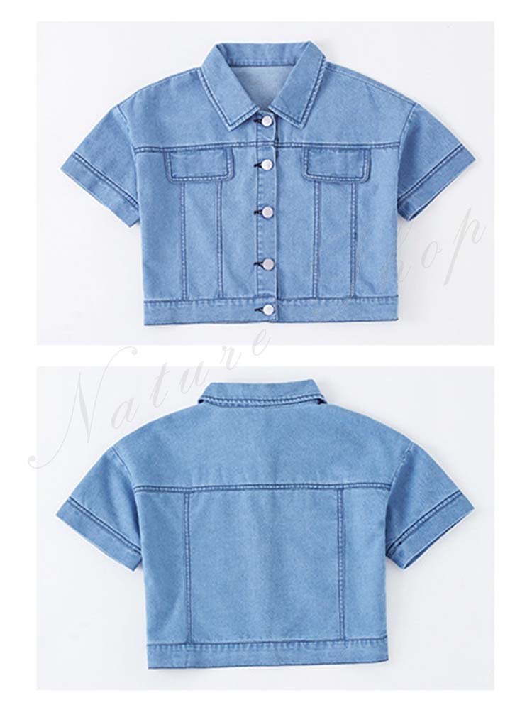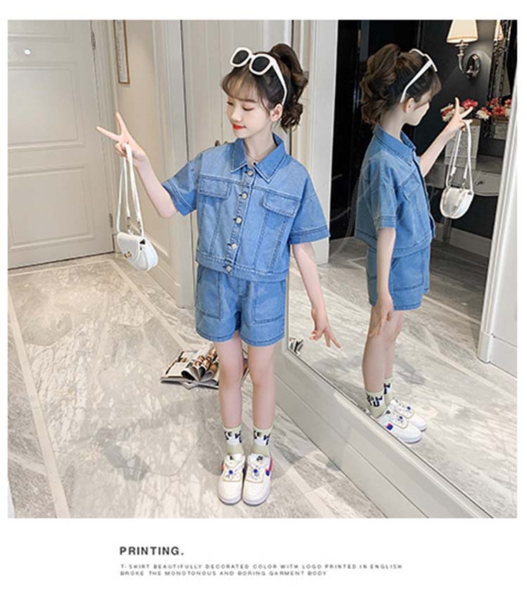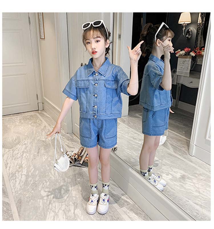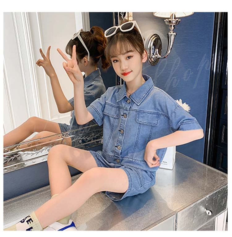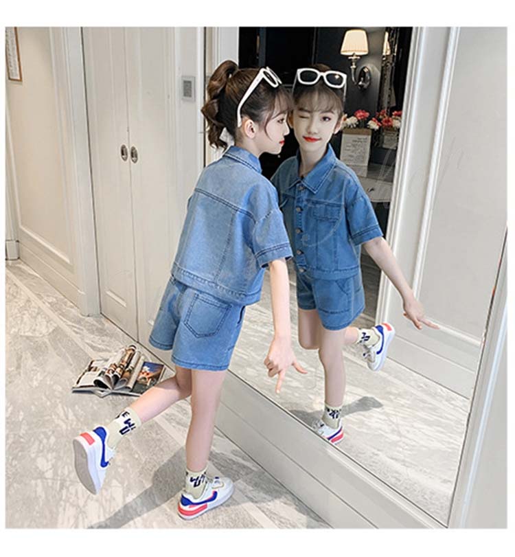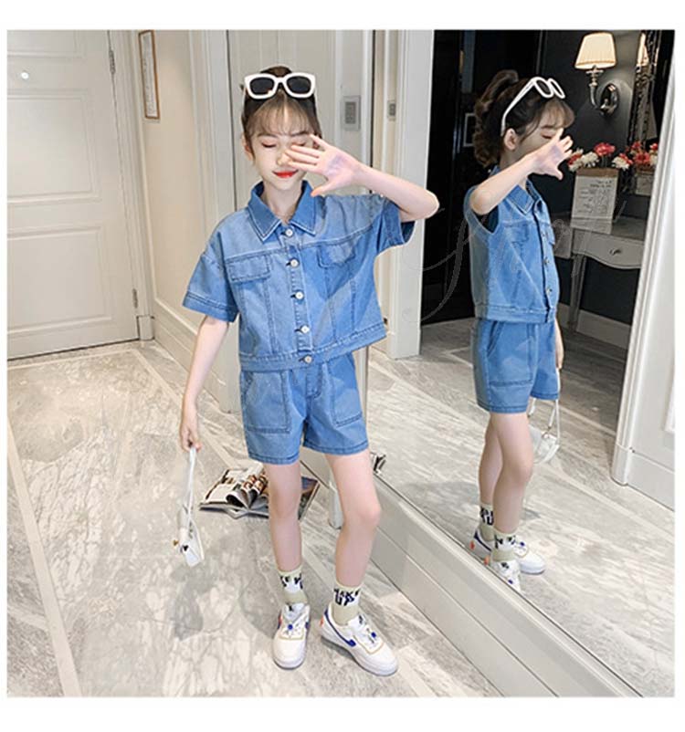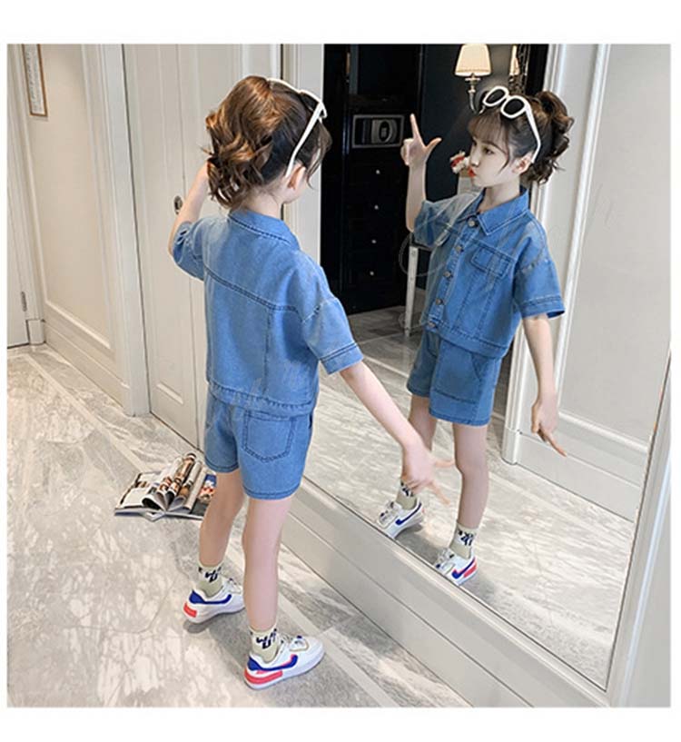 子供服 子ども服 女の子 夏 夏服 セットアップ カジュアル ナチュラル デニムセット シャツ 短パン 上下 2点セット デニムシャツ デニム ショートパンツ 半ズボン ジュニア