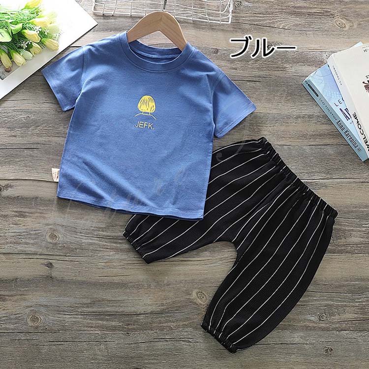 子供服 子ども服 男の子 女の子 トップス パンツ 夏服 セットアップ 新生児 幼児 乳児 キッズ 半袖Tシャツ ロング丈ズボン 日常服 私服 普段着 部屋着 上下セット 2点セット