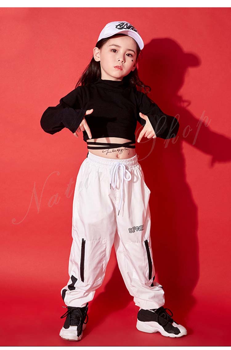 キッズ ダンス衣装 トップス ズボン 子供 子ども 女の子 カジュアル ナチュラル ダンスウェア 子ども 子供 キッズ レディース おしゃれ ヒップホップ 糸結ぶ 長袖Tシャツ