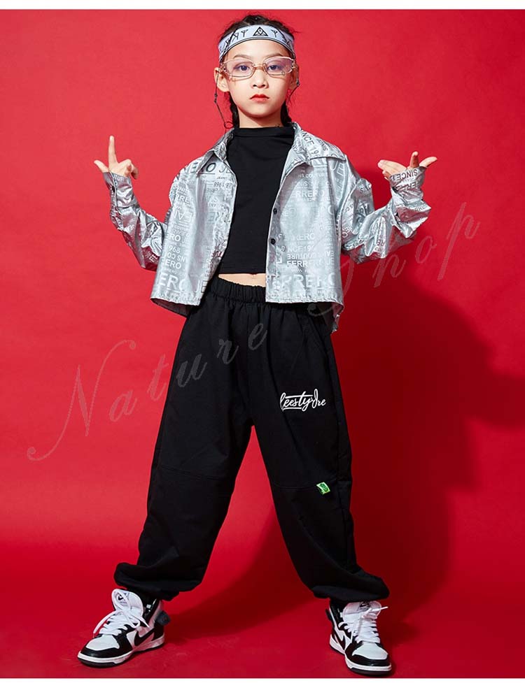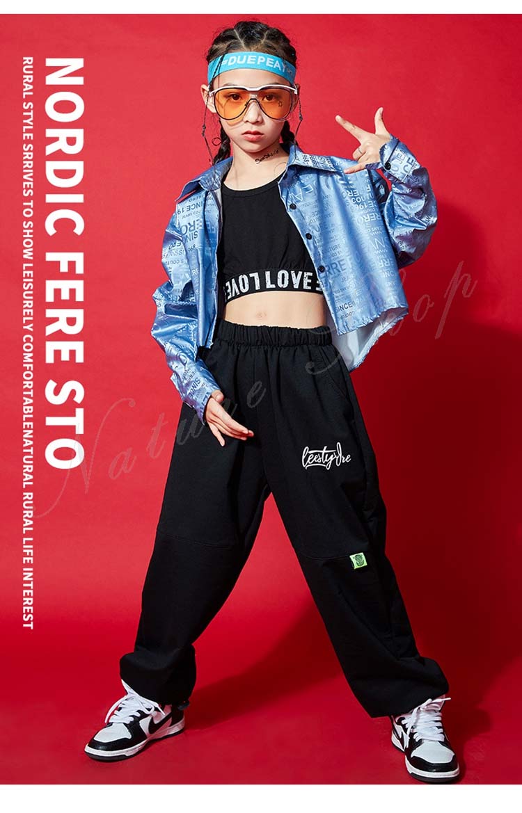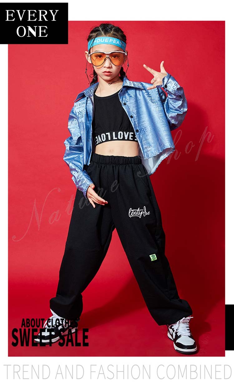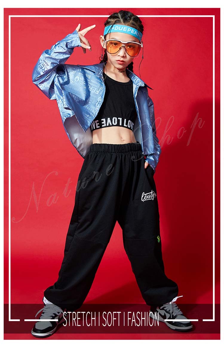 子ども ダンス服 長袖 コート ベスト 長袖 Tシャツ ズボン ダンスウェア 子供 キッズ レディース おしゃれ ヒップホップ ロング丈パンツ 子供 子ども 女の子 自由に組み合わせ