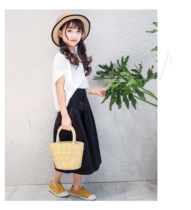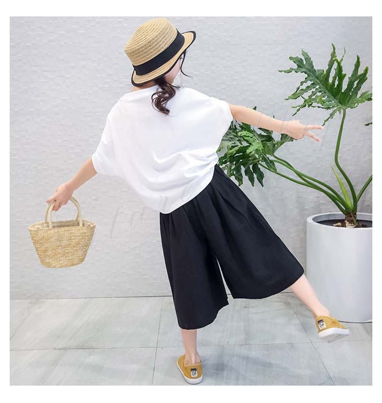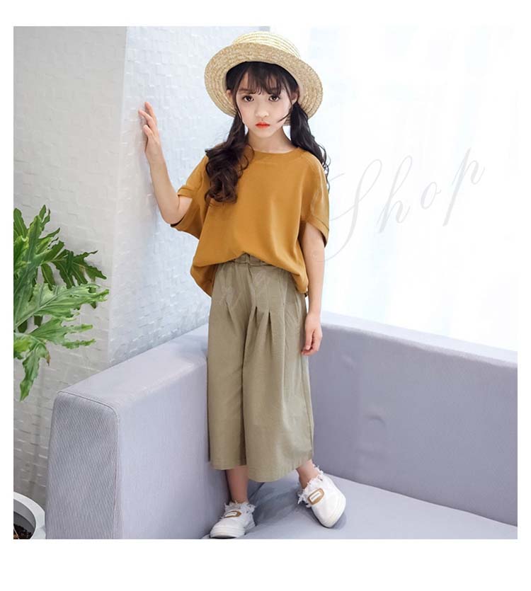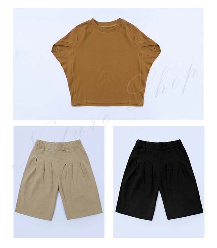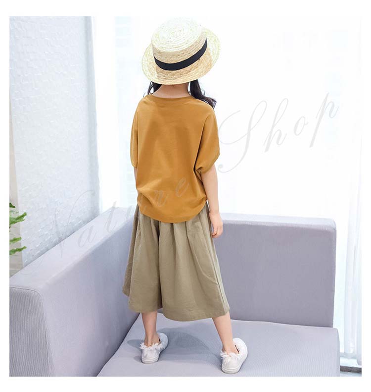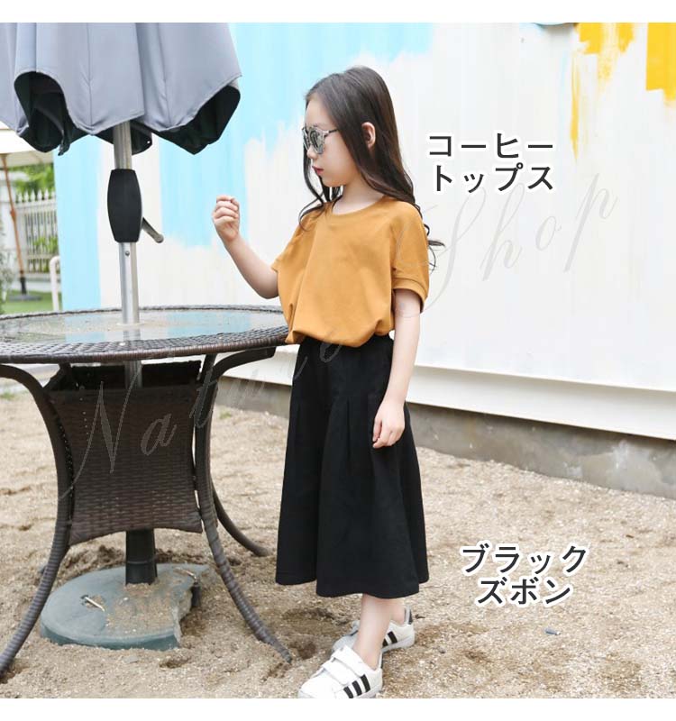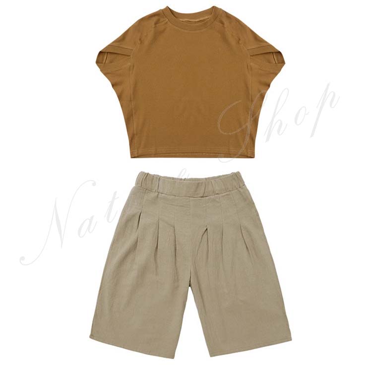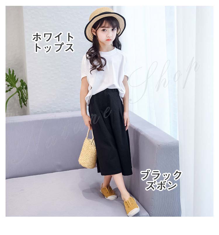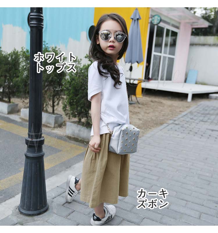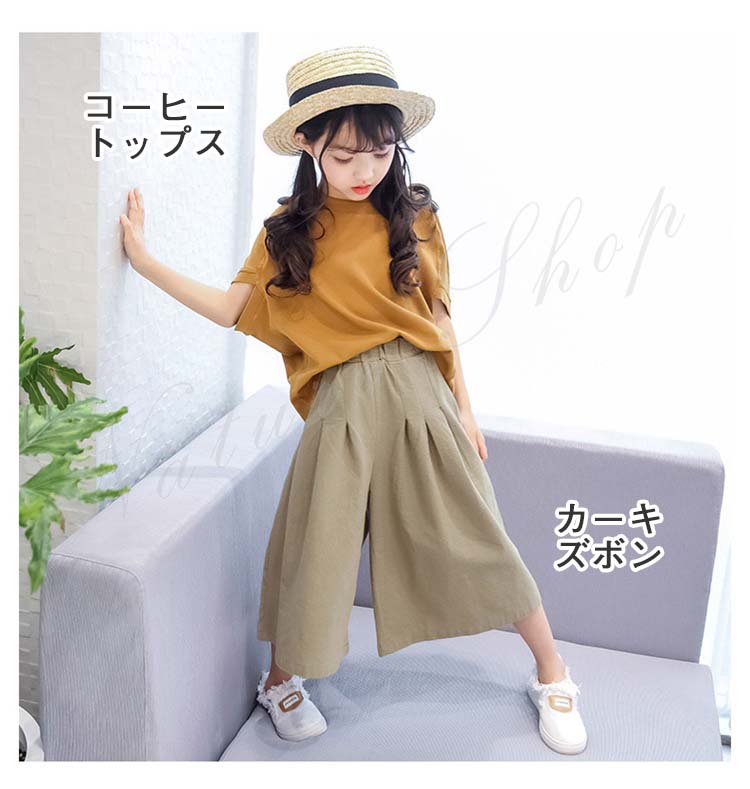 子供服 女の子 夏服 セットアップ カジュアル ナチュラル Tシャツ ワイドパンツ 綿麻 五分袖 上下セット セットアップ シンプル 無地 おしゃれ 可愛い かわいい 女の子