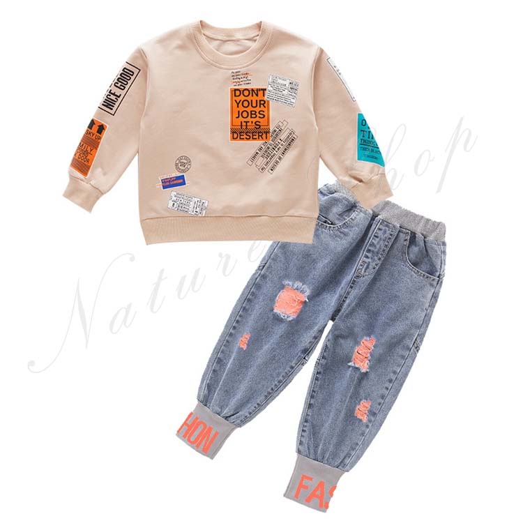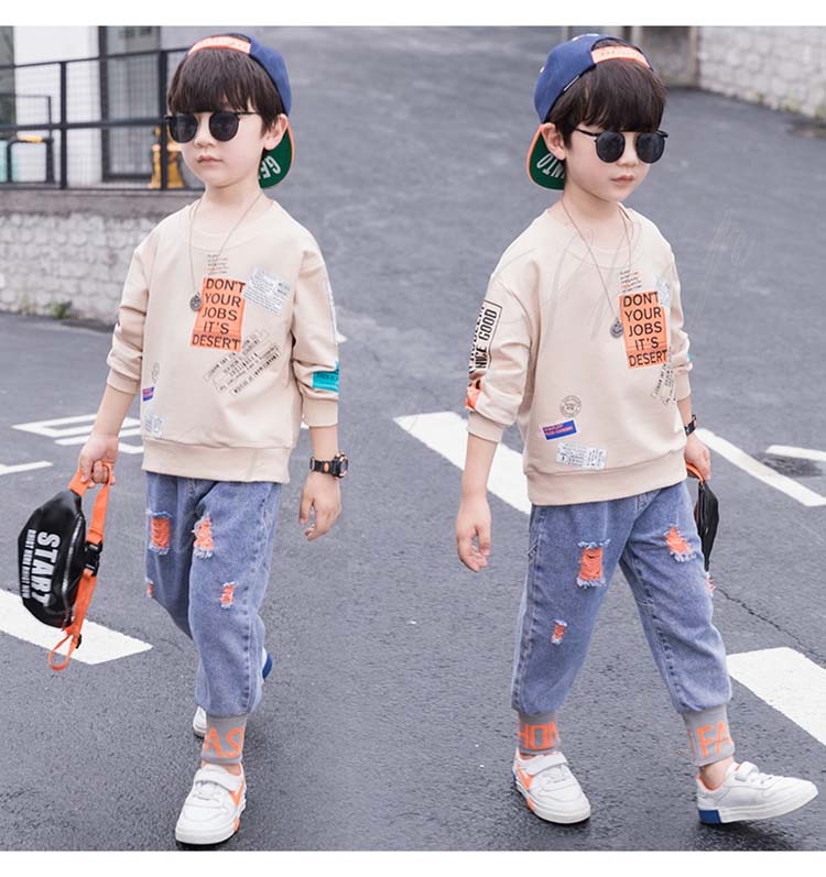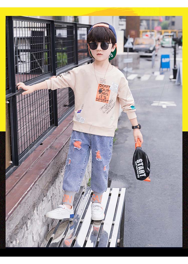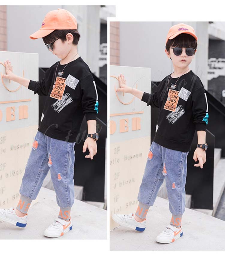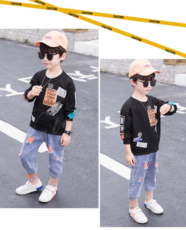 子供服 子ども服 男の子 カジュアル ナチュラル 長袖 パーかー ジーンズ 柄系 ロング丈 デニム パンツ ゆったり 2色選べる 日常 普段着 春秋 ジュニア カジュアルウェア