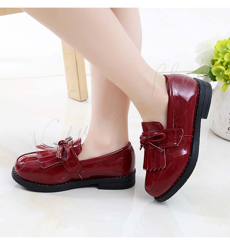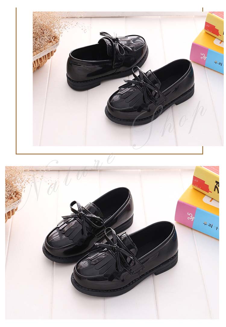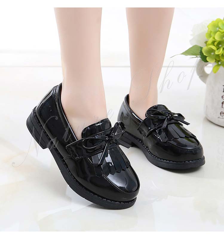 革靴 カジュアル 女の子 皮靴 子供 フォーマル ジュニア 靴 カレッジ風 イギリス風 エナメル ローファ 無地 リボン デザイン感 学生 通学入学 入園 卒業
