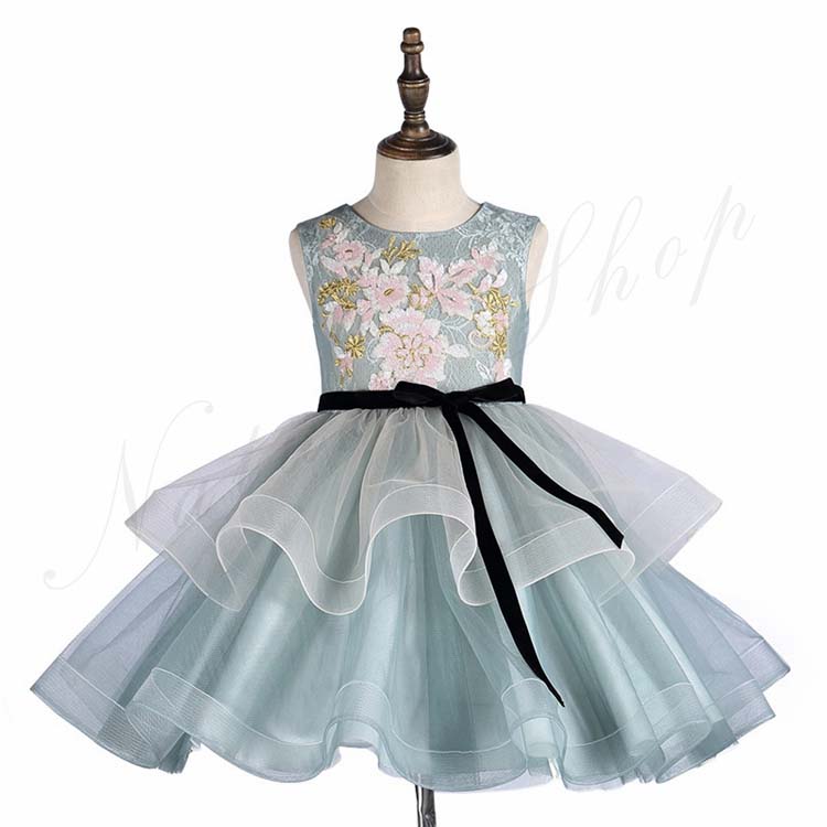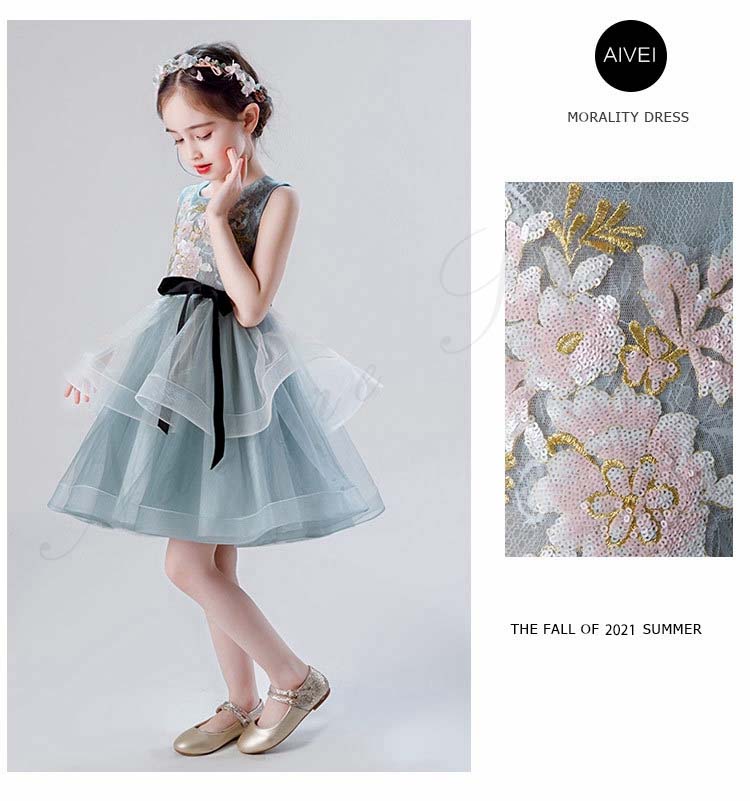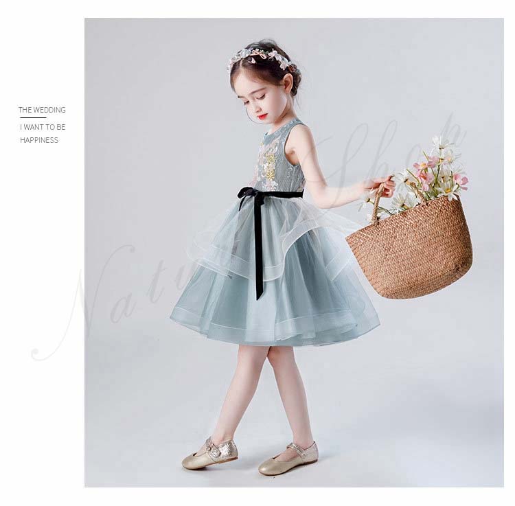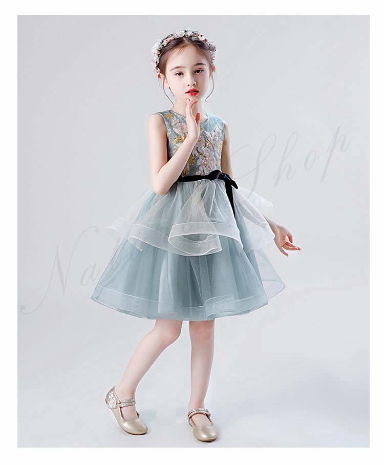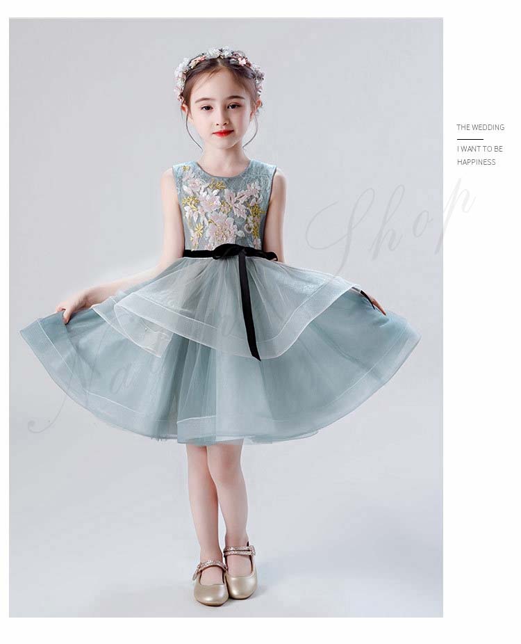 ジュニアドレス 子供ドレス 私服 普段着 発表会 ワンピース 袖なし ノースリーブ ひざ丈 花柄 刺繍 かわいい ファッション オシャレ チュールスカート チュール ワンピース