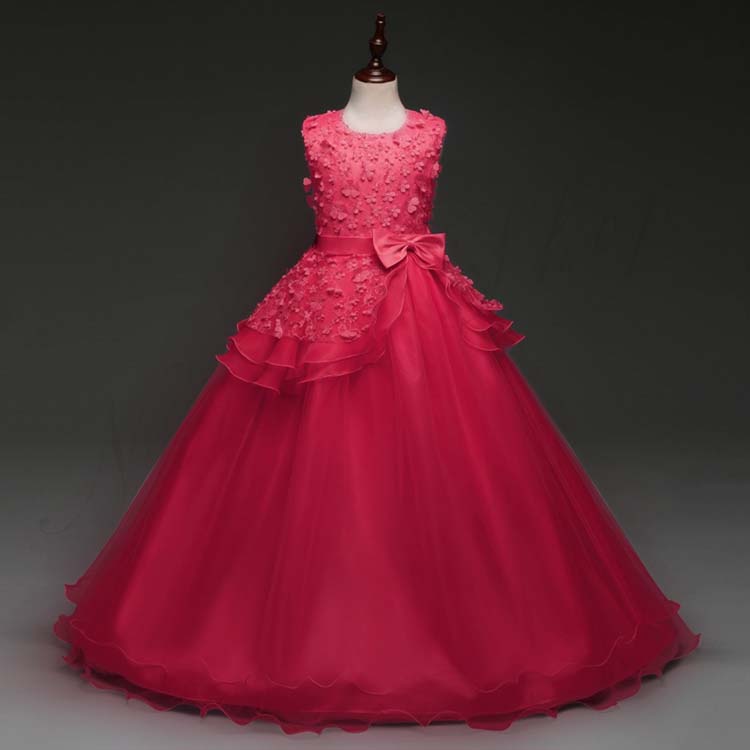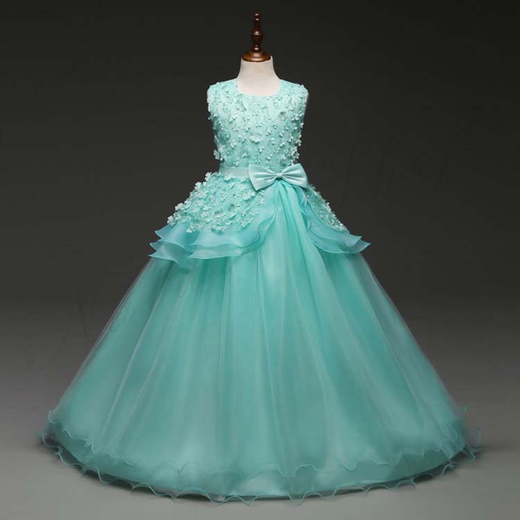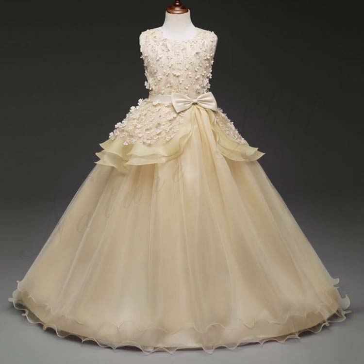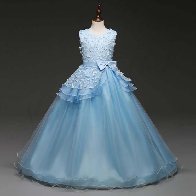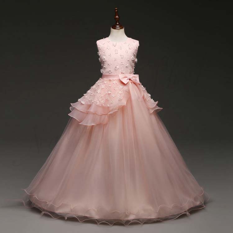 ウェディングドレス ジュニア コンクール ドレス 子供ドレス ピアノ 発表会 ワンピース 袖なし ロング 着地式 姫 チュールスカート チュール ワンピース 花飾り 花嫁 演奏会