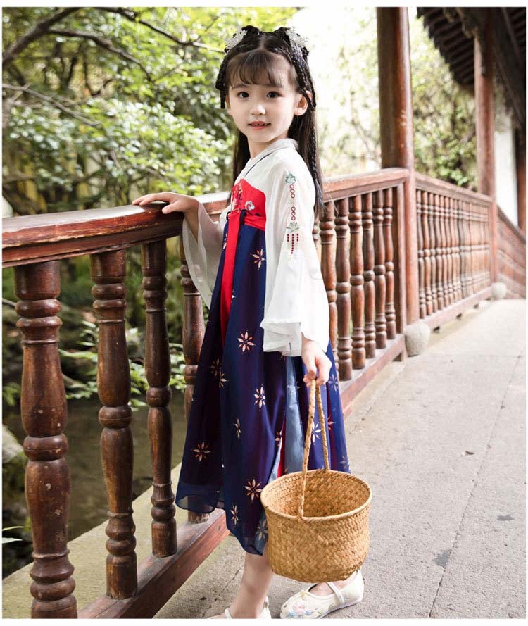 漢服 ジュニアドレス 子供 ドレス 子供ドレス 発表会 ワンピース 長袖 ロング きれいめ 女の子 チャイナ風 ビンテージ 古風 女の子 かわいい 春秋 バックファスナー 総柄