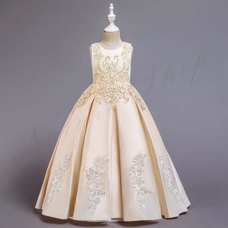 子供ドレス ロングドレス 発表会 Aライン ワンピース ノースリーブ 花柄 刺繍 優雅 派手 子供 ドレス 袖なし フォーマル ジュニアドレス 宮廷風 姫系 お姫様気分 司会