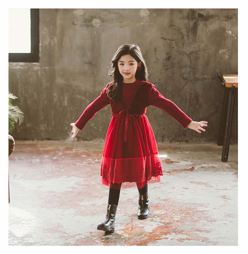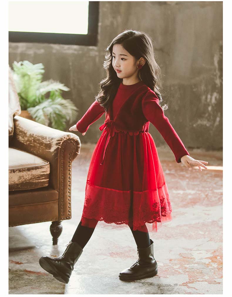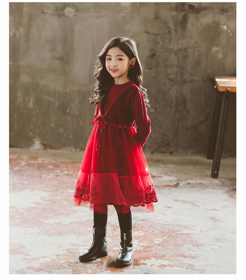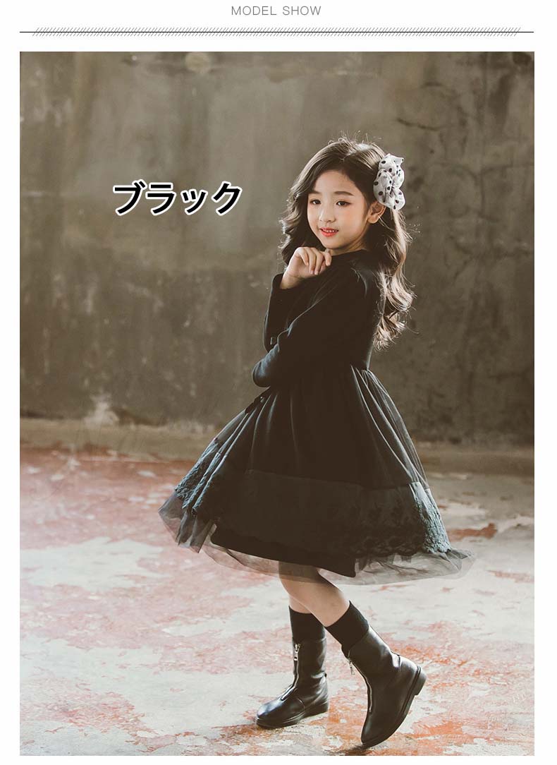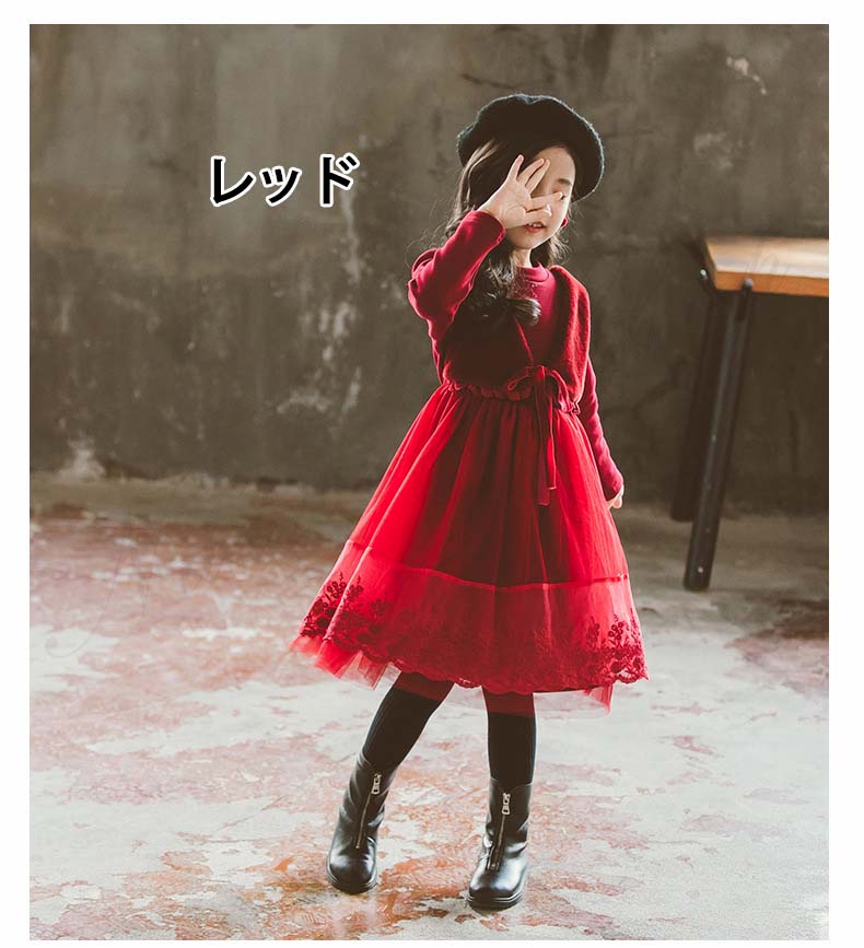 ジュニア コンクール ドレス 子供ドレス 発表会 長袖 ひざ丈 裏ボア ワンピース 膝 春夏秋冬 赤 黒 チュールスカート チュール ワンピース 裏起毛 可愛い オシャレ 結婚式