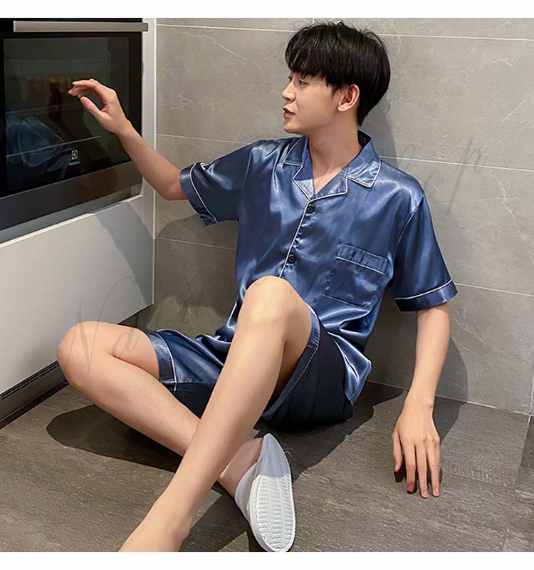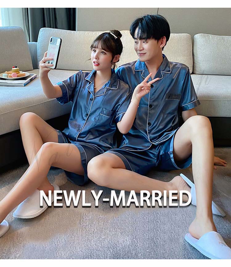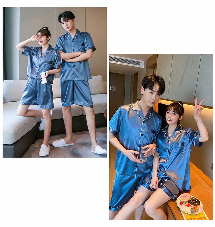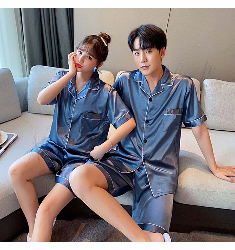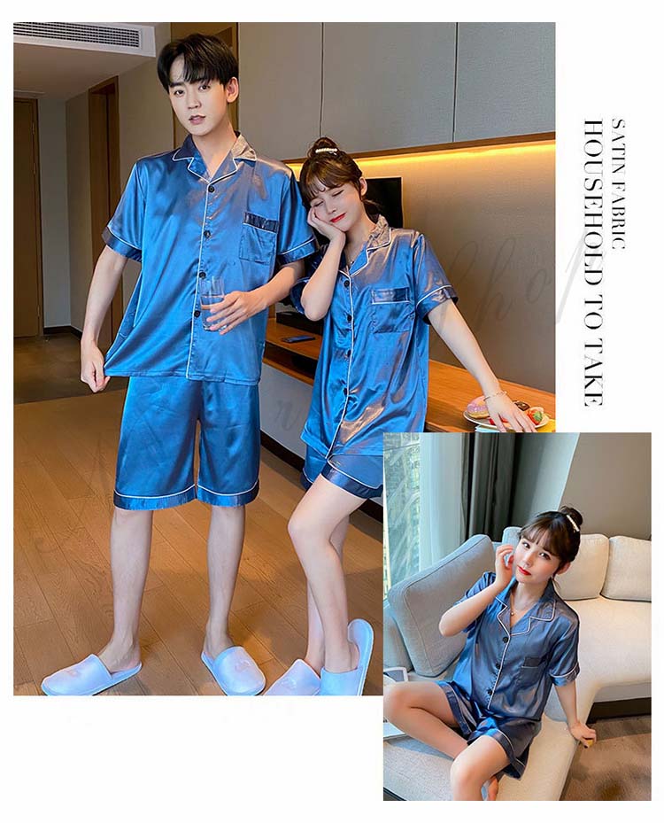パジャマ ペア レディース ペアパジャマ 夏 上下セット カップルパジャマ 半袖 メンズ パジャマ 合成シルク パジャマ 無地 ペア