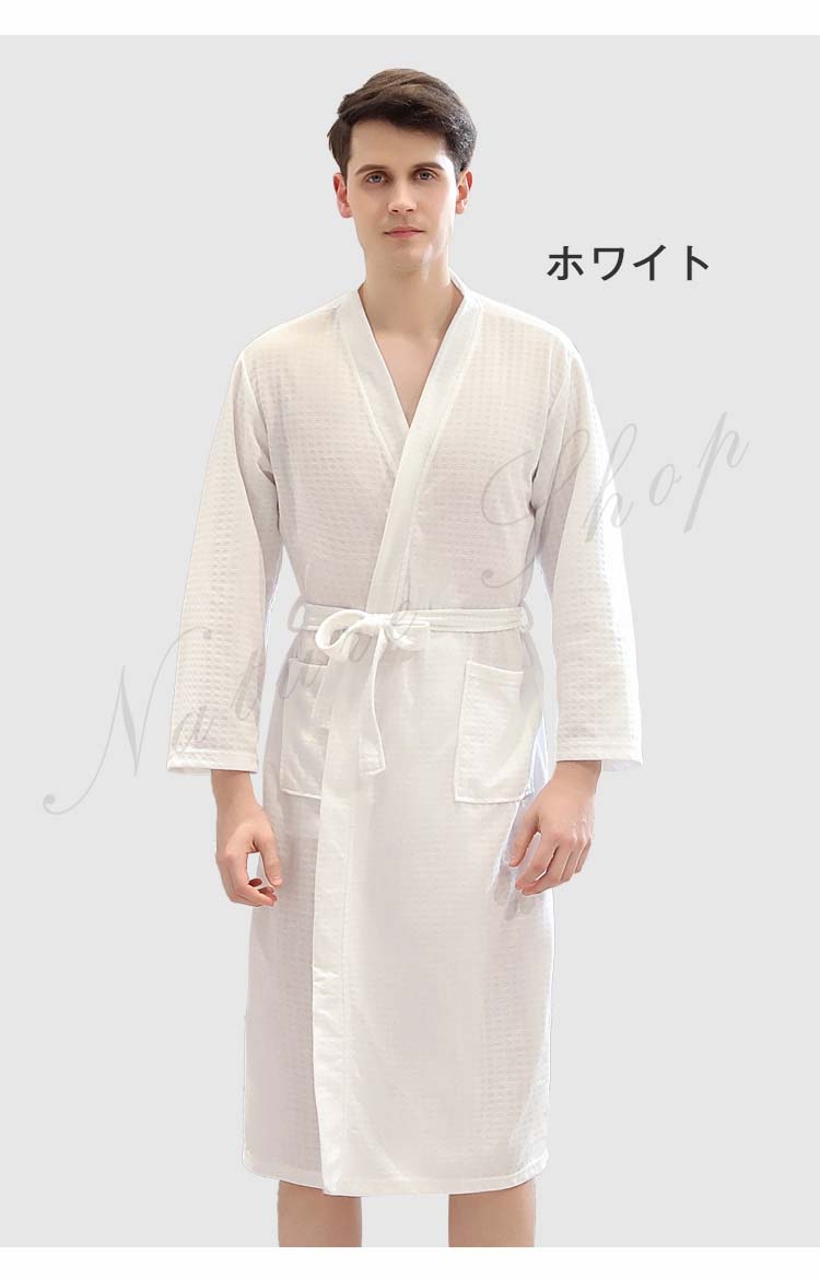 レディース バスローブ 七分袖 夏用 薄手 ホテル メンズ バスローブ 男女兼用 ナイトガウン メンズバスローブ 体型カバー タオル地 ガウン 膝丈 吸水 ペアバスローブ