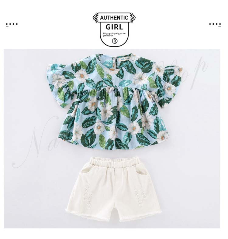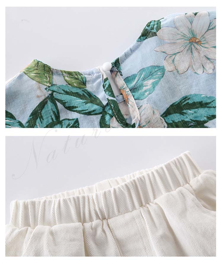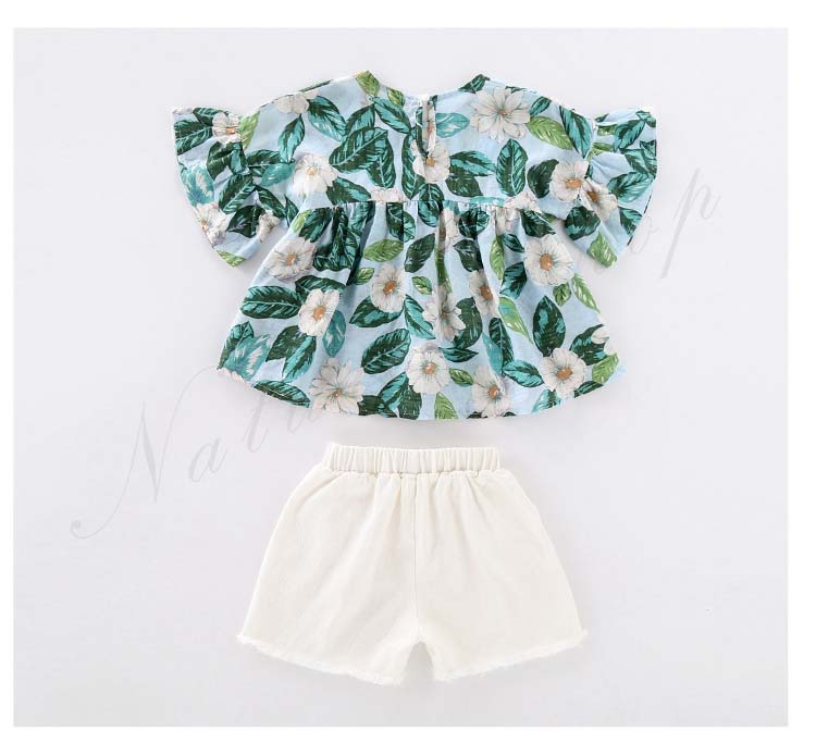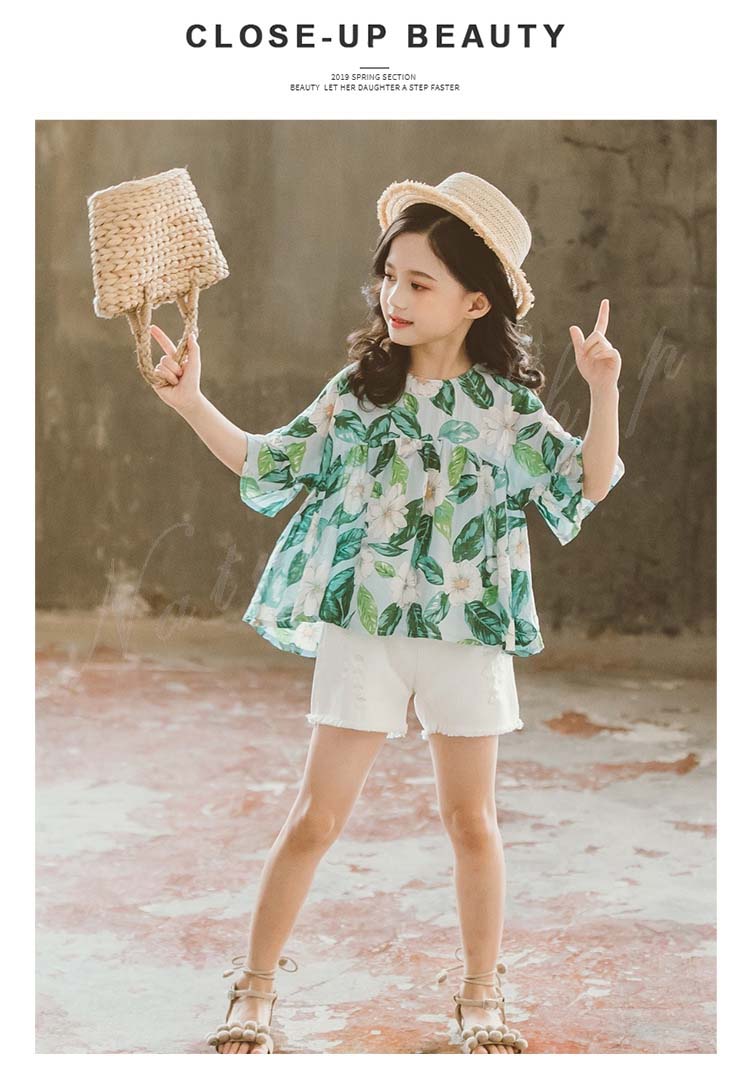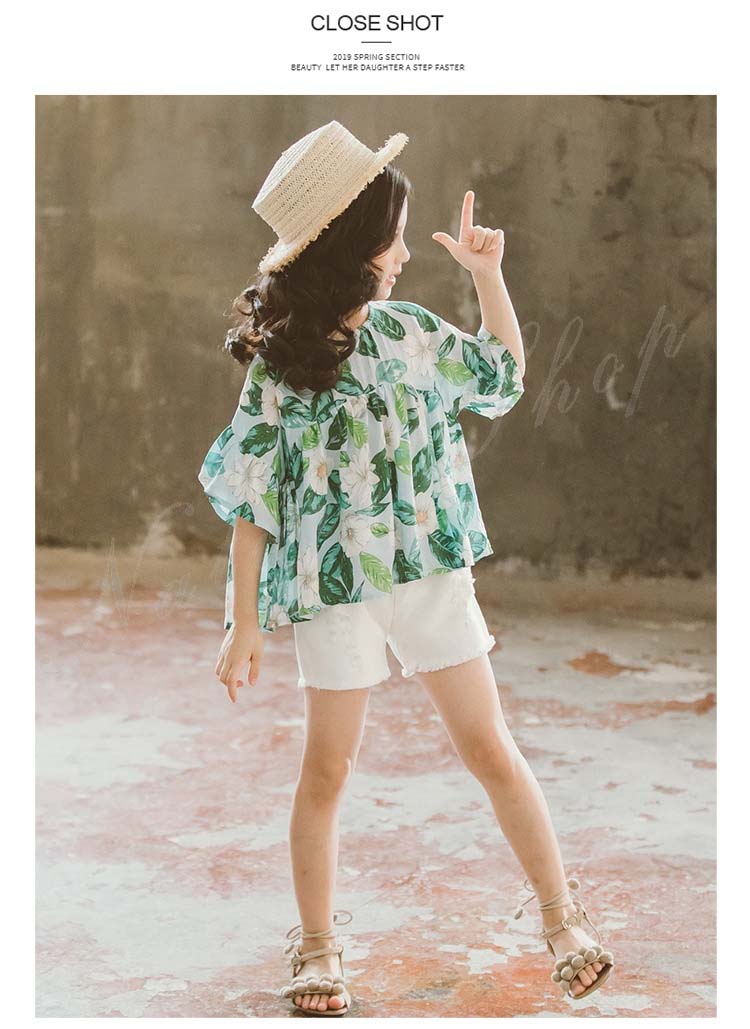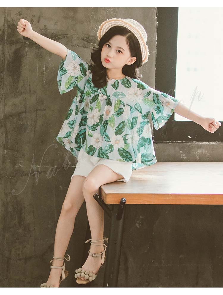セットアップ レディース キッズ カジュアル 夏 おしゃれ 韓国 半袖 ブラウス 半ズボン 子供服 子ども服 女の子 カジュアル ナチュラル 夏服 夏 花柄 総柄 白 半ズボン