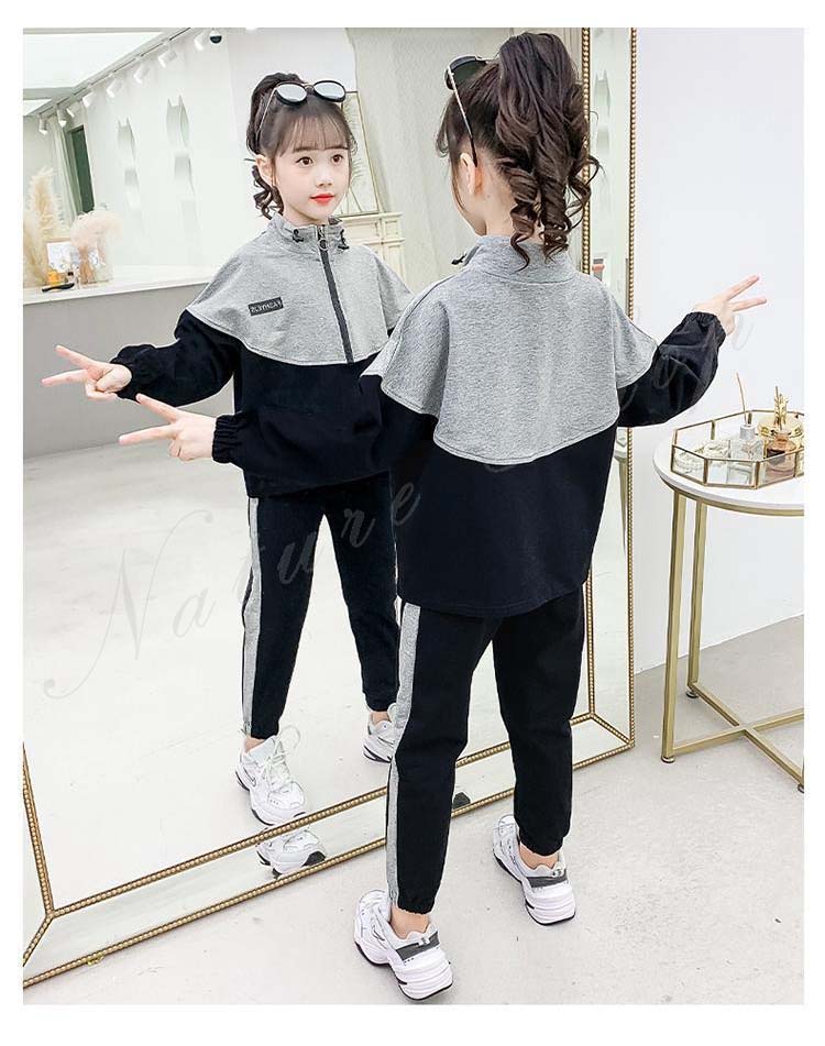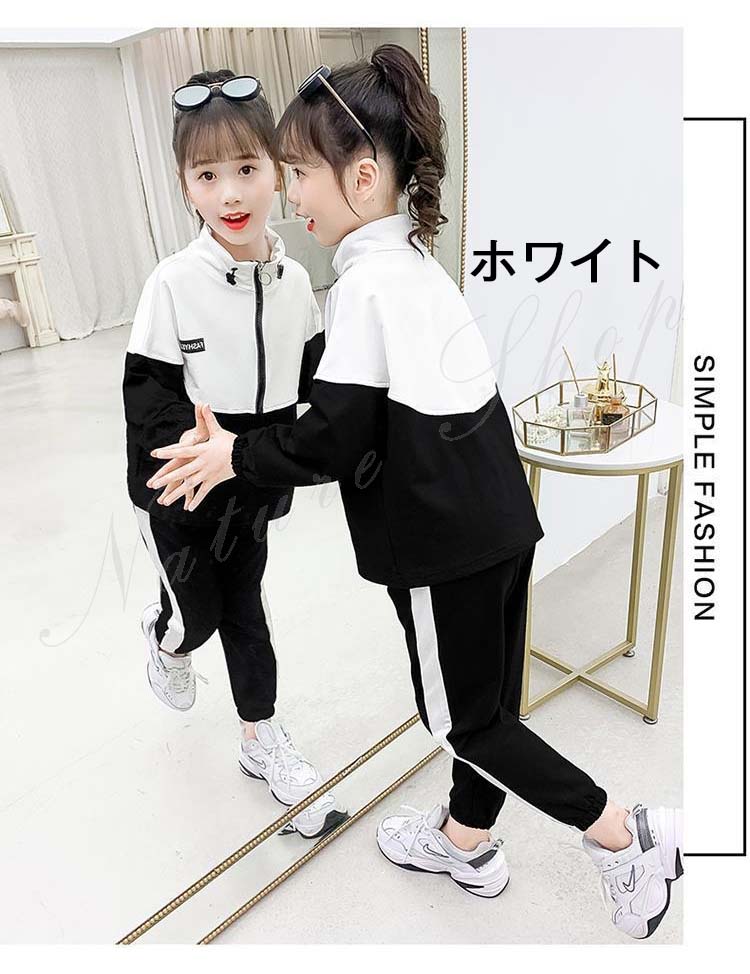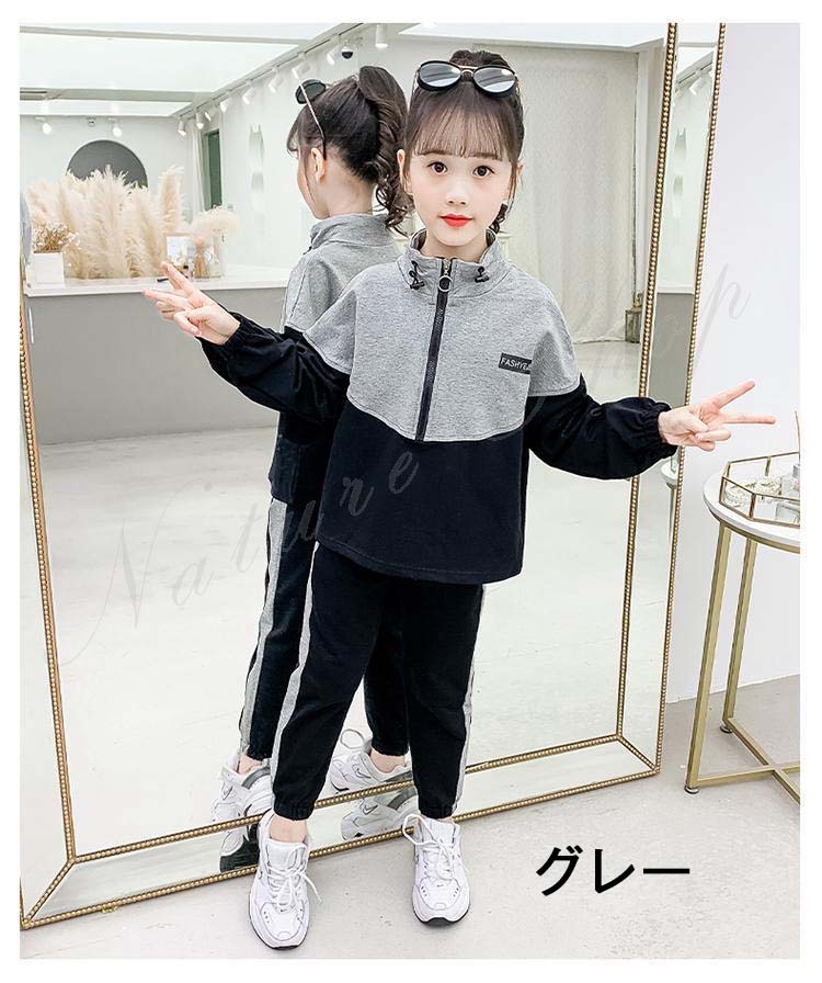 スポーツウェア レディース 上下 キッズ トップス パンツ セット ジャージセット スウェット 長ズボン スタンドカラー 2colors グレー ホワイト 運動服 運動着