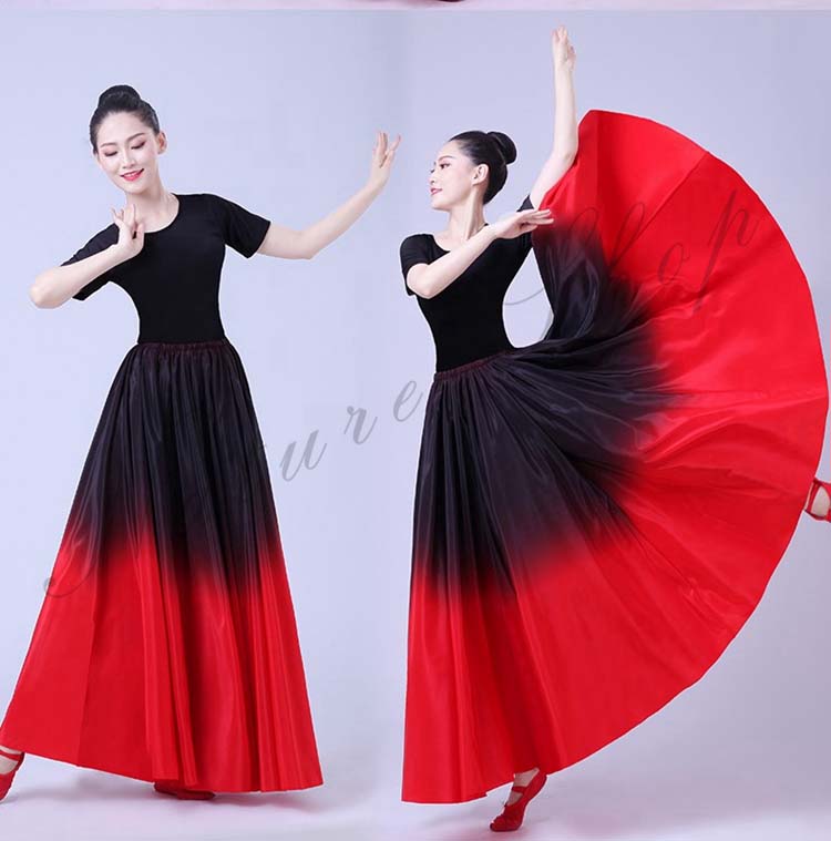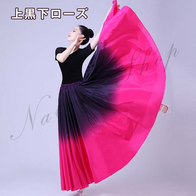 配色 大きい裾 スカート グラデーション 古典舞踊ダンス衣装 ラテンダンス レディース モダンダンス 練習着 大人用 ワルツ フラダンス 85cm ロングスカート フラメンコ 広がる
