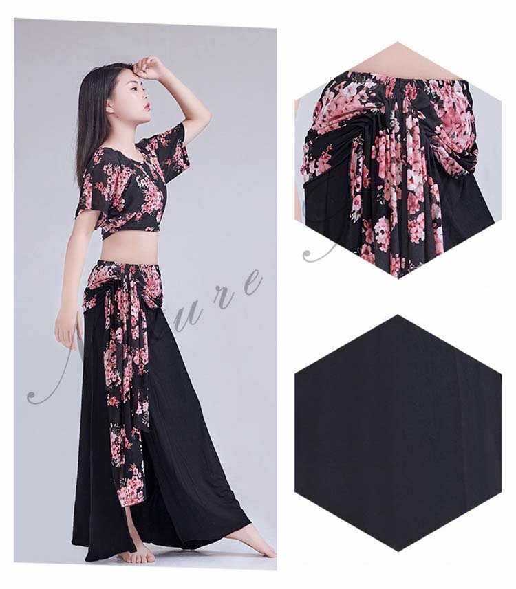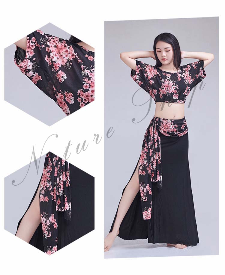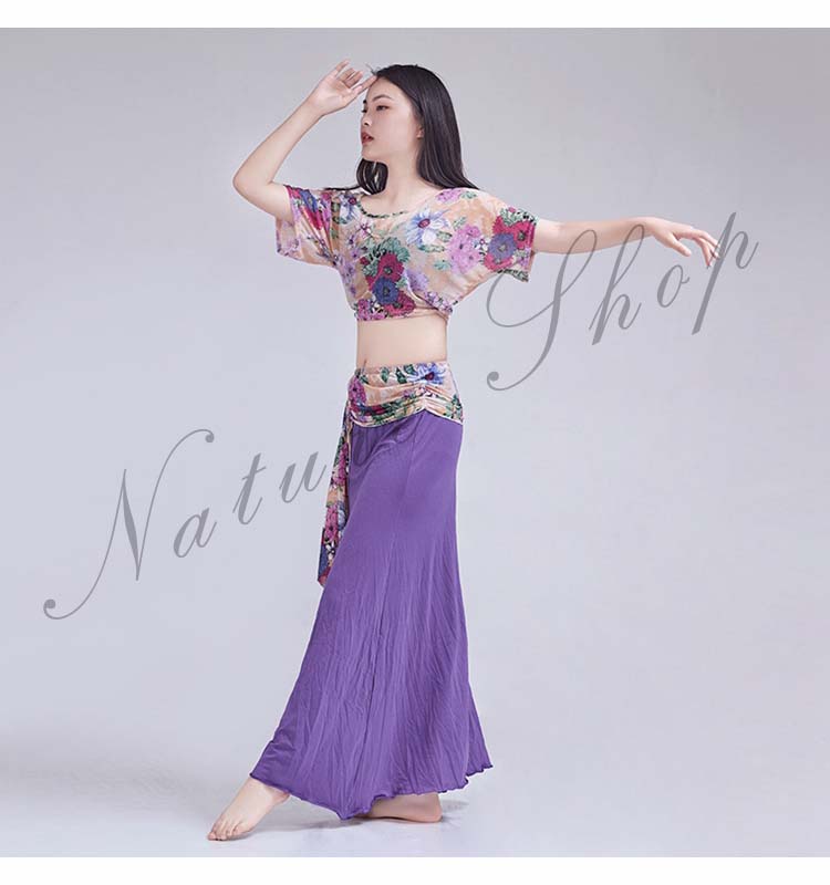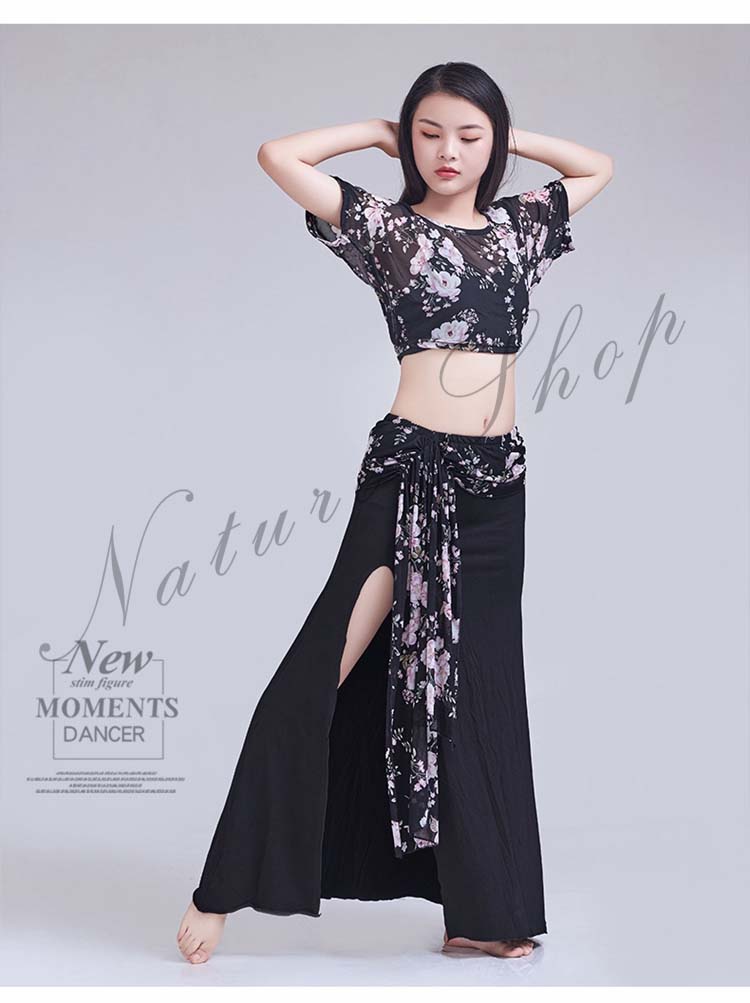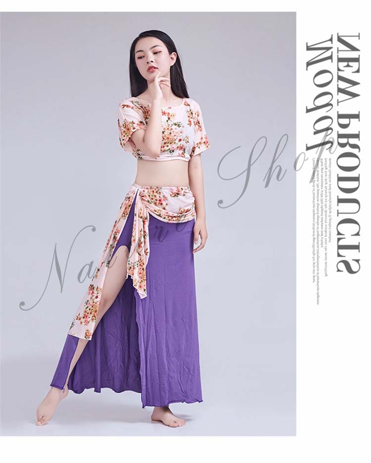 ベリーダンス衣装 レッスン着 セットアップ 2点上下セット 練習着 スリットスカート シースルー セクシー 社交ダンス 5types ダンスウェア 大人 半袖 トップス ロングスカート 女性
