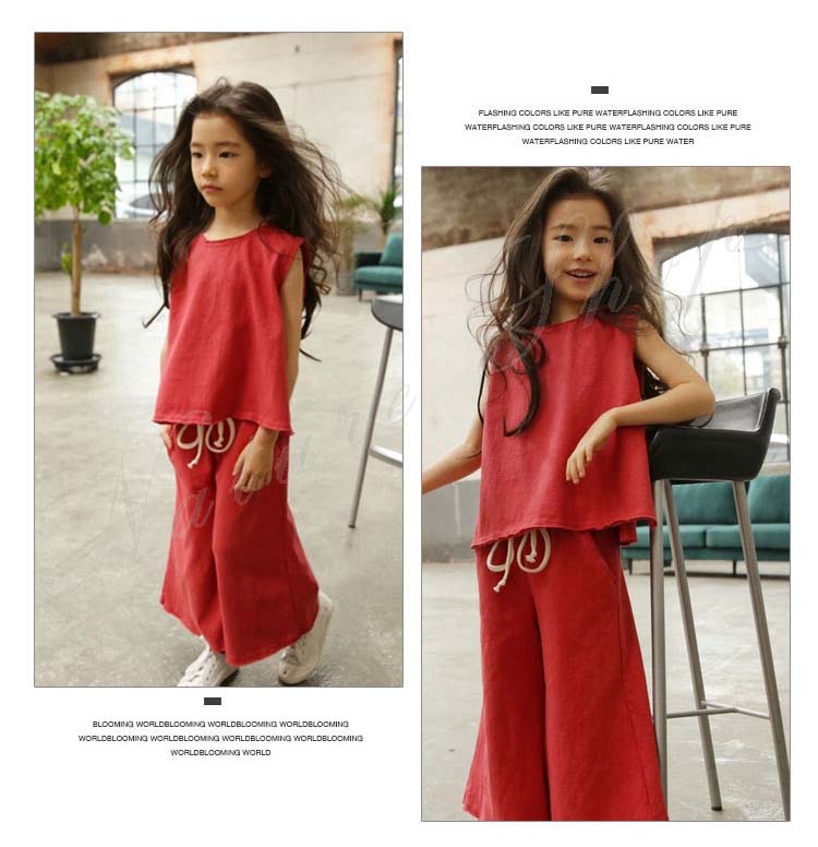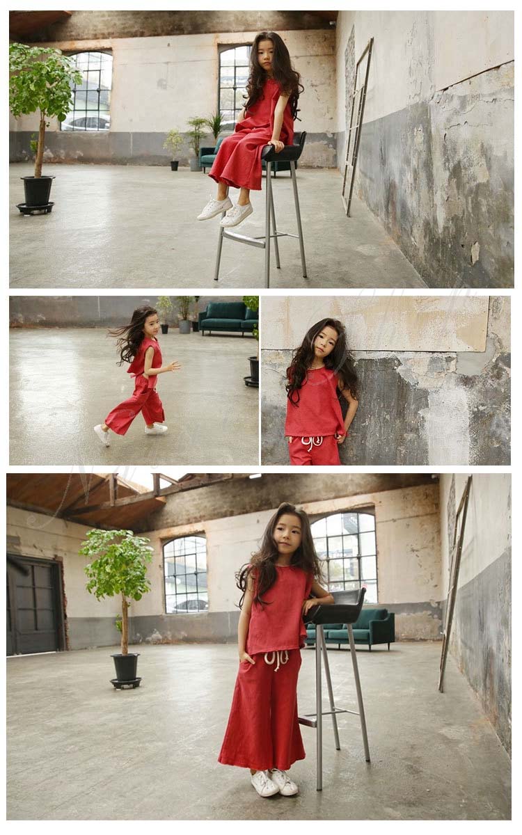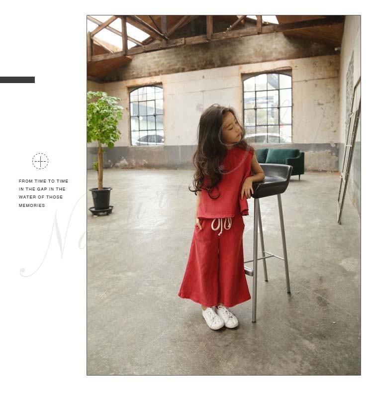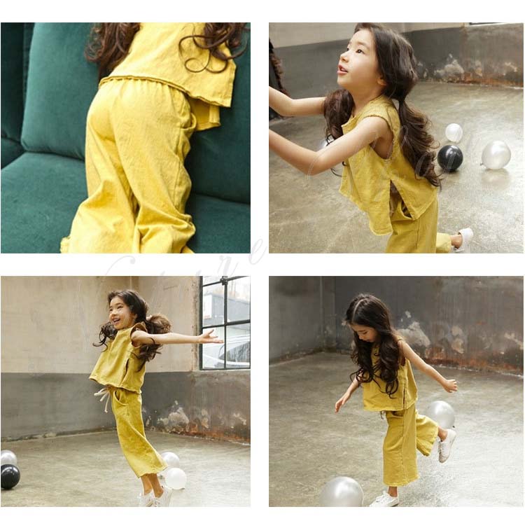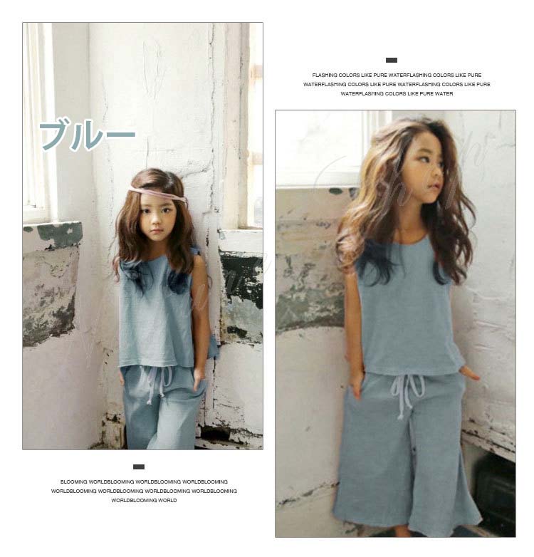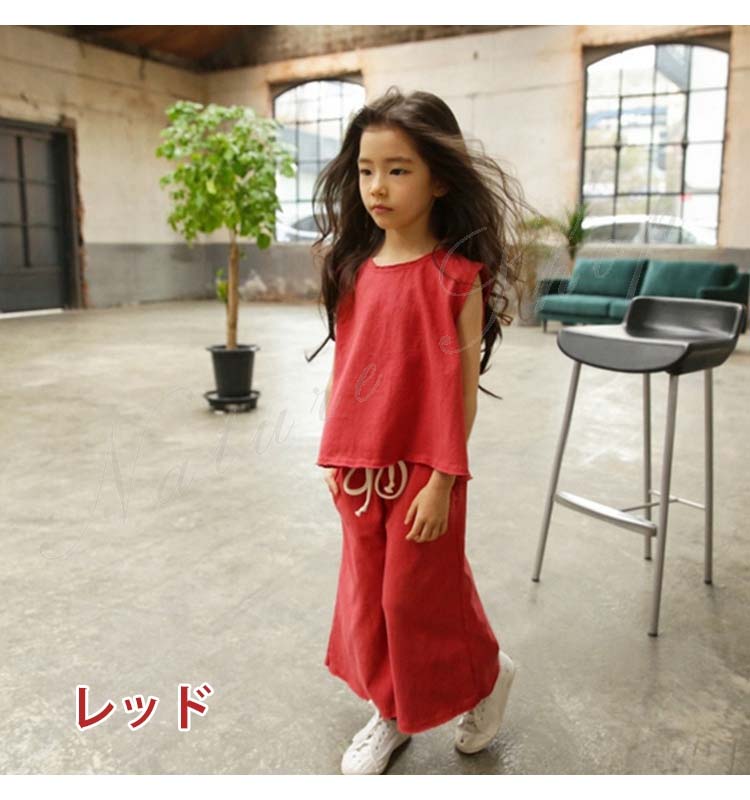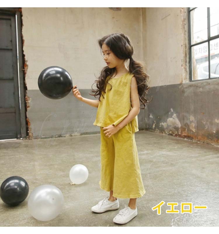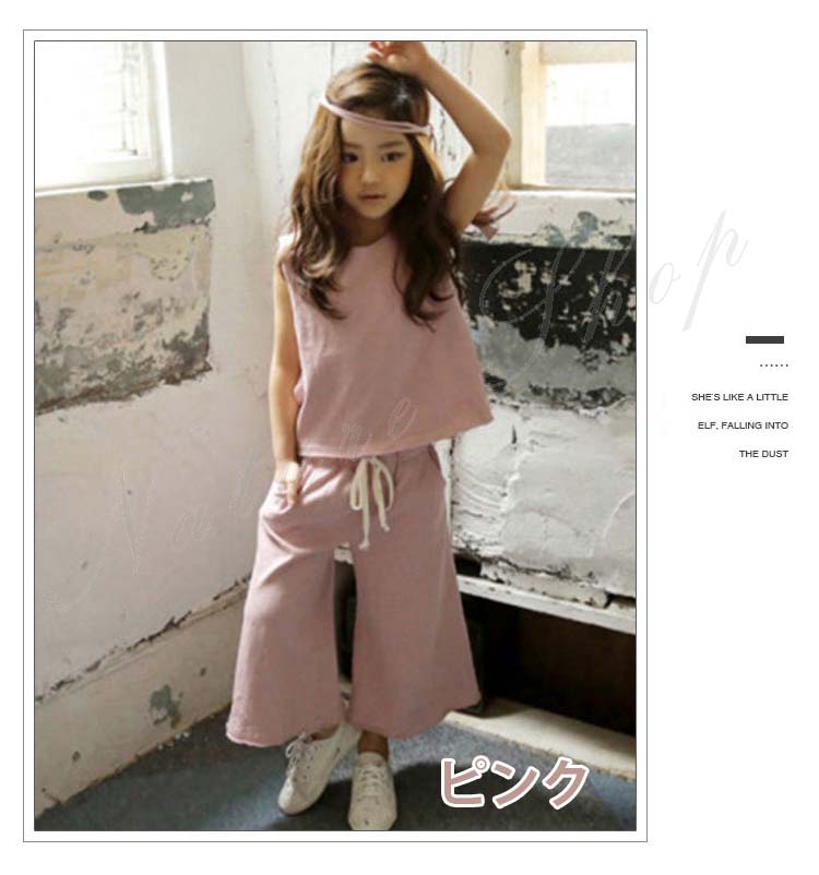 子ども服 子供服 女の子 セットアップ 夏 夏服 カジュアル ナチュラル Tシャツ 袖なし ノースリーブ ワイドパンツ ロング丈 ガウチョパンツ 無地 シンプル 夏