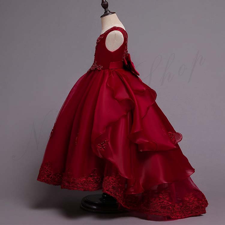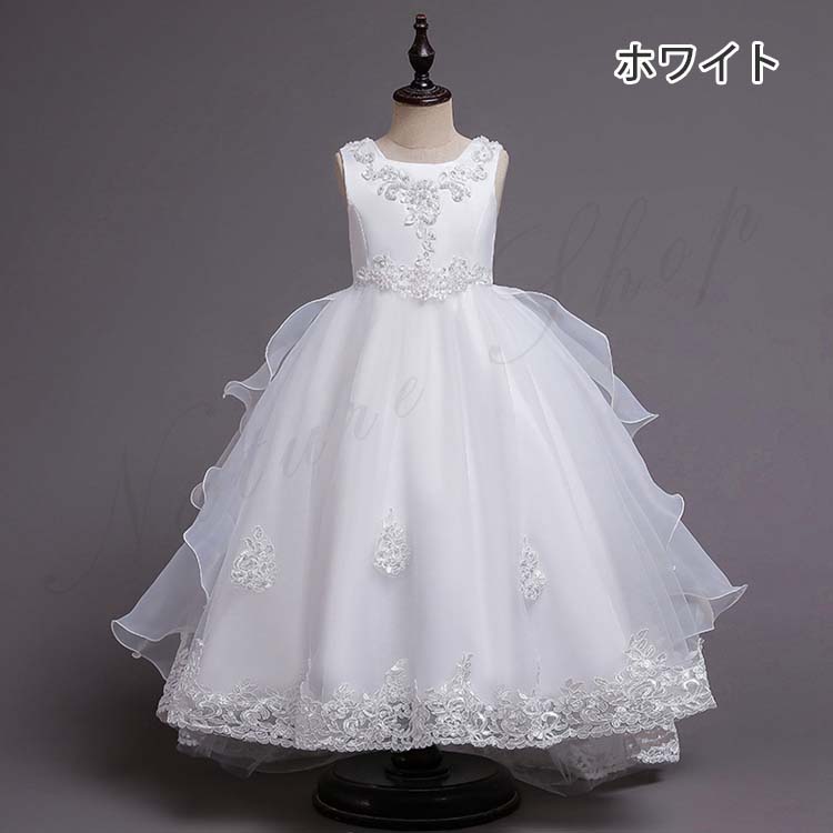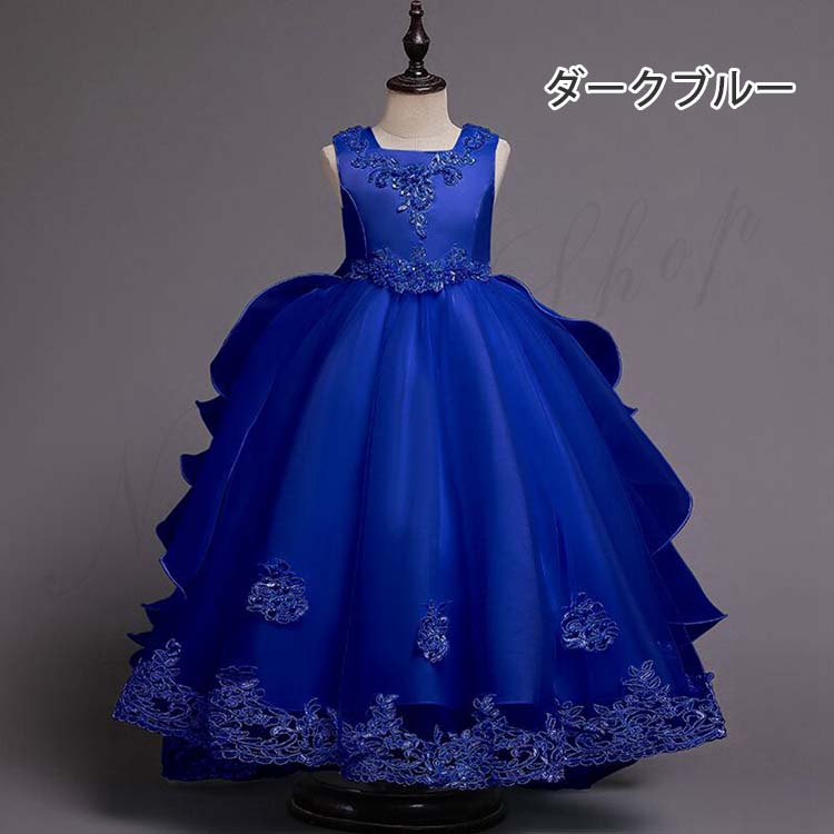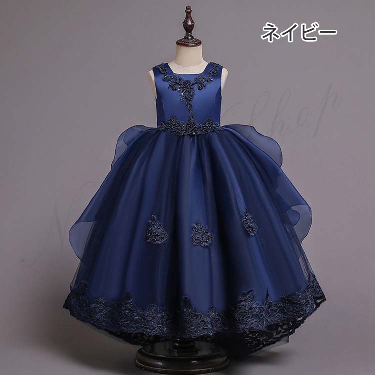 イブニングドレス 子供ドレス ピアノ 発表会 アシンメトリー 結婚式 ワンピース ノースリーブ 女の子 花柄 刺繍 チュールスカート ジュニア ロング フラワーガール