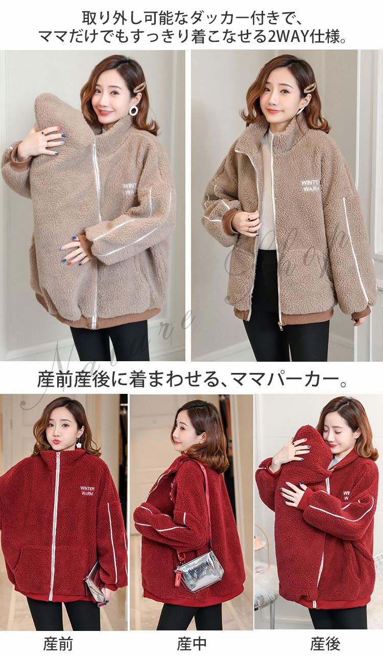 ママコート 授乳服 マタニティ パーカー 長袖 ママコート ダッカー付きマタニティウェア 抱っこ 春 秋 冬 多機能 妊婦 妊娠服 抱っこ紐 大きいサイズ ママパーカー 2ways