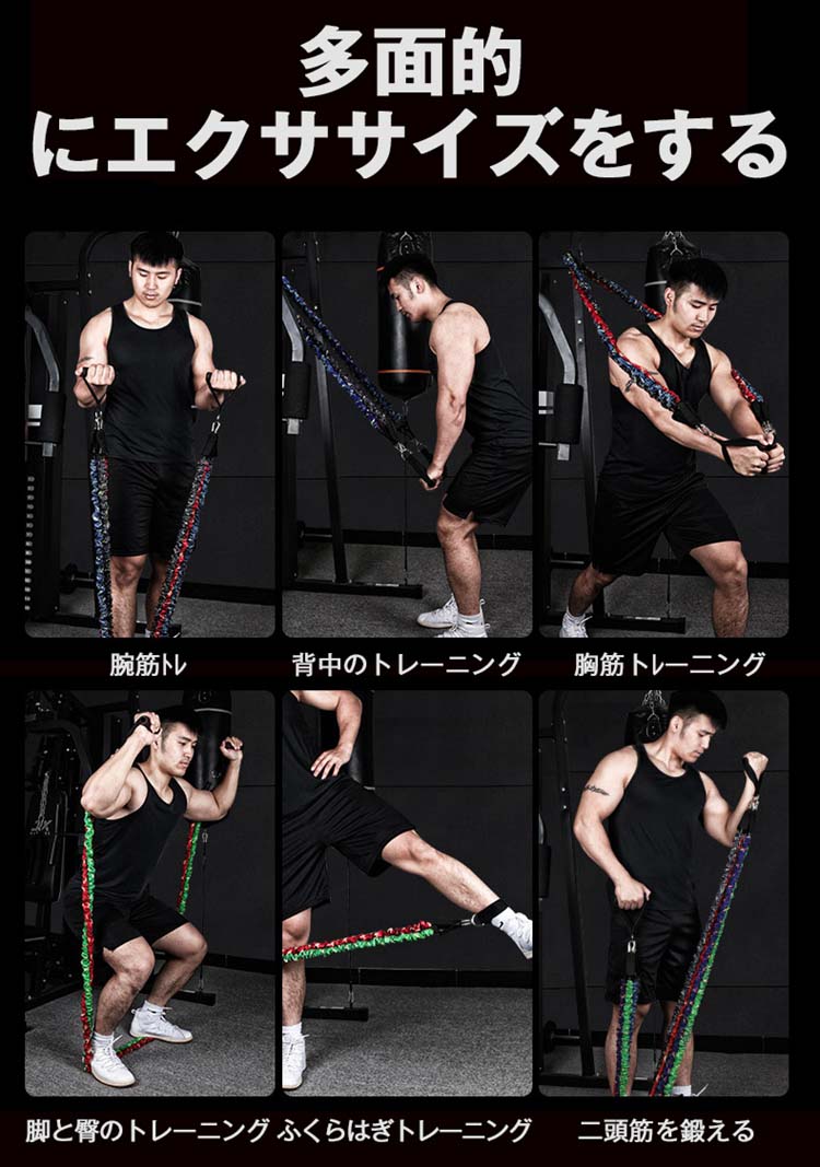 筋肉 家庭用フィットネス 張力ロープ装着 取り外し可能なアーム エクササイズバンド 筋力トレ ジム フィットネス パワーチューブ トレーニングチューブ ラリー調整可能 11点セット