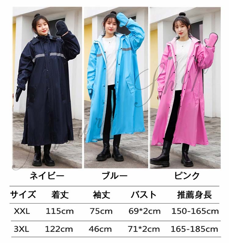 レインコート レディース 自転車 メンズ レインウェア 男女兼用 おしゃれ ロング丈 レインポンチョ 雨具 レインコート 雨合羽 リュック対応 反射テープ 大きめ 雨対策 オートバイ