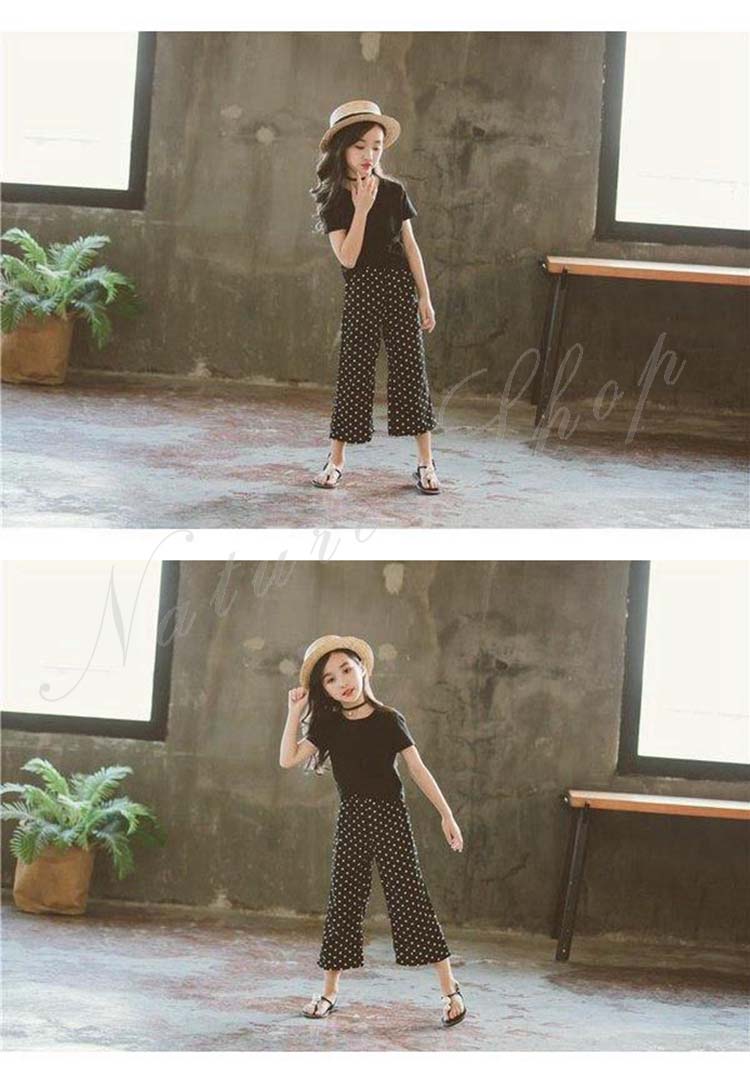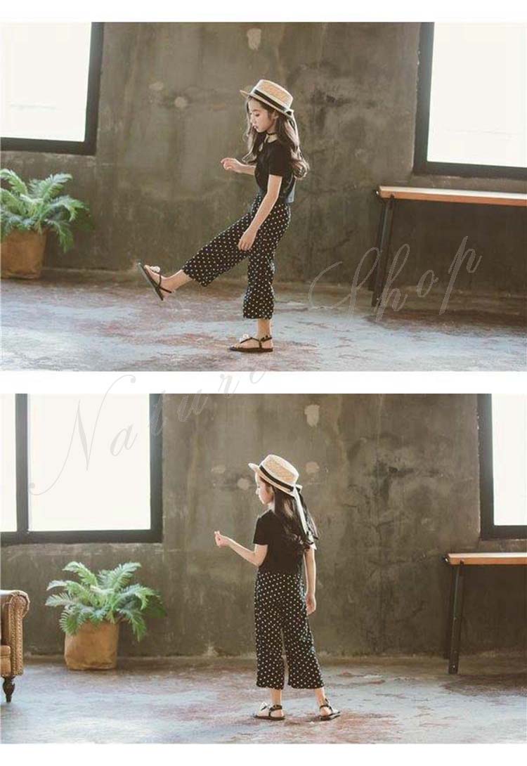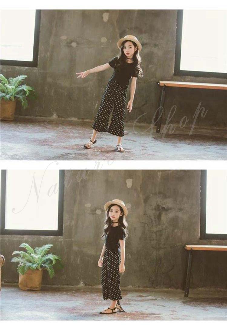子供服 上下セット 無地 Tシャツ 半袖 ガウチョパンツ キッズ ドット柄 可愛い セットアップ 夏 韓国子供服 女の子 ジュニア 通学着 通園着 おしゃれ