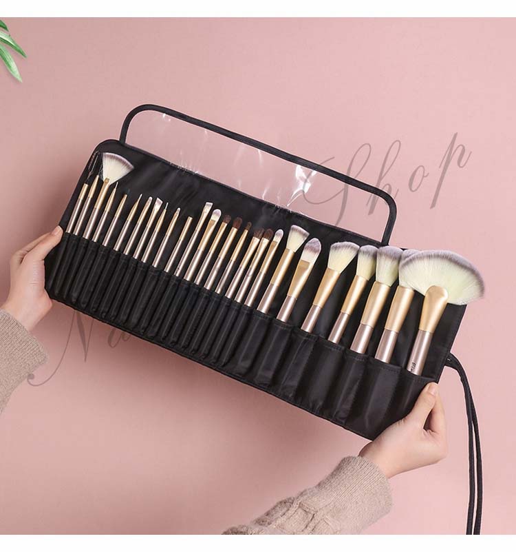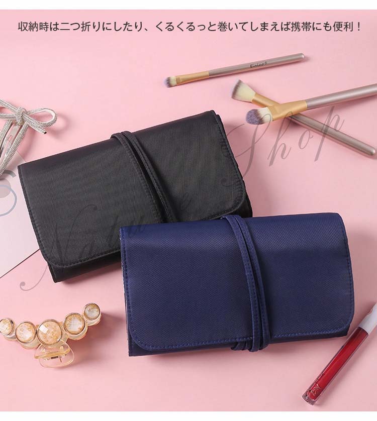 化粧ポーチ ブラシケース コスメポーチ メイク収納 スリムタイプ デニム ドット ブラシ入れ コスメ収納 仕分け メイクブラシ ポケット コンパクト メイクブラシ