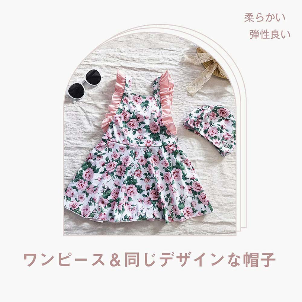 スイムウェア 水着 ワンピース キッズ ラッシュガード 水着 女児 幼稚園 帽子付き 子供 女の子 ガールズ 小学生