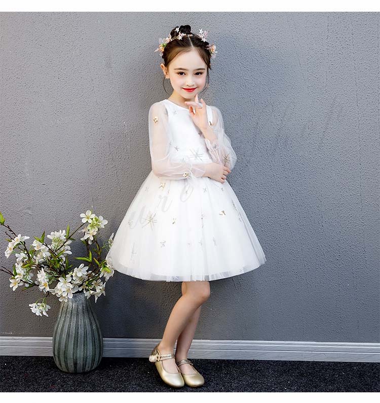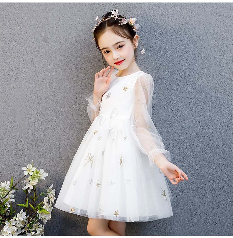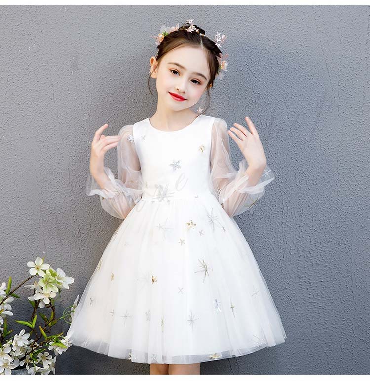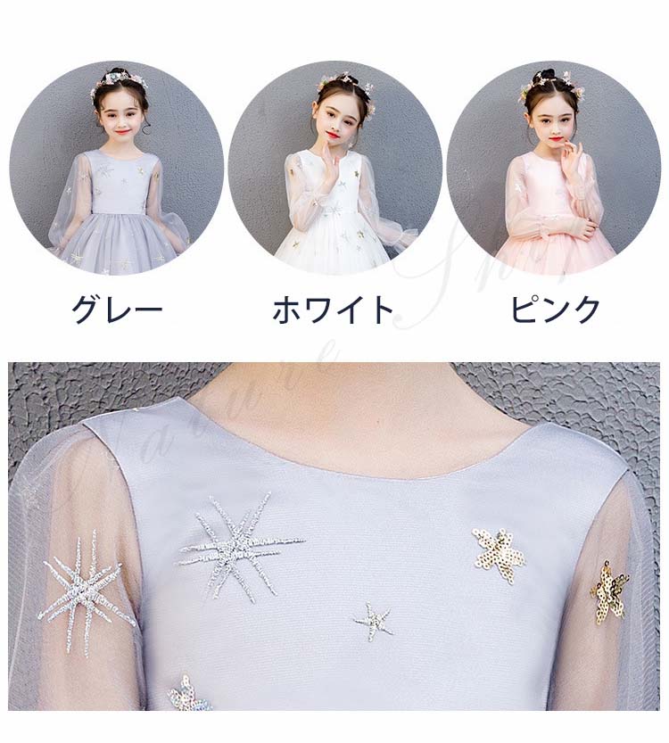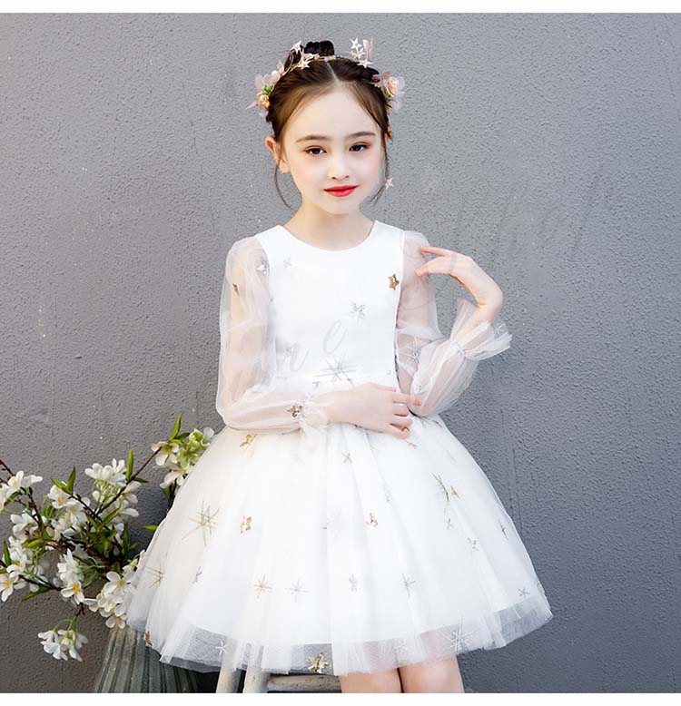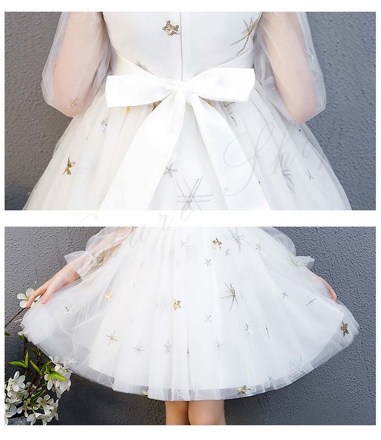 ウェディングドレス ジュニア コンクール ドレス 子供ドレス ピアノ 演奏会 ワンピース 長袖 ひざ丈 女の子 きれいめ 優雅 姫 チュールスカート チュール ワンピース 星柄