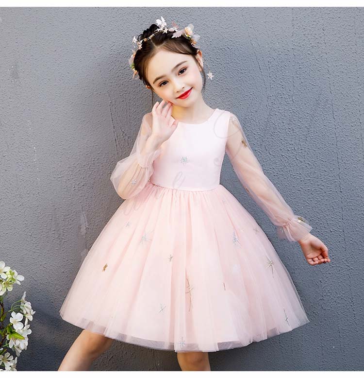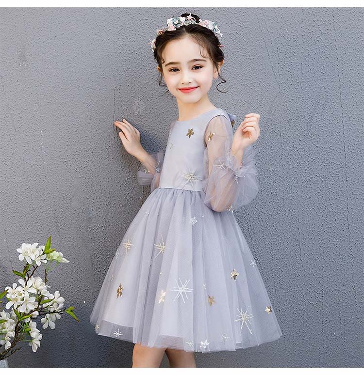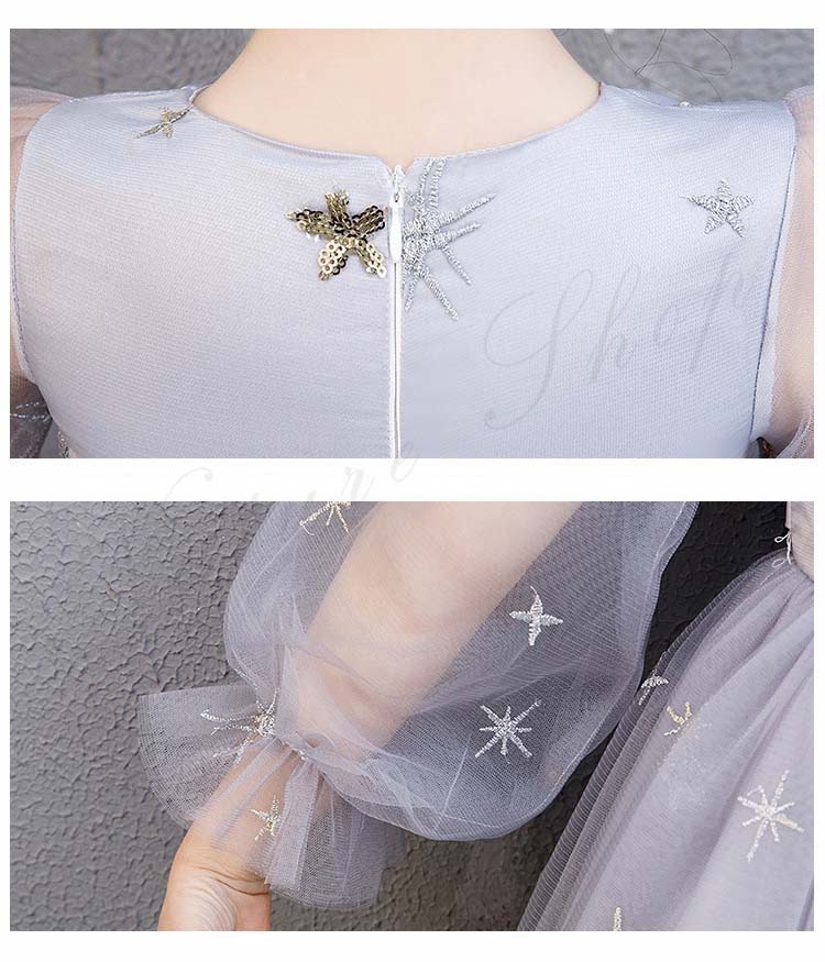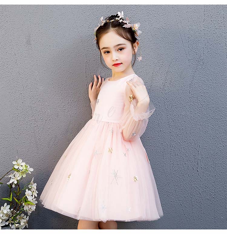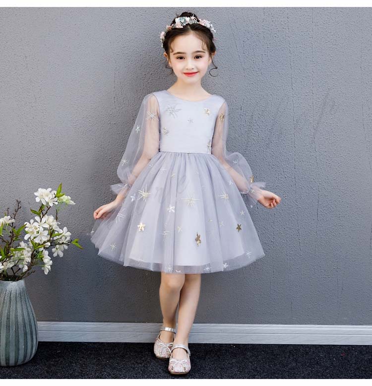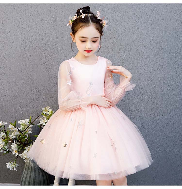 ウェディングドレス ジュニア コンクール ドレス 子供ドレス ピアノ 演奏会 ワンピース 長袖 ひざ丈 女の子 きれいめ 優雅 姫 チュールスカート チュール ワンピース 星柄