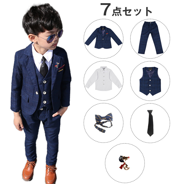 フォーマル スーツ 男の子 上下セット 7点セット 子供服 男の子スーツ 子供 キッズ 入園式 セットアップ 卒業式 七五三 子供スーツ 男の子 お宮参り 初節句