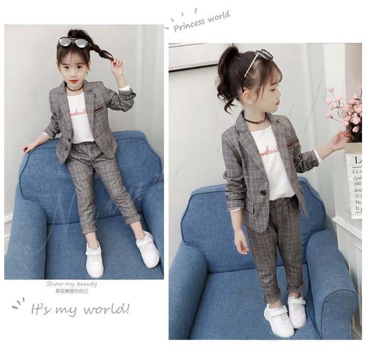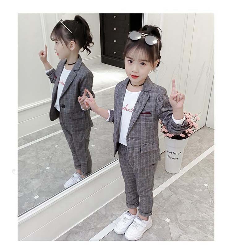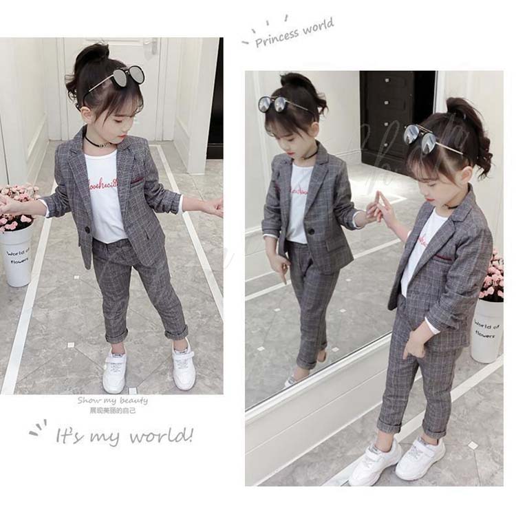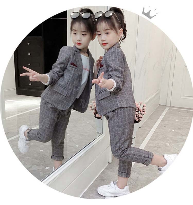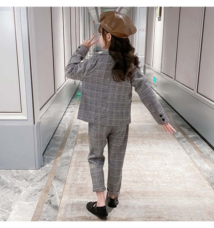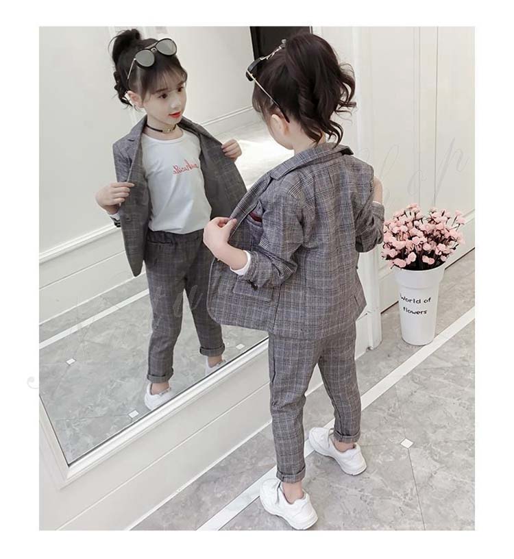 子供スーツ スーツセット スーツジャケット ロング丈パンツ パンツスーツ チェック柄 上下 2点セット 子供服 女の子 フォーマル カジュアル 長袖 コート 長ズボン 通学 通勤